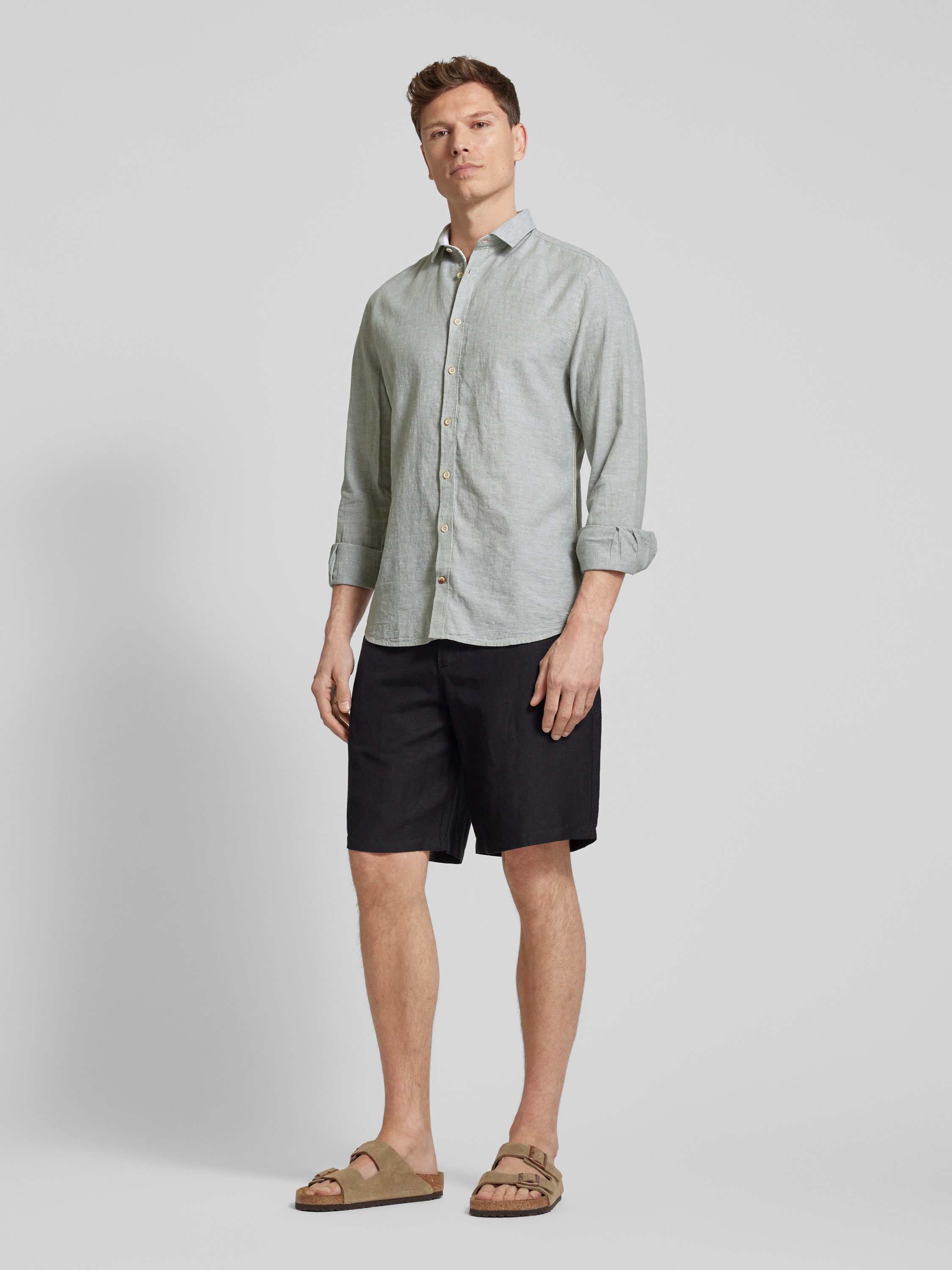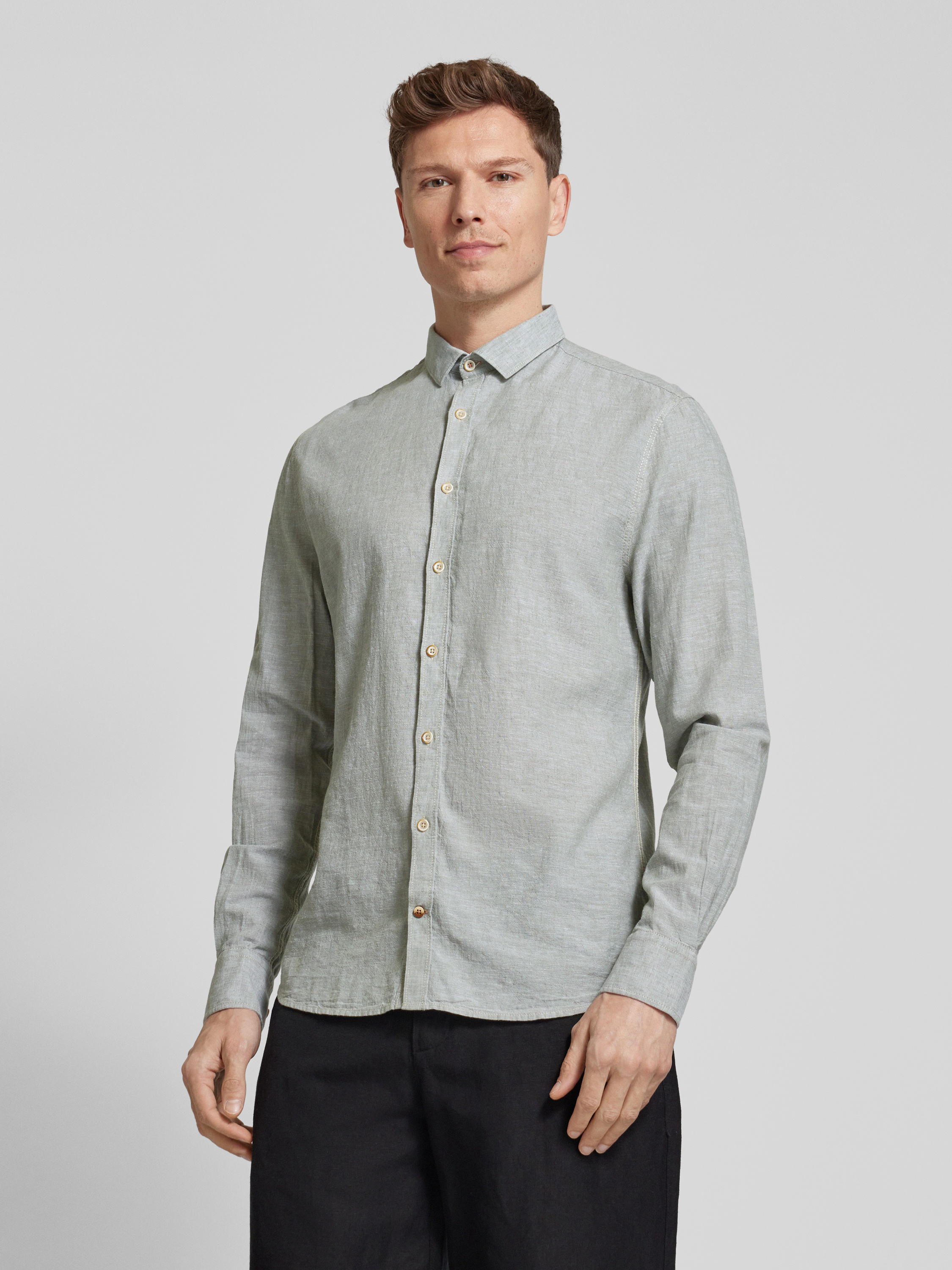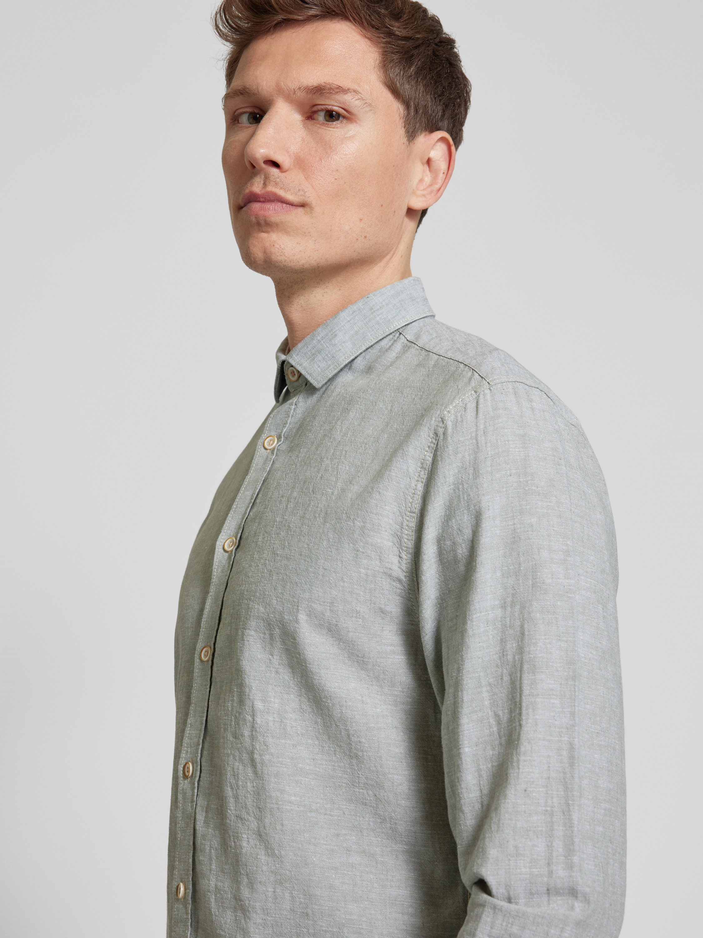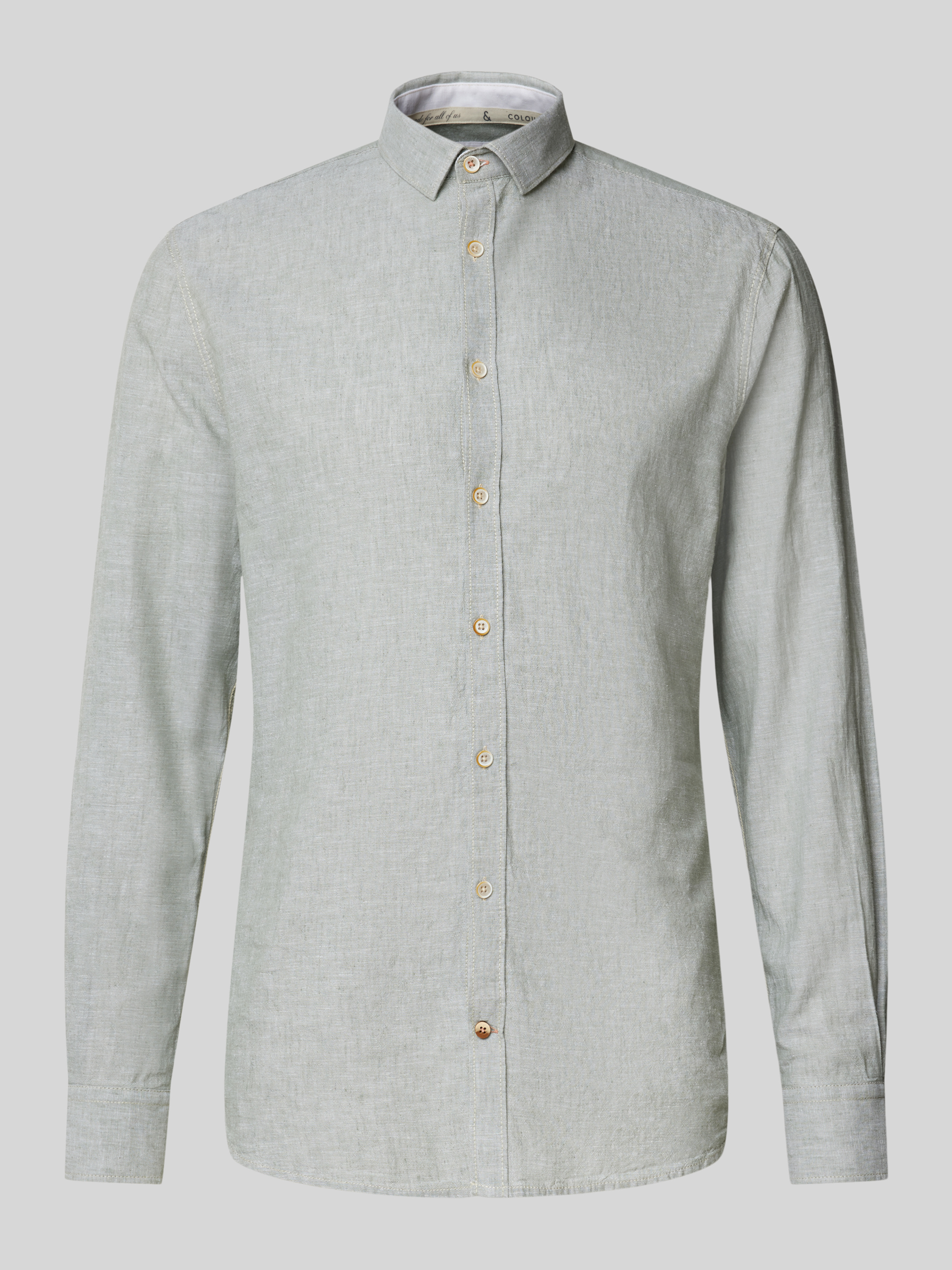 Colours & SonsSlim Fit Freizeithemd aus Baumwoll-Leinen-Mix in oliv