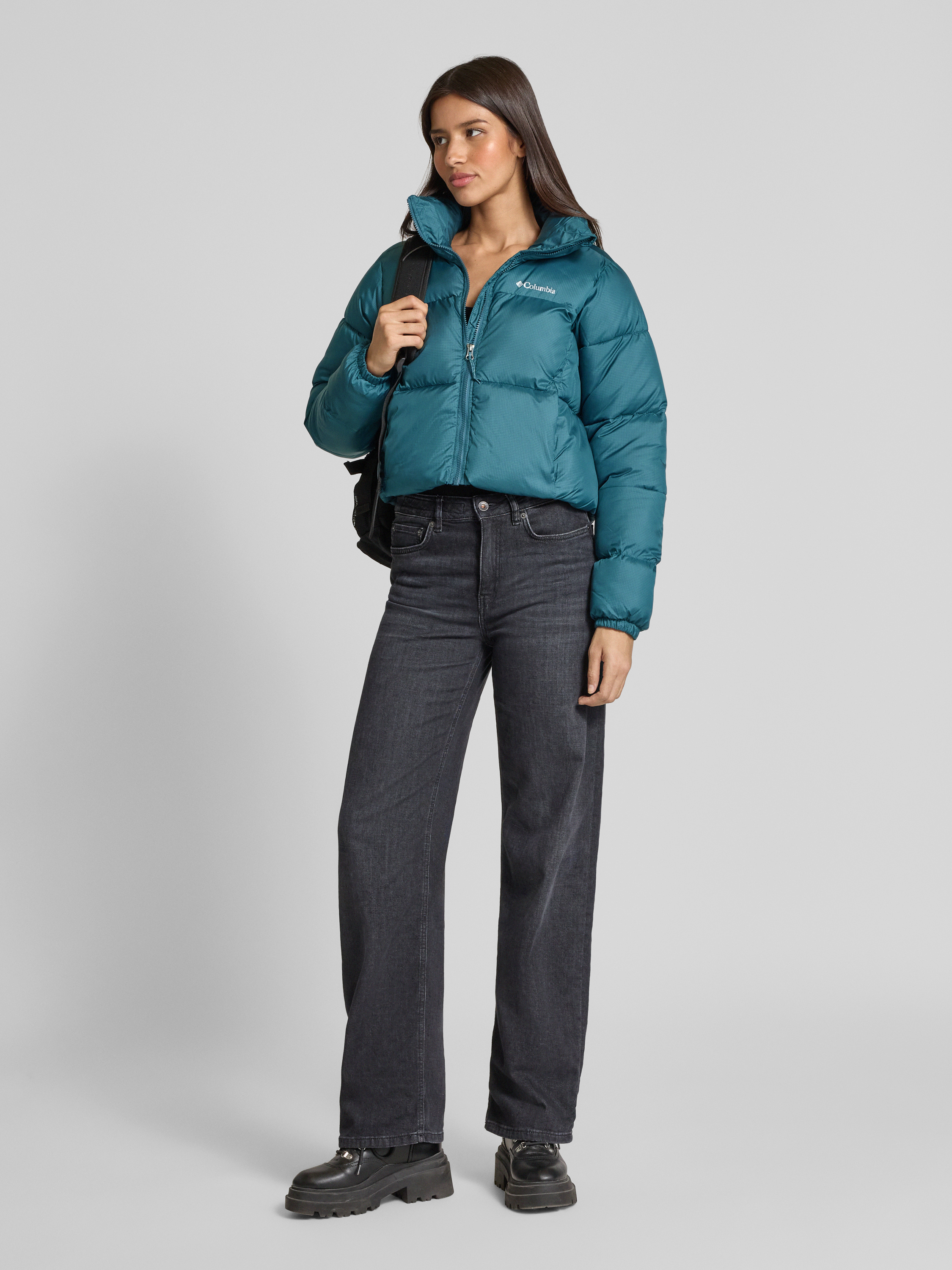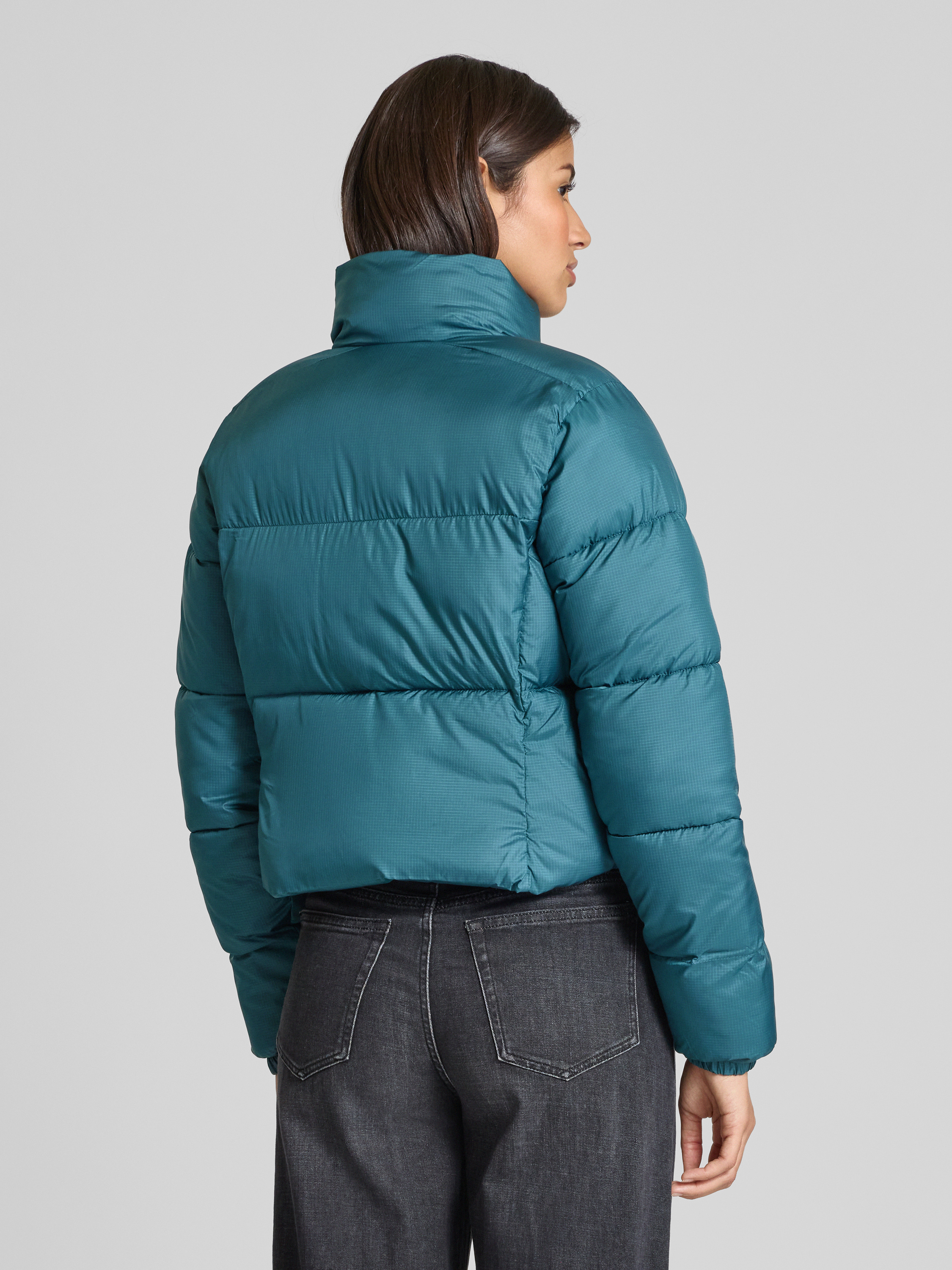 COLUMBIACropped Steppjacke mit Label-Print Modell 'Puffect™' in petrol