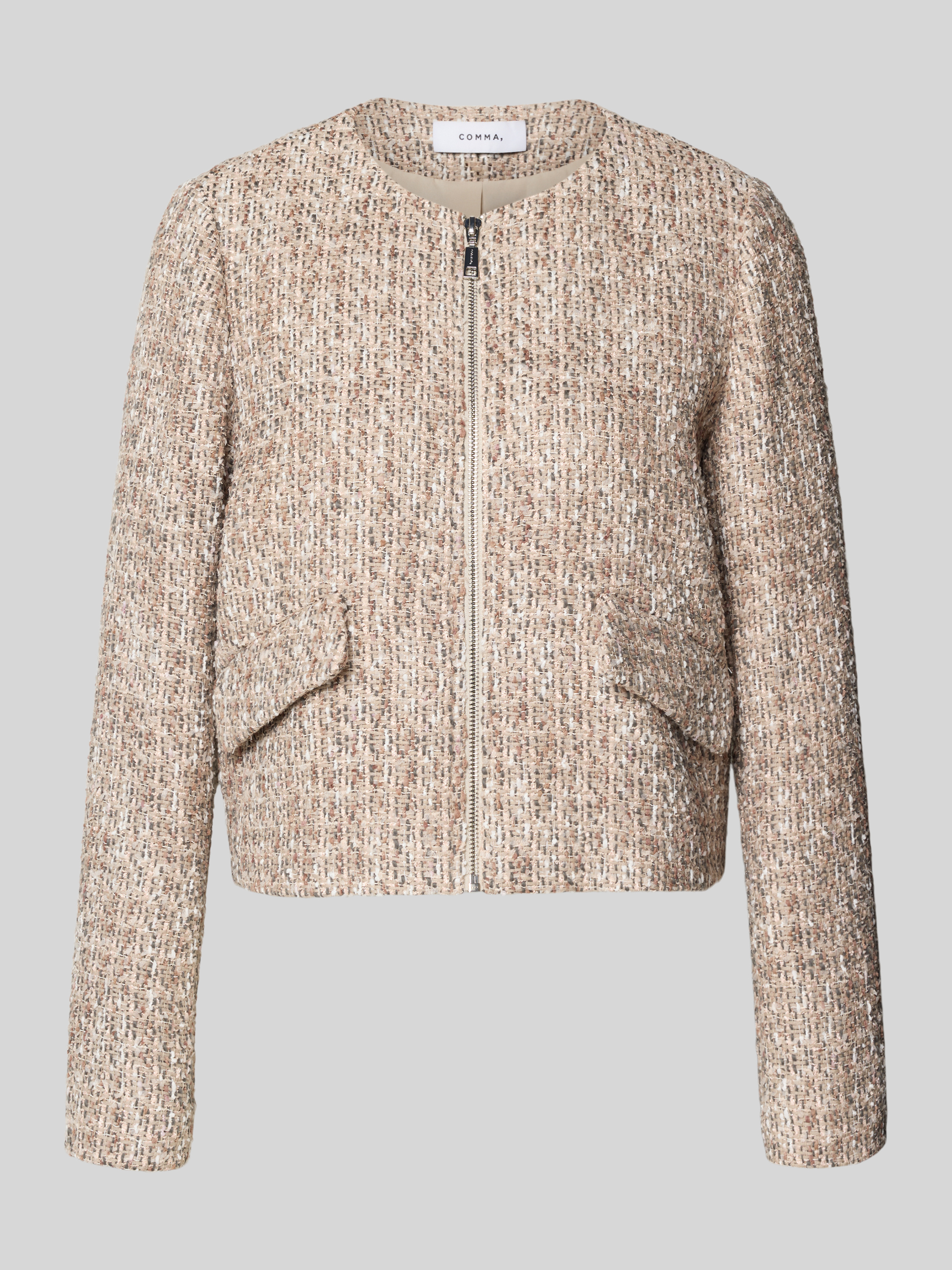 Der Damen Blazer von Comma im Regular Fit zeigt sich mit klassischem Rundhalsausschnitt und praktischen Pattentaschen, wodurch er vielseitig kombinierbar bleibt. Das angenehm fließende Material sorgt für ein bequemes Tragegefühl, während der gerade Schnitt Bewegungsfreiheit ermöglicht. So eignet sich dieses Modell unkompliziert für unterschiedliche Anlässe.