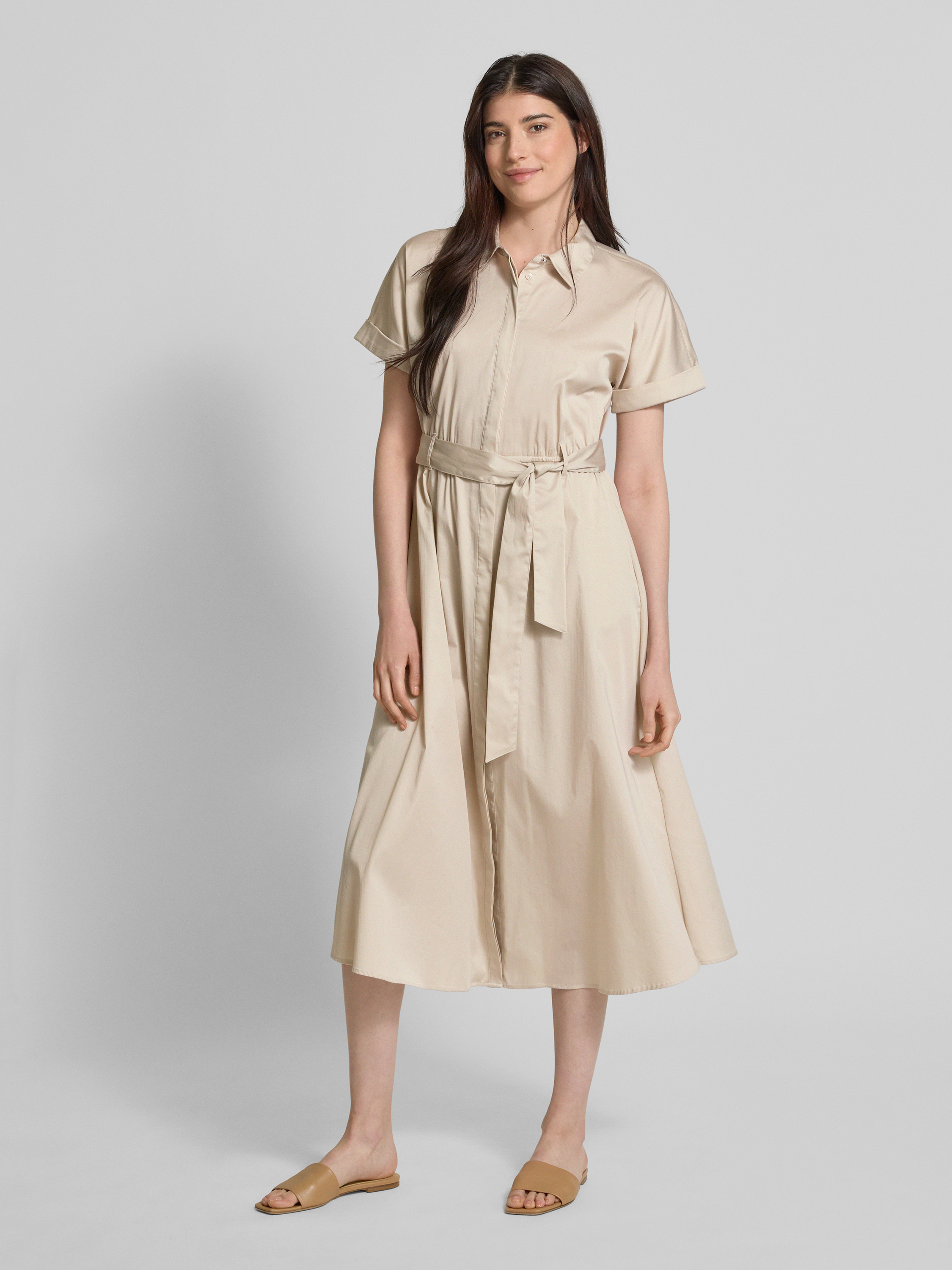 Das Hemdblusenkleid von comma kombiniert einen geraden Schnitt mit einem eleganten Hemdblusenkragen und einem praktischen Bindegürtel. Der Baumwoll-Mix mit Stretch-Anteil sorgt für angenehme Bewegungsfreiheit. Diese vielseitige Wahl eignet sich ideal für unterschiedliche Anlässe und bietet stets hohen Tragekomfort.