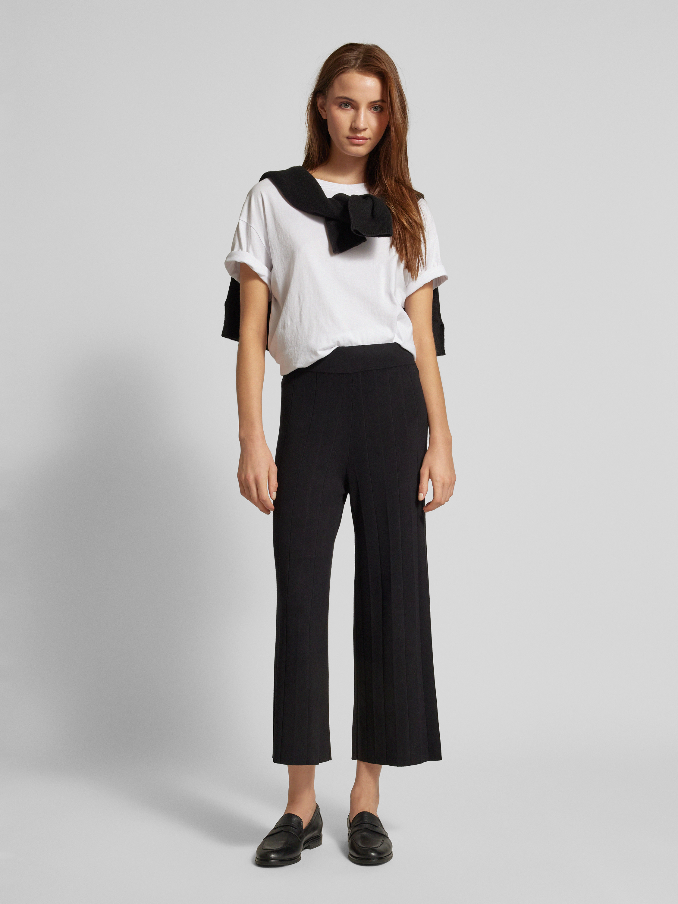 Die Hose von comma zeichnet sich durch ihre reine Viskose und den Regular Fit aus, der in Kombination mit der Strick-Optik für ein angenehmes Tragegefühl sorgt. Der elastische Bund erleichtert das Anziehen und bietet Flexibilität im Alltag. Ideal für vielfältige Stylingmöglichkeiten.
