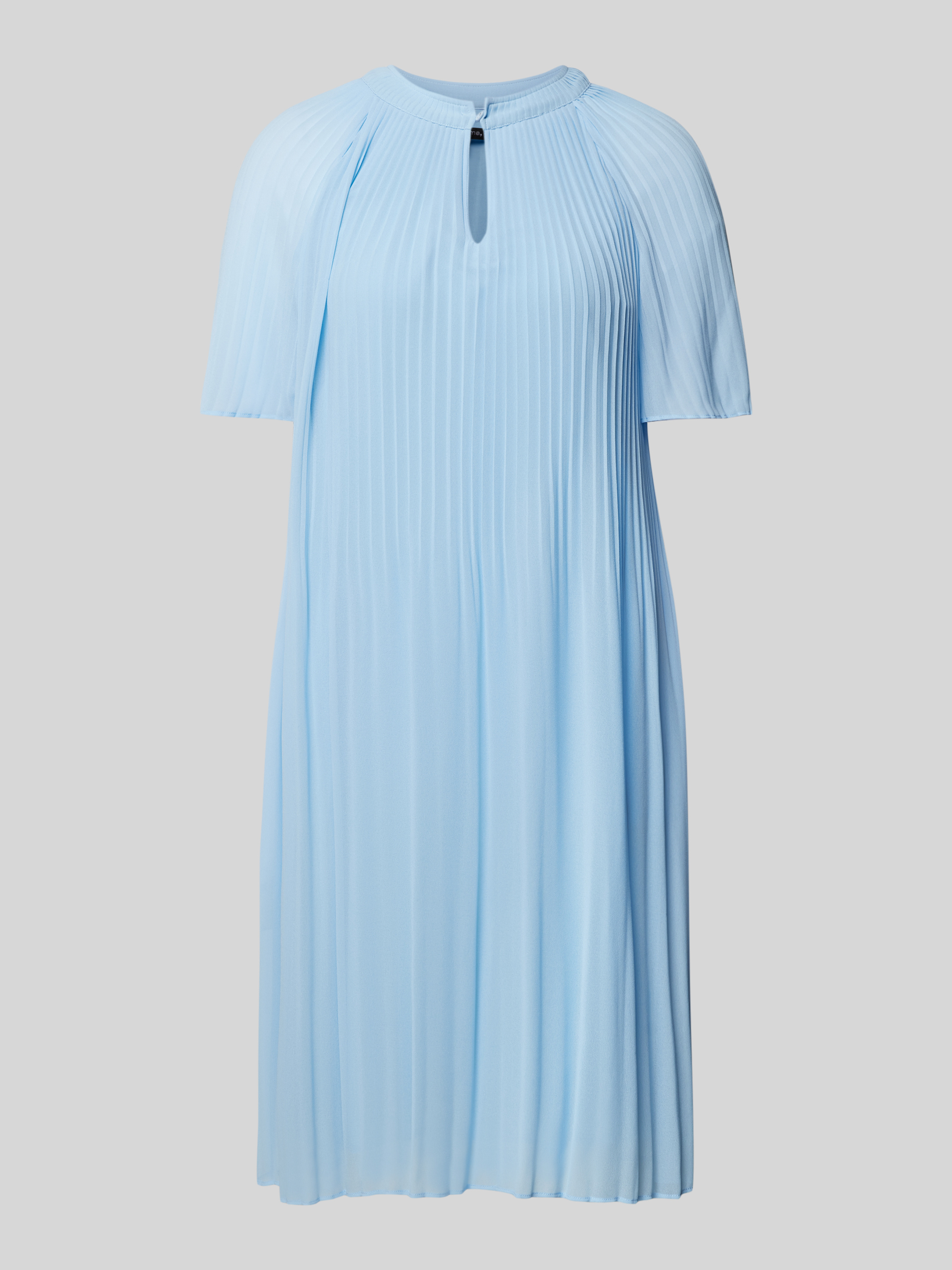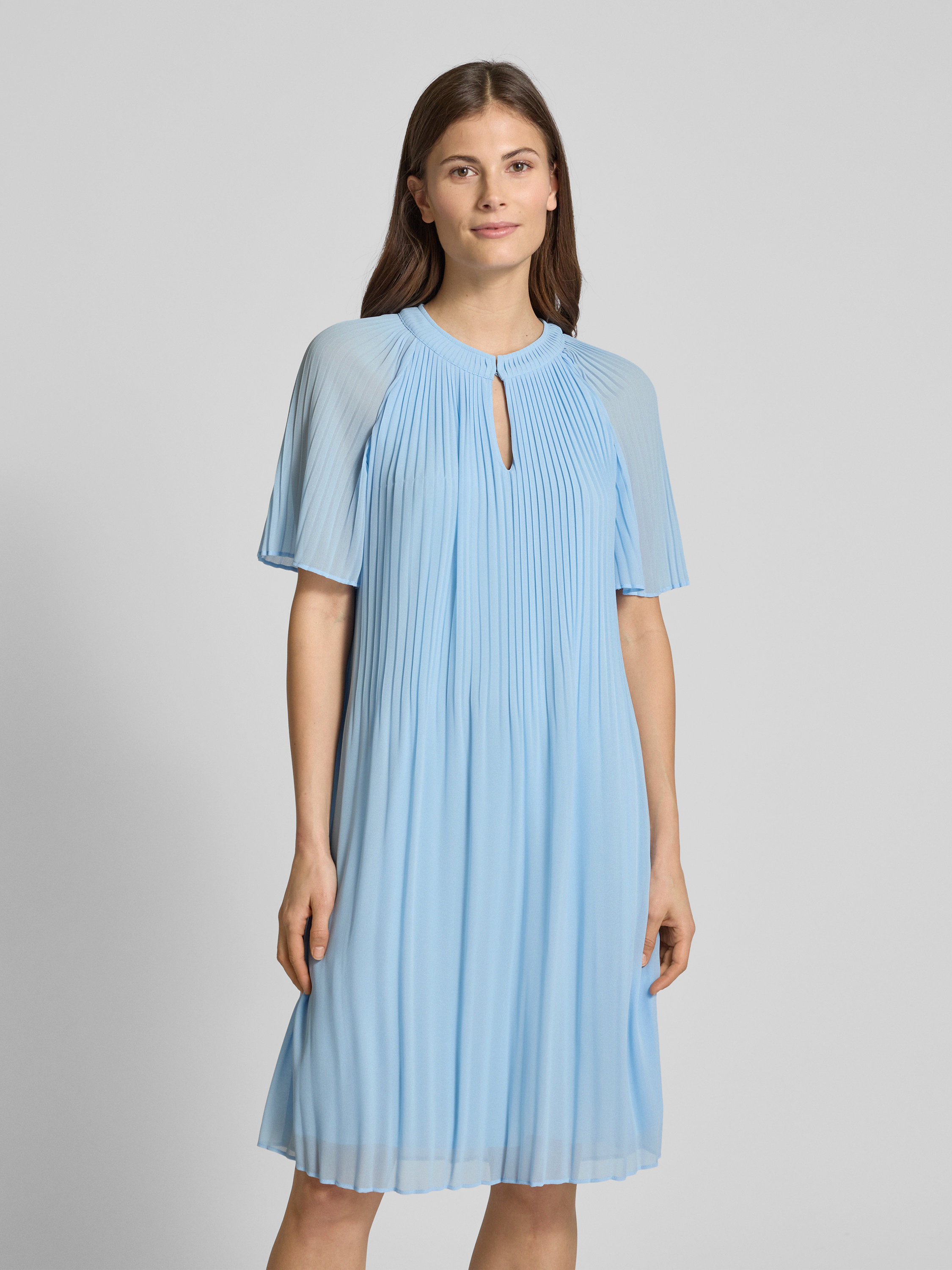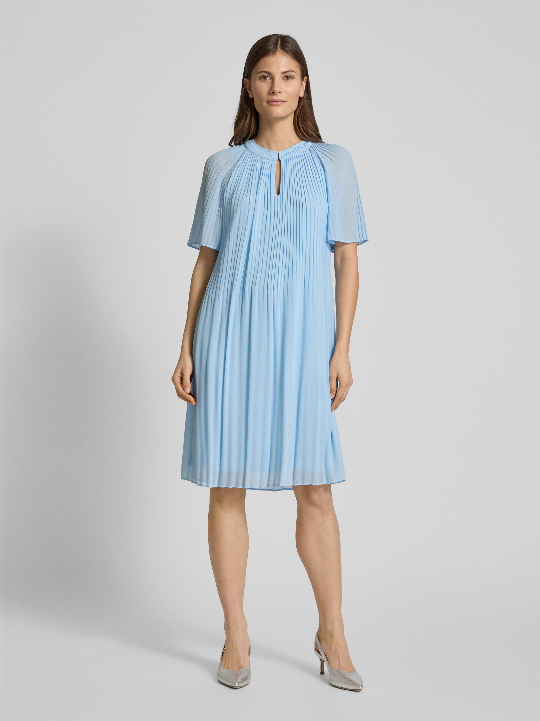 Das knielange Kleid von Comma verleiht mit seinem leicht ausgestellten Schnitt und den eleganten Plisseefalten jedem Anlass eine besondere Note. Der Schlüsselloch-Ausschnitt sorgt für einen dezenten Blickfang, während die knielange Form eine vielseitige Tragbarkeit ermöglicht. Ideal für einen stilvollen Auftritt.