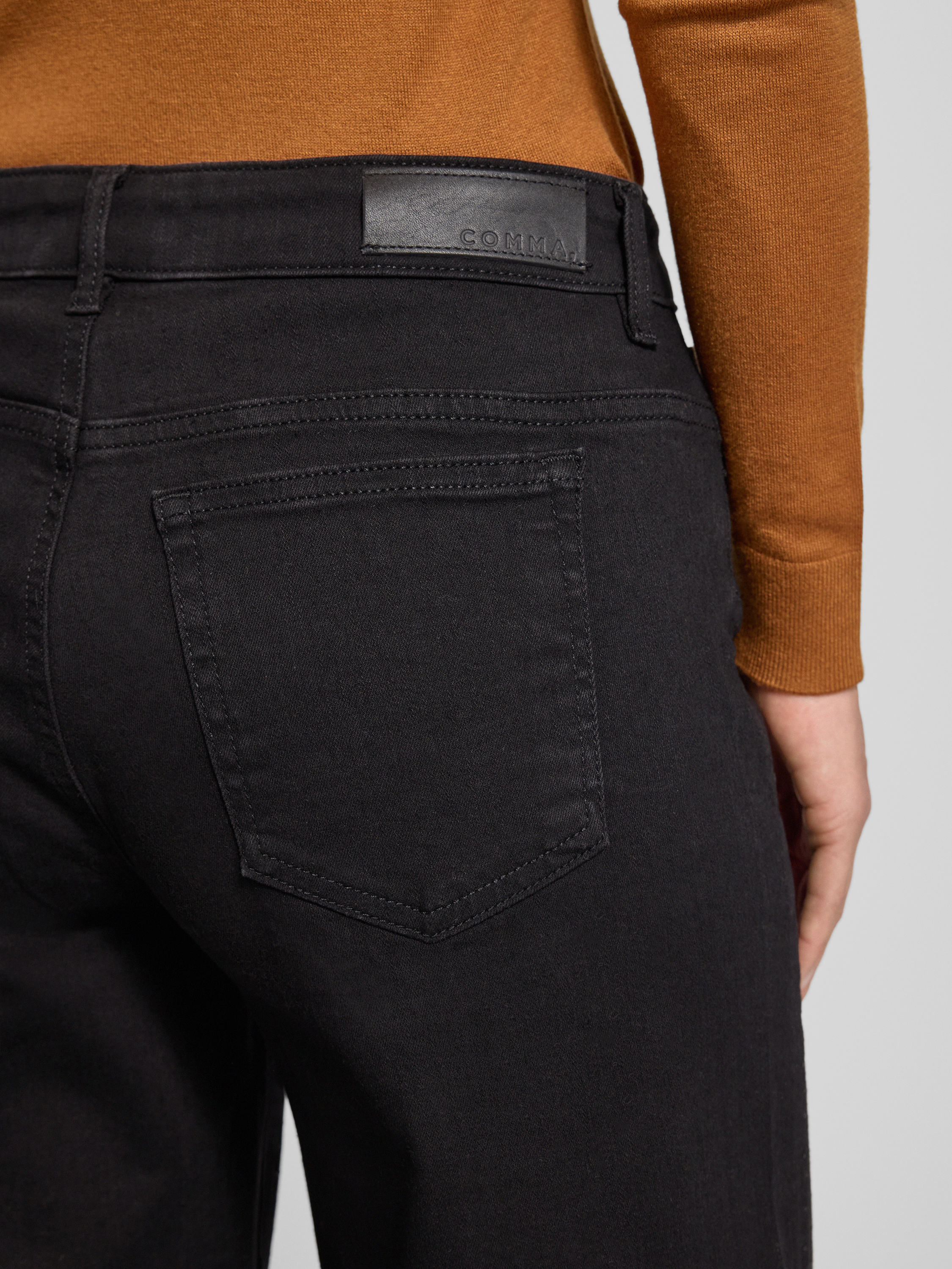 Die Damen Jeans von comma fällt durch ihren lockeren Schnitt und das klassische 5-Pocket-Design auf, wodurch sie vielseitig kombiniert werden kann. Ein Baumwoll-Mix mit Stretch-Anteil sorgt für angenehmen Tragekomfort, auch an langen Tagen. Dezente Ziersteine setzen dabei unaufdringliche Akzente.