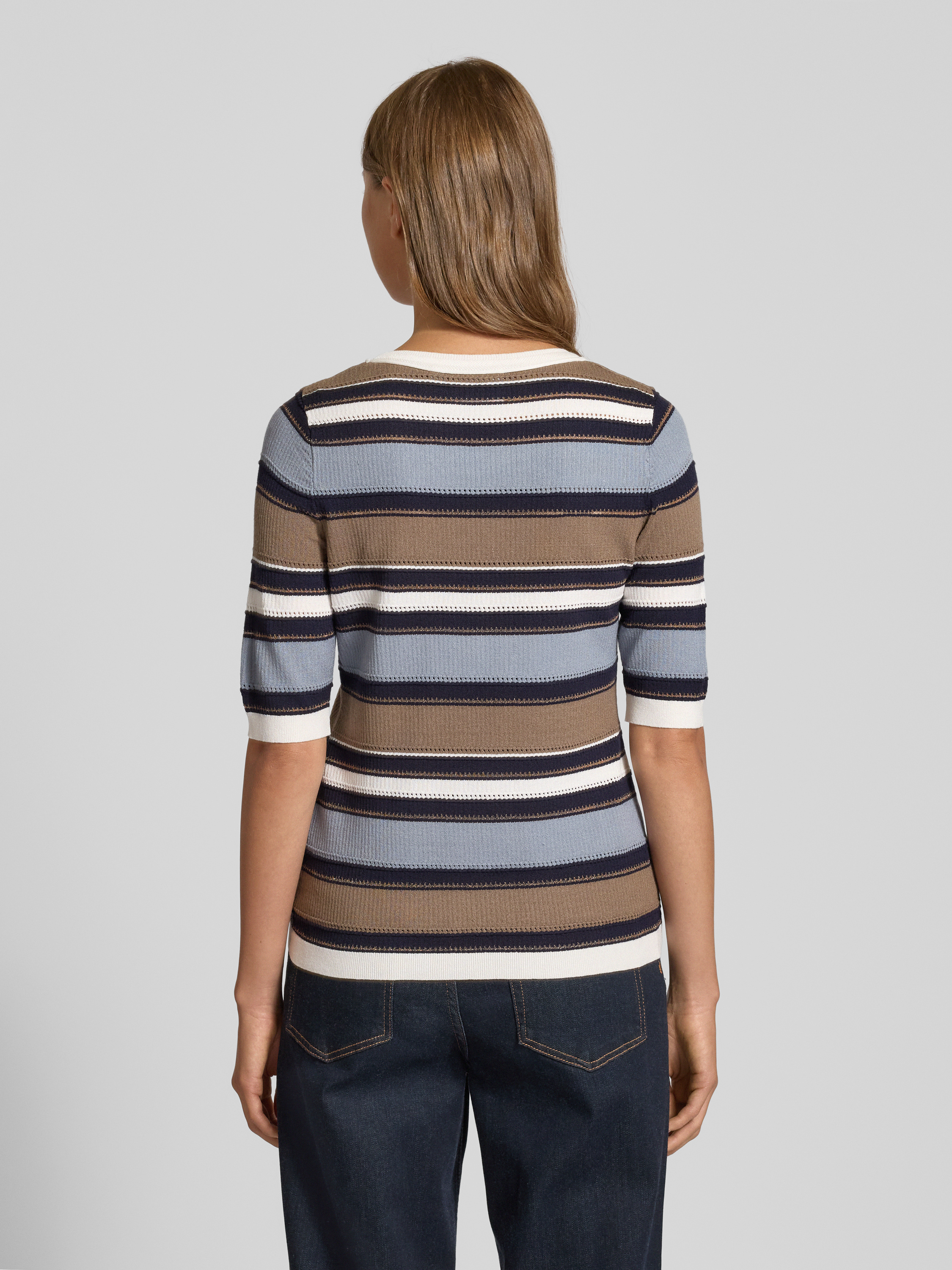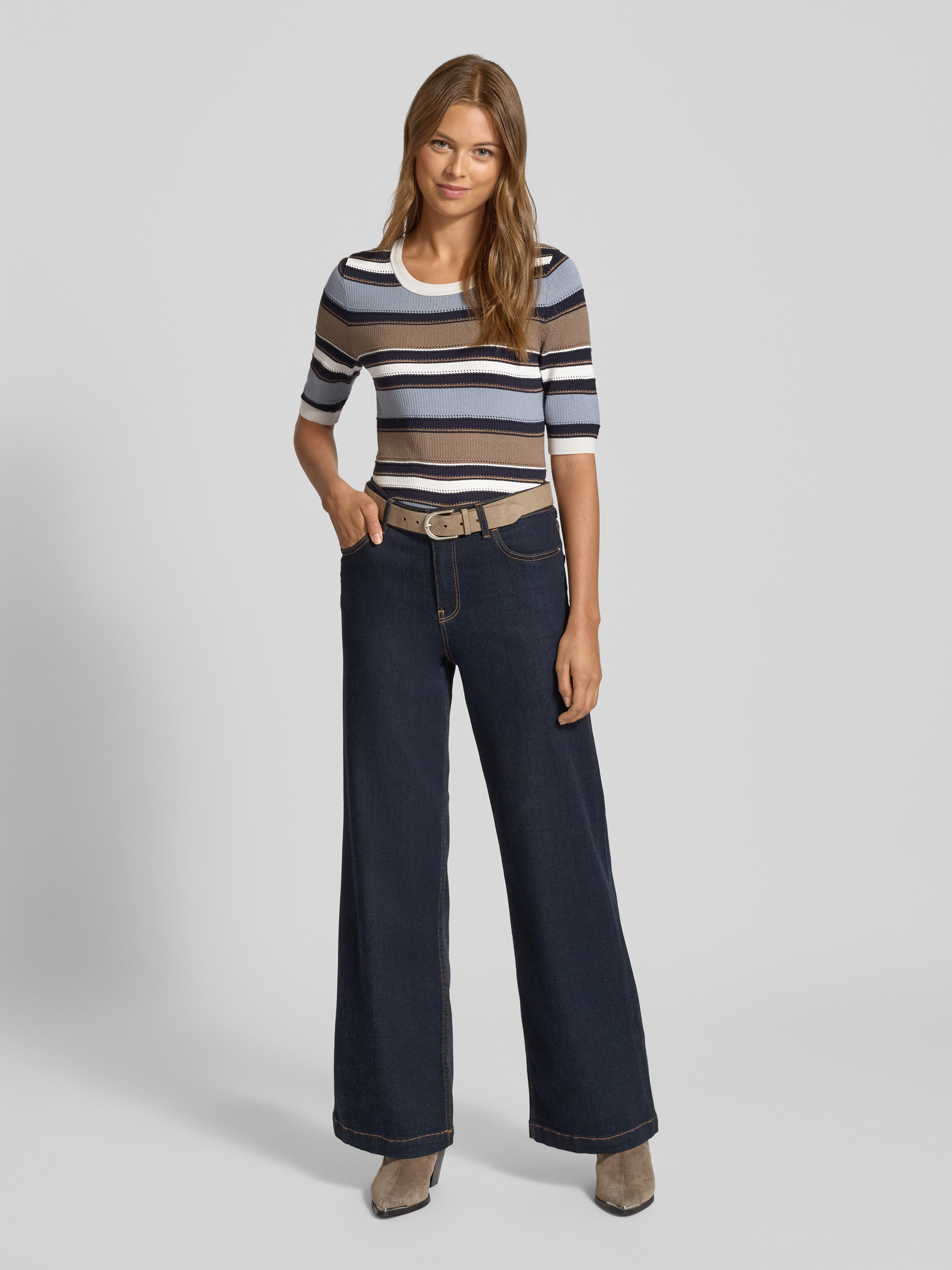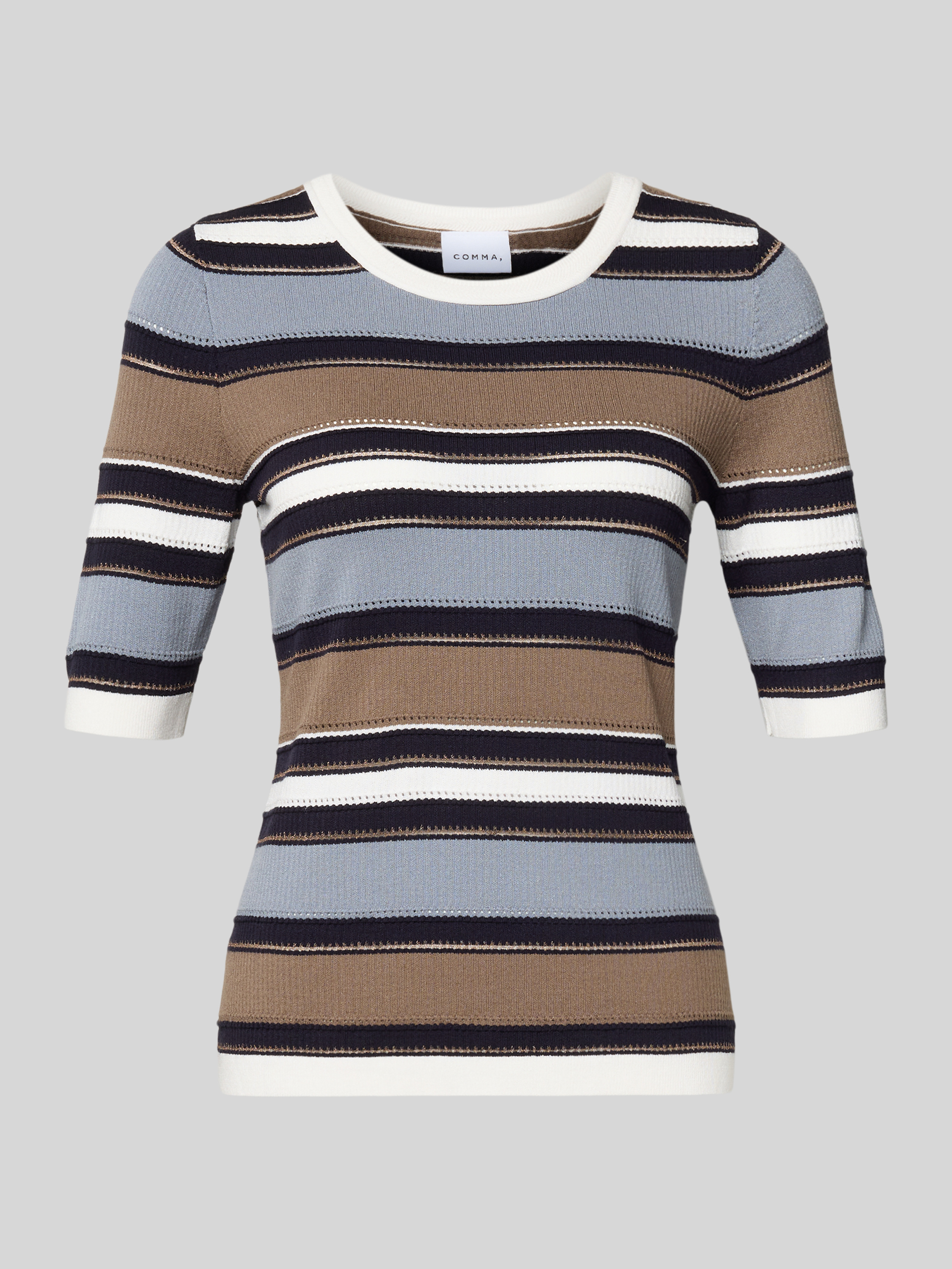 Der Damen Strickpullover von comma zeichnet sich durch eine körpernahe Passform aus, die Bewegungsfreiheit und angenehmen Sitz ermöglicht. Ein klassischer Rundhalsausschnitt und die 3/4-Ärmel sorgen für vielseitige Kombinationsmöglichkeiten im Alltag. Der weiche Viskose-Mix fühlt sich angenehm auf der Haut an.