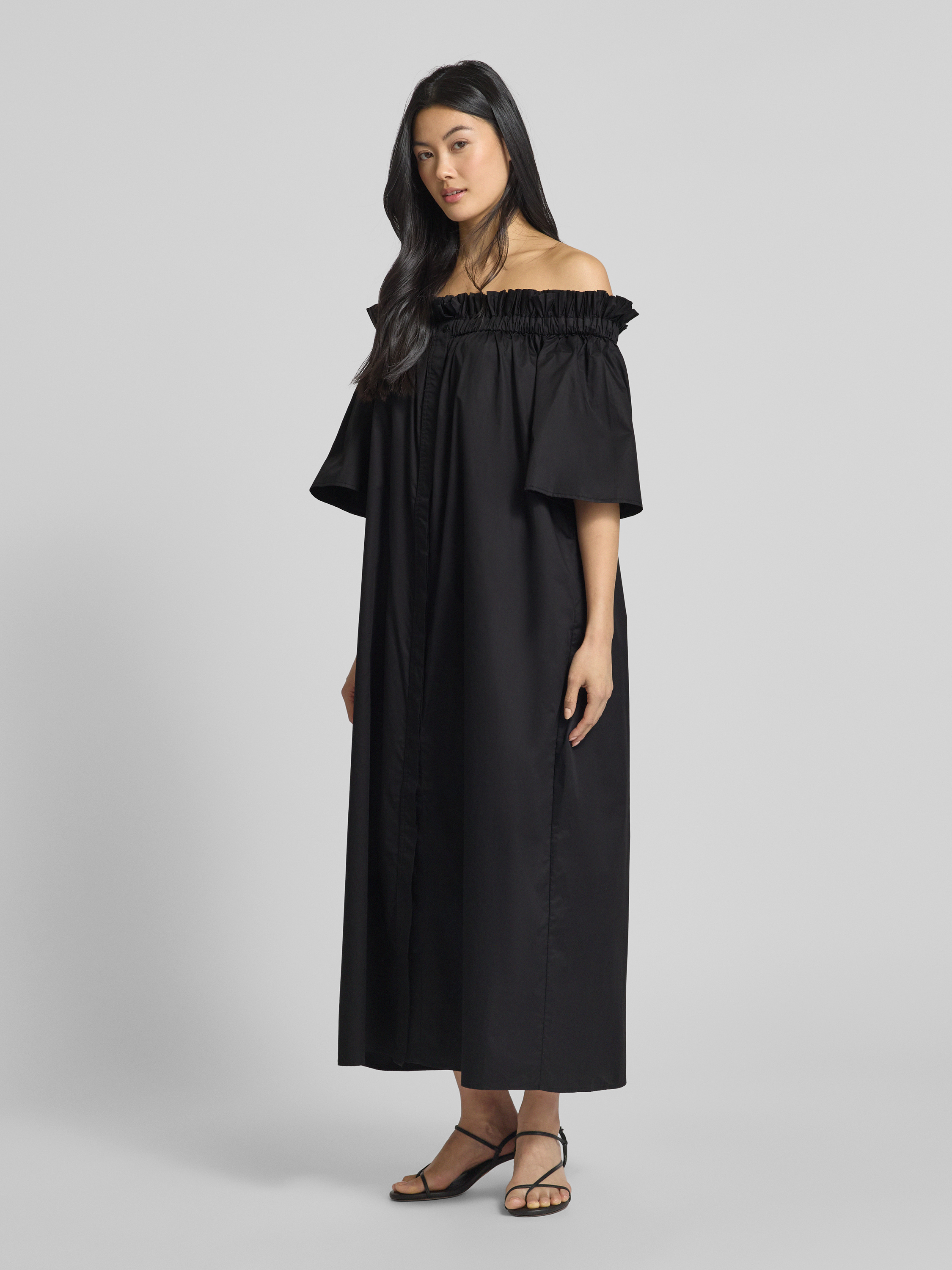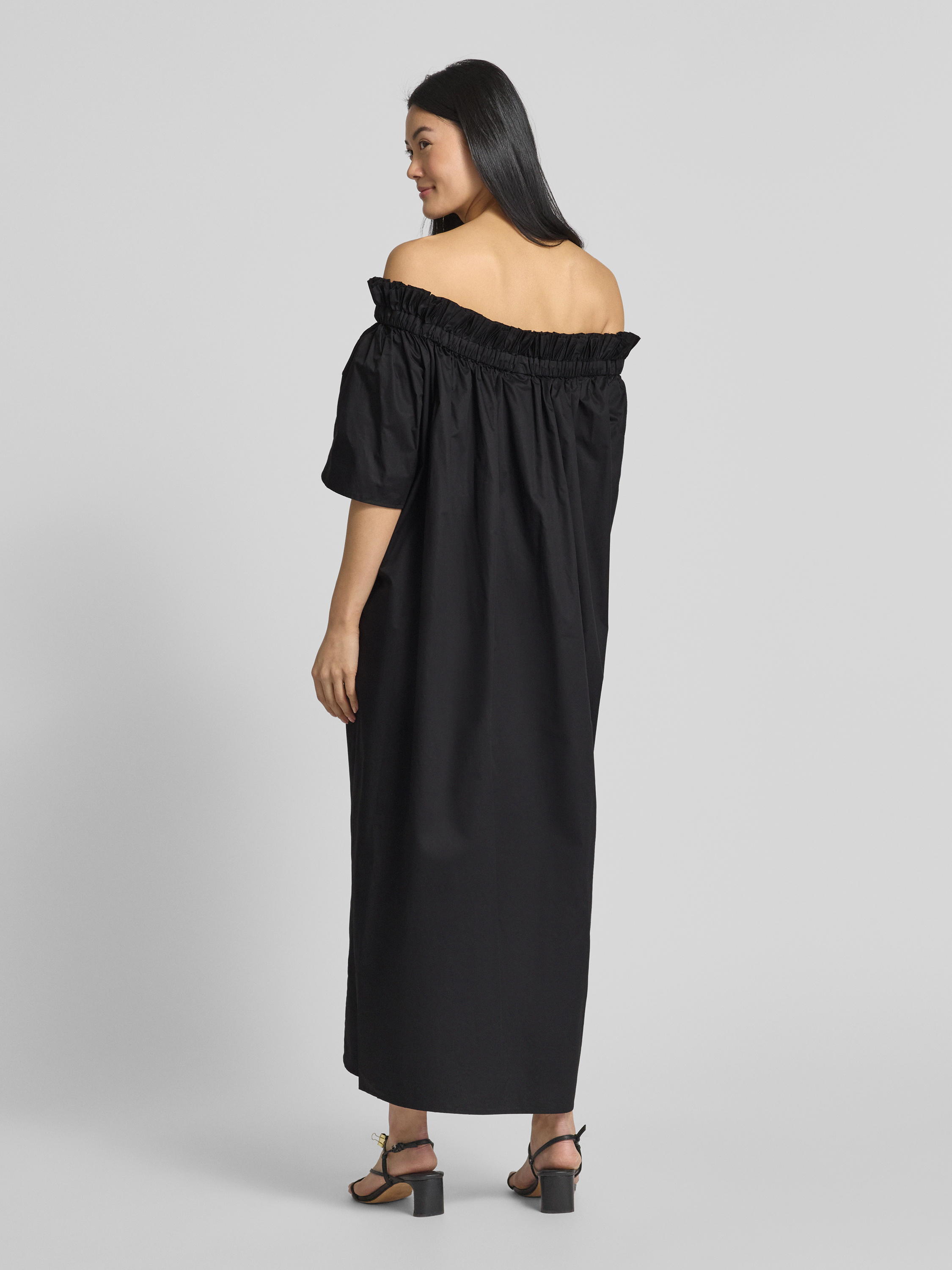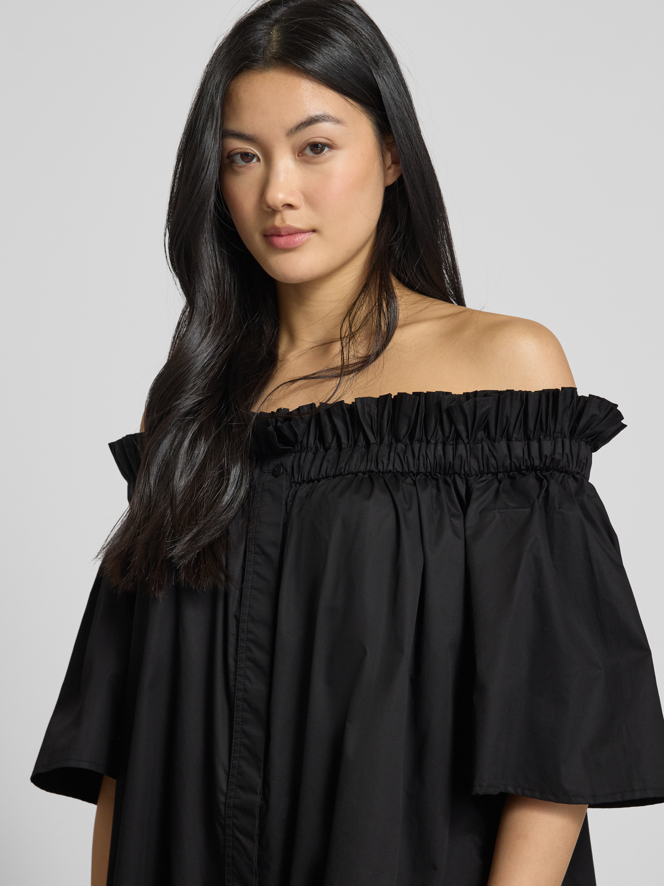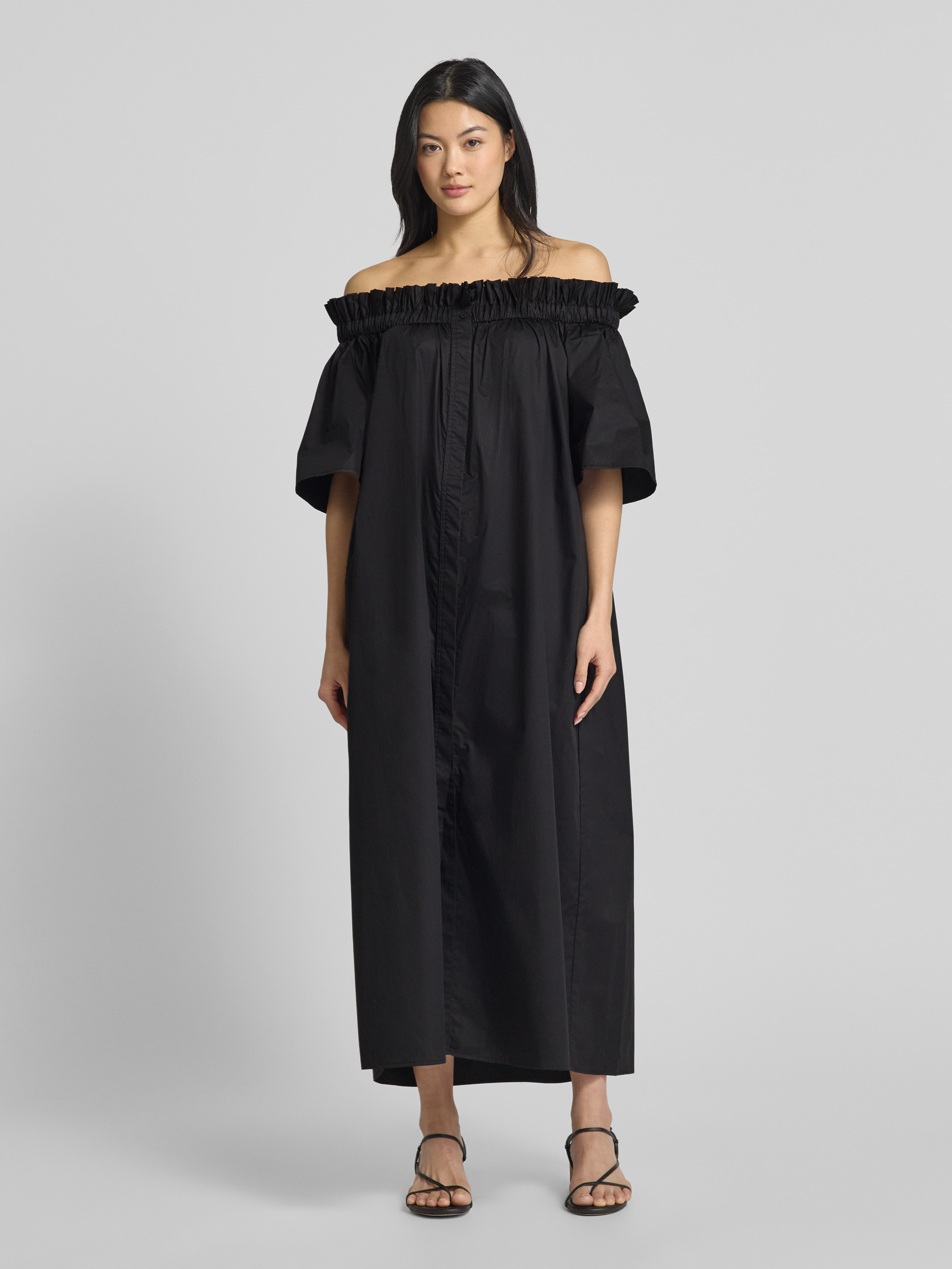 Das 'SHIRLEY-DRESS' von COPENHAGEN MUSE, gefertigt aus reiner Baumwolle, vereint Komfort mit Stil. Der gerade Schnitt und das Off-Shoulder-Design schaffen eine lässige Eleganz, die in jeder Situation überzeugt. Die subtile Knopfleiste verleiht dem Midikleid eine raffinierte Note.