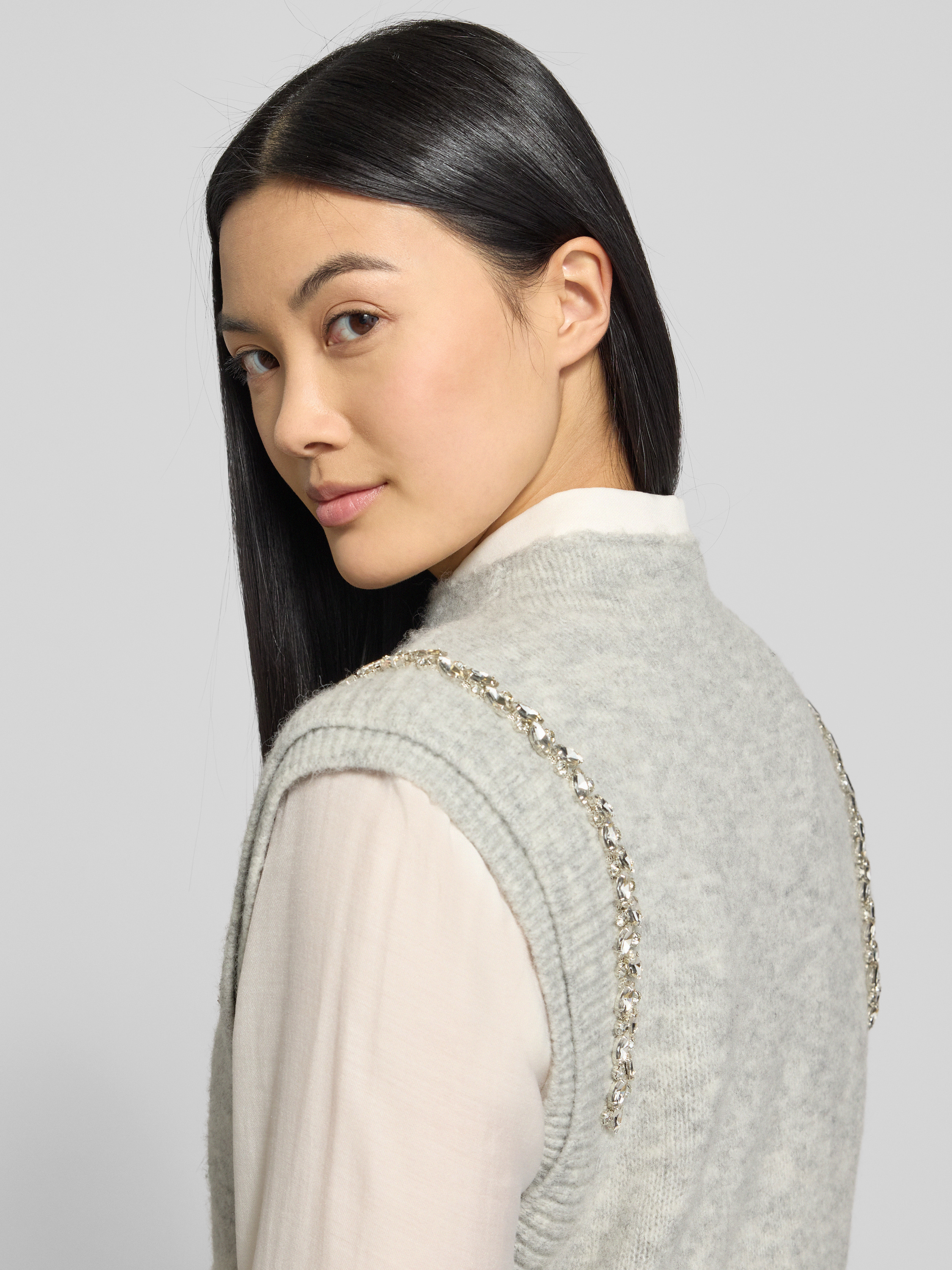 Copenhagen MusePullunder mit Ziersteinbesatz Modell 'IBRA' in hellgrau melange