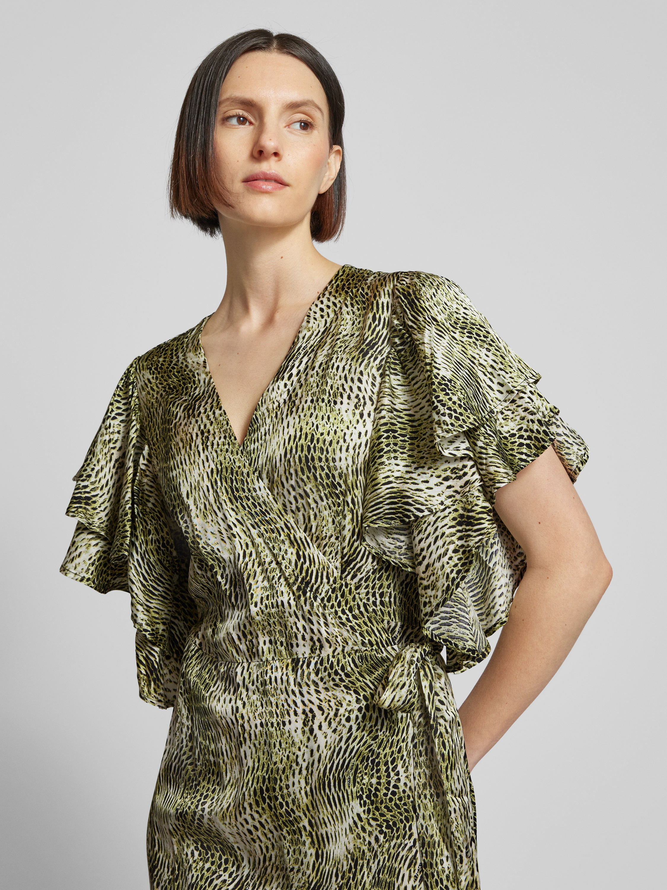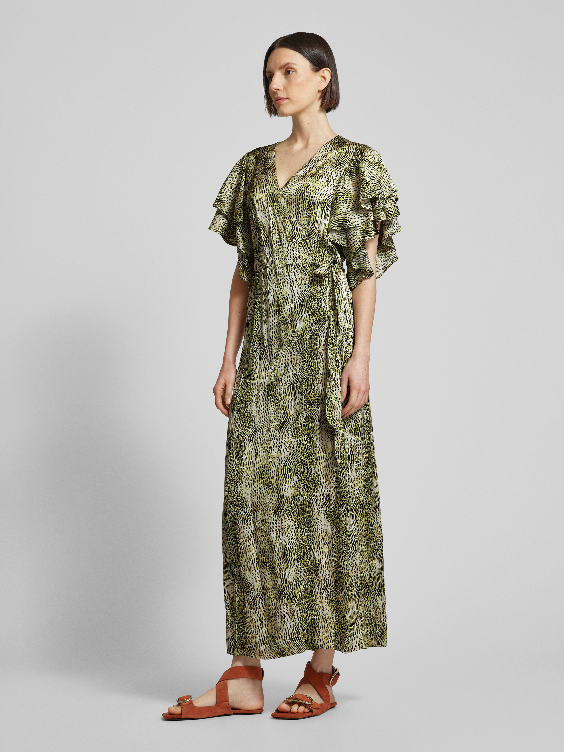 Copenhagen MuseWickelkleid aus Viskose mit Volants Modell 'SABINA' in gruen