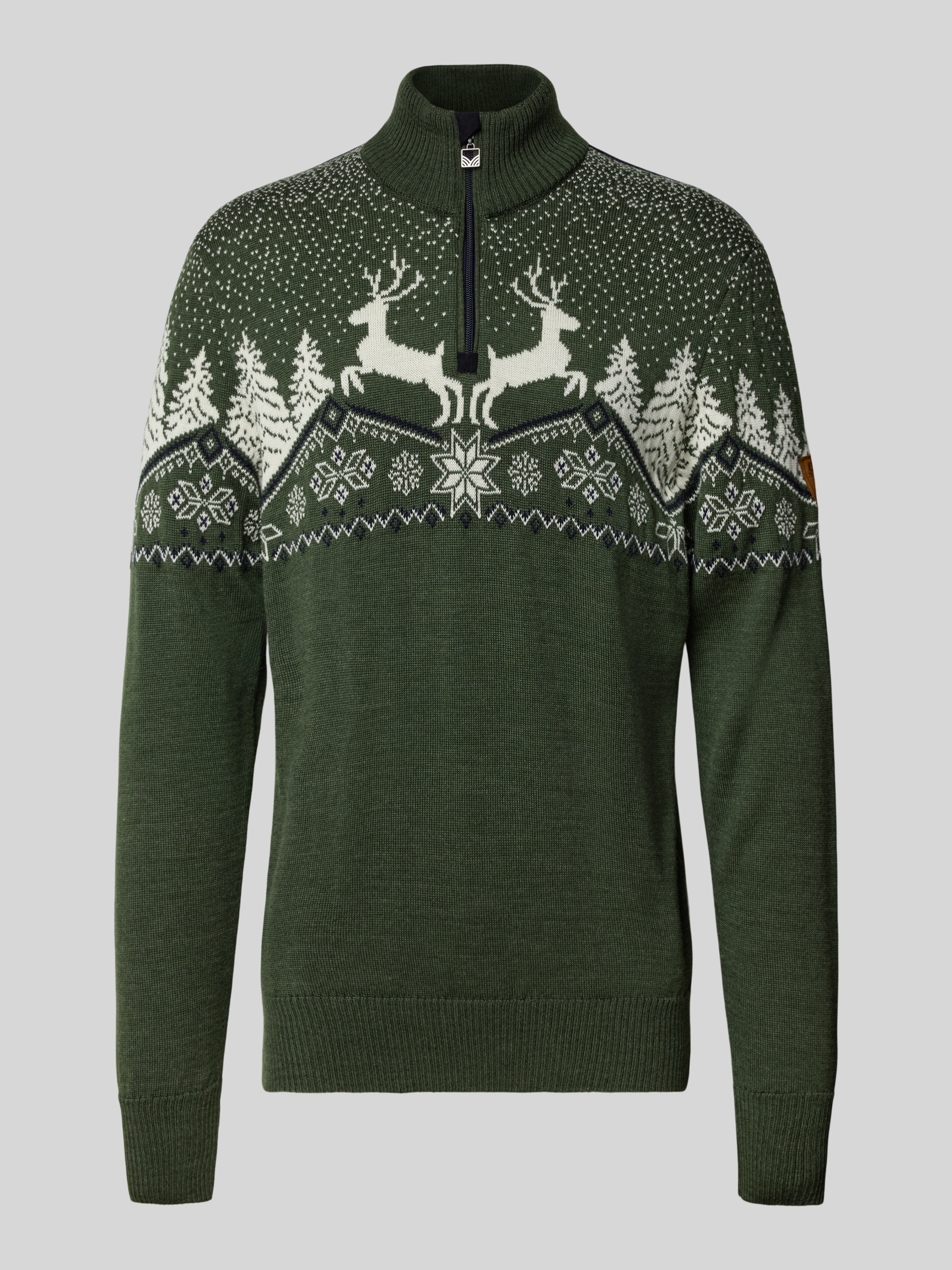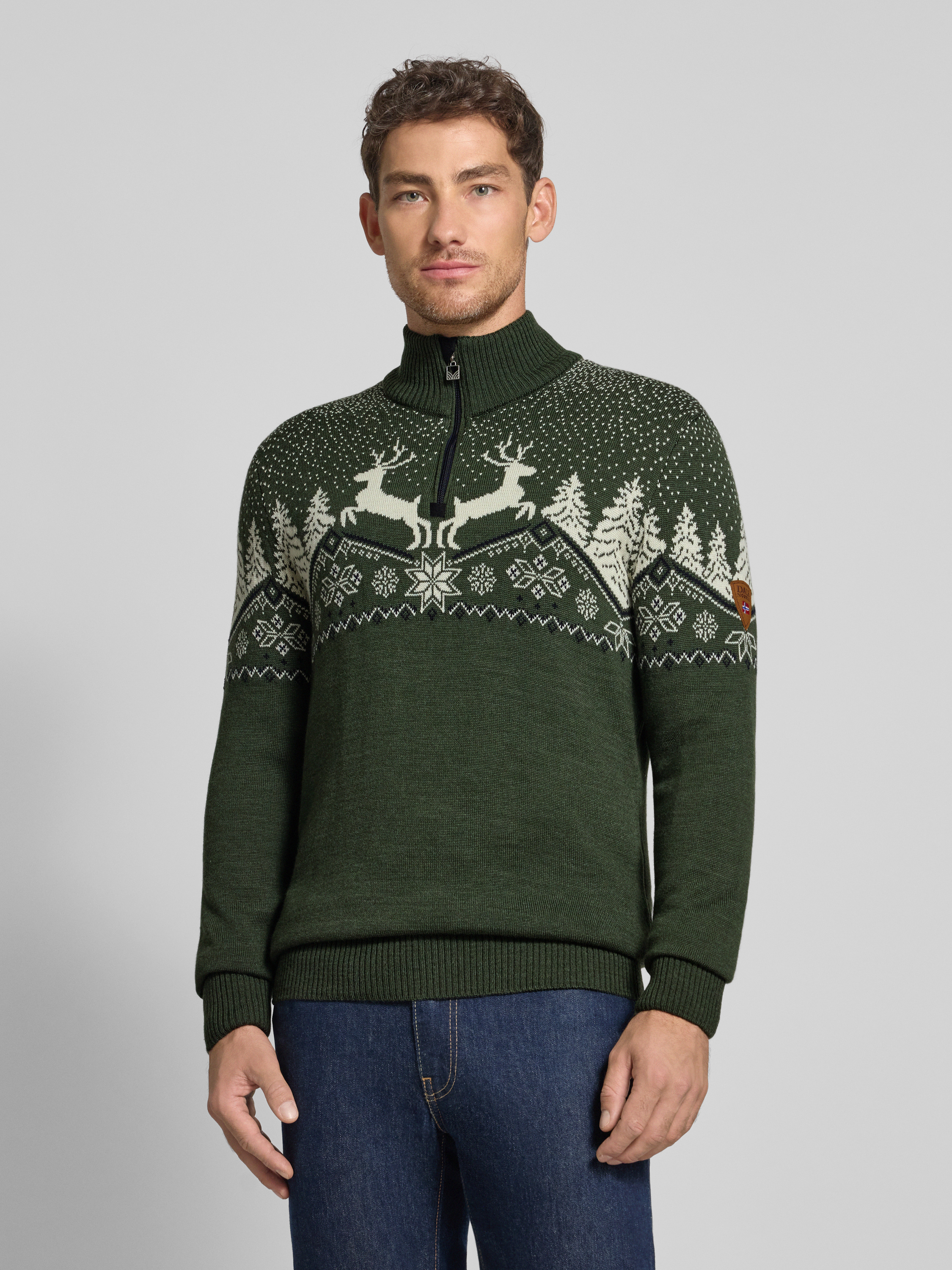 Der Herren Wollpullover von Dale of Norway legt sich angenehm an den Körper und sorgt durch reine Wolle für ein natürliches Tragegefühl. Der klassische Troyer-Kragen verleiht dem Modell eine markante Note, während gerippte Abschlüsse den Sitz zuverlässig unterstützen. So entsteht ein vielseitiges Kleidungsstück, das im Alltag flexibel einsetzbar ist.