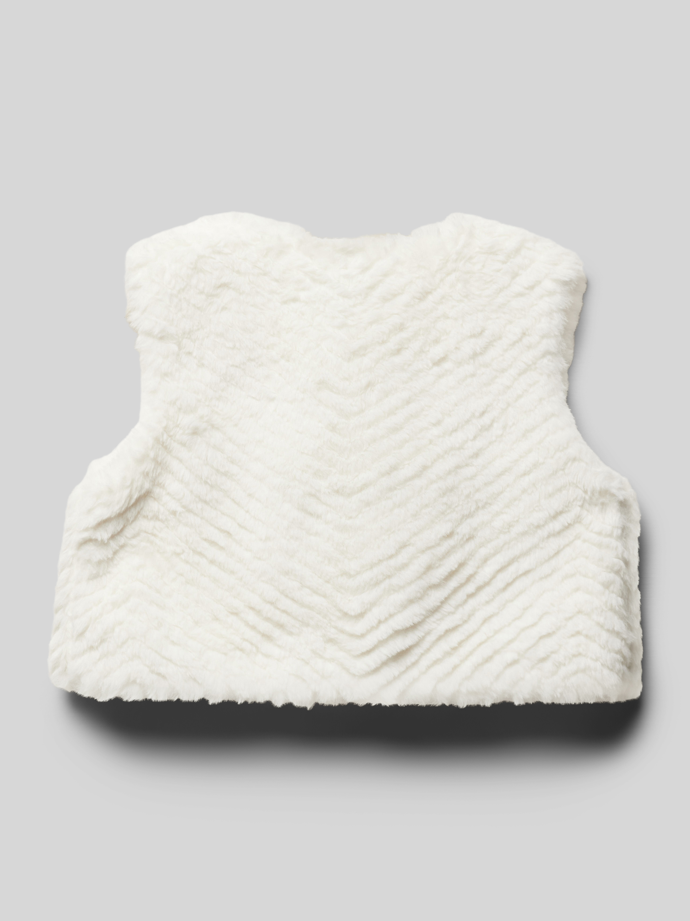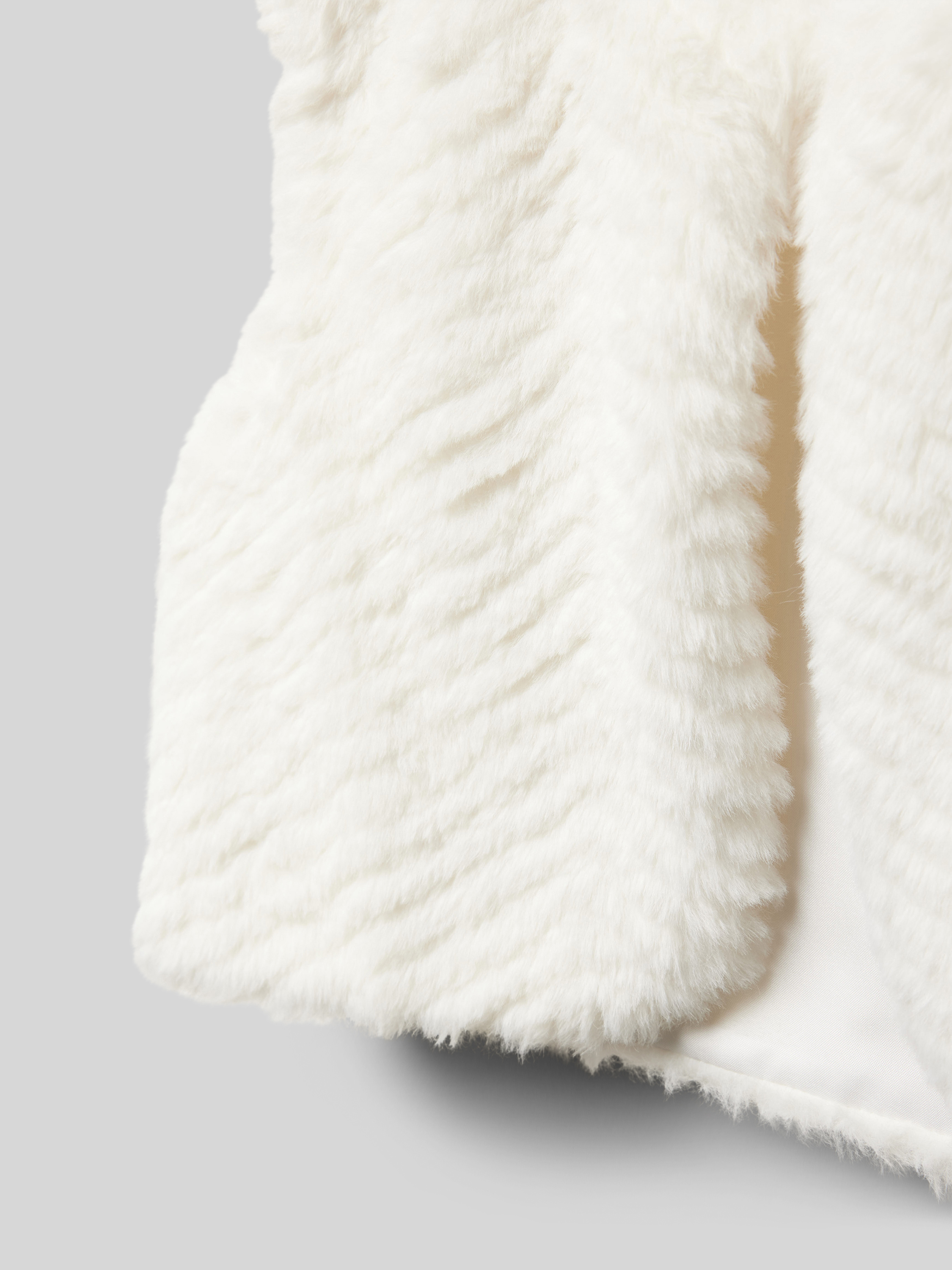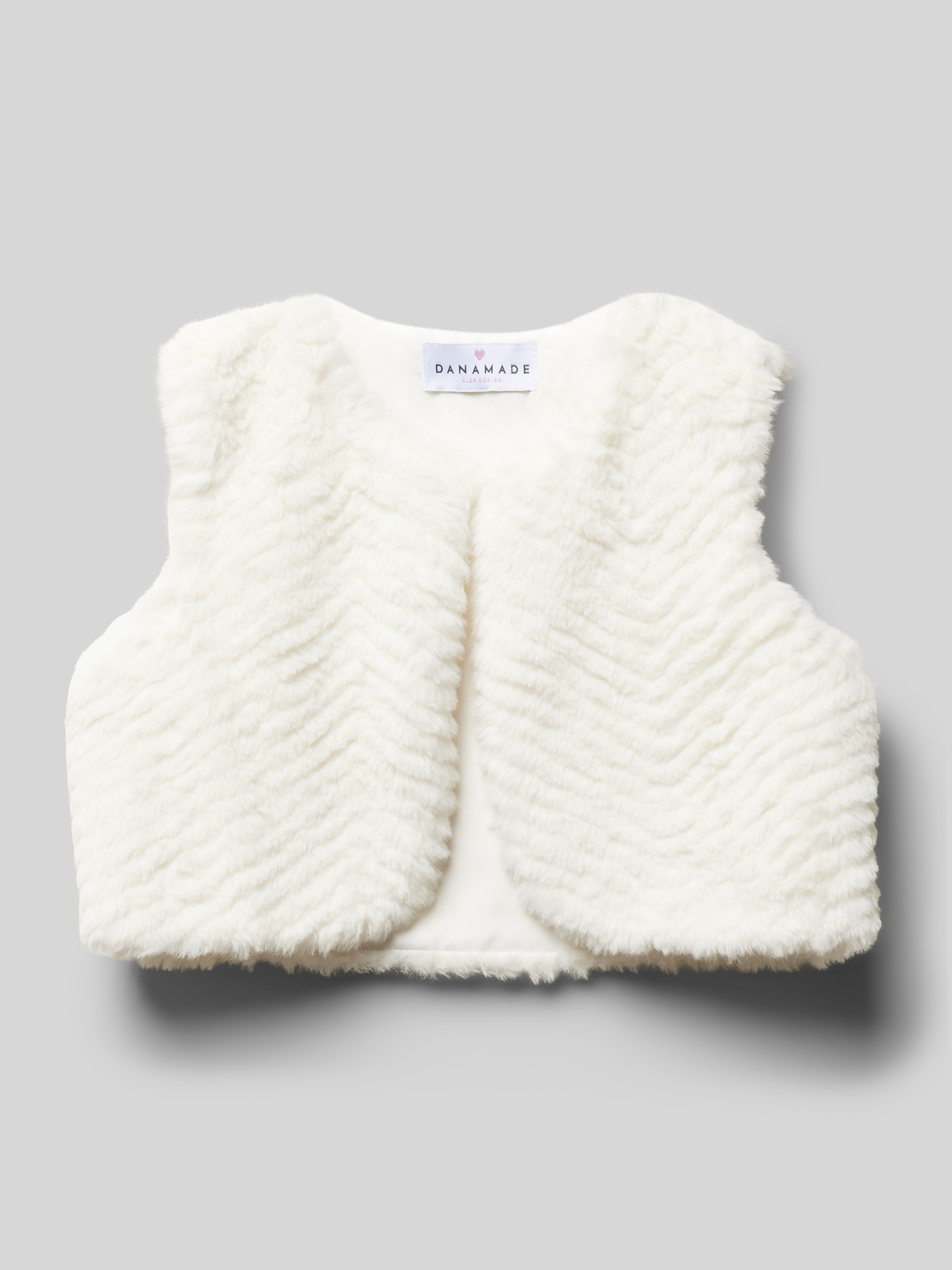 Die Cropped Weste aus Teddyfell von DANAMADE, Modell 'HASEL', vereint lässigen Stil mit angenehmem Tragekomfort. Durch den Regular Fit und den Rundhalsausschnitt passt sie sich harmonisch an, während das Strukturmuster für eine charmante Optik sorgt. Ideal für kühle Tage geeignet.