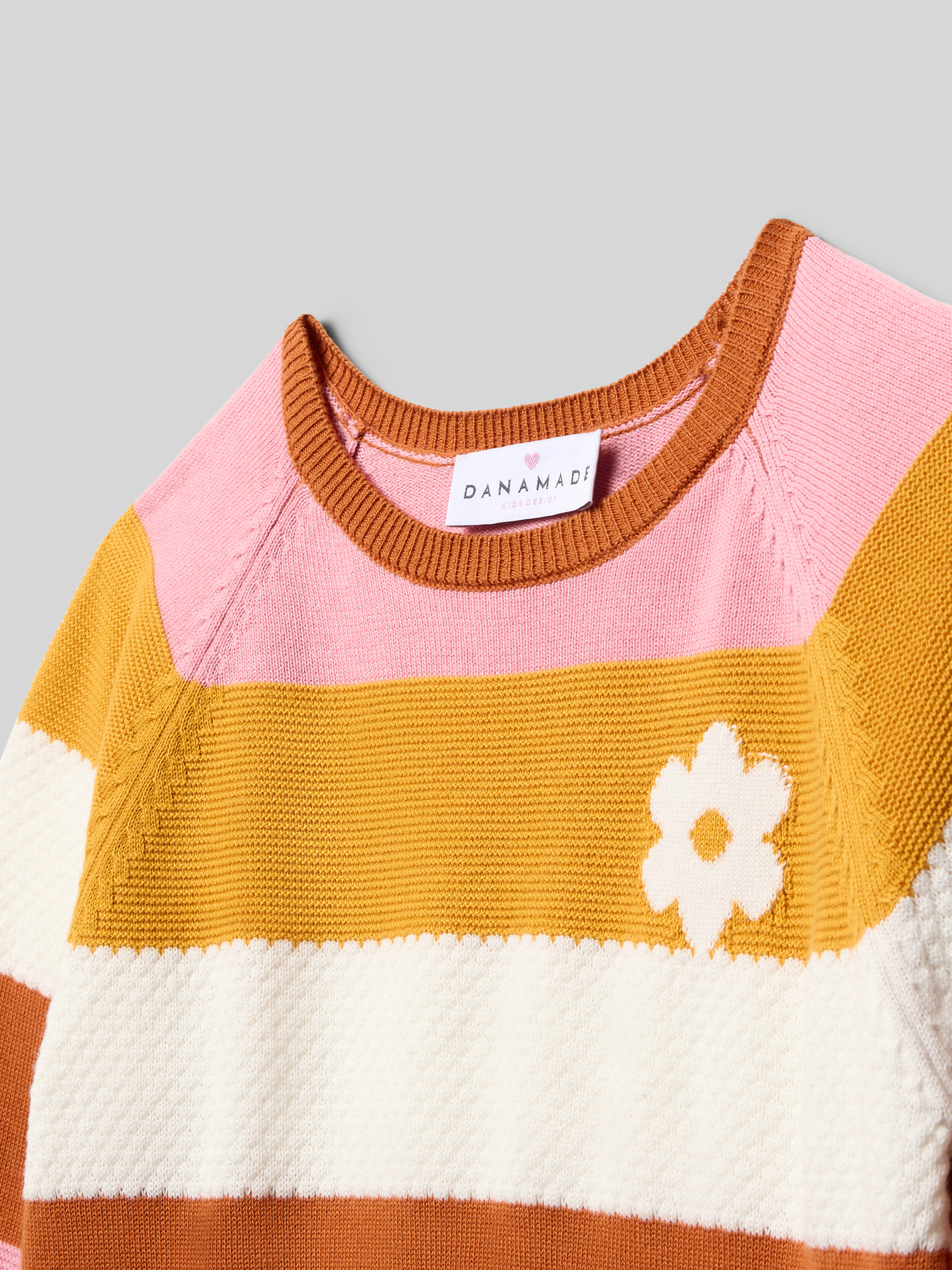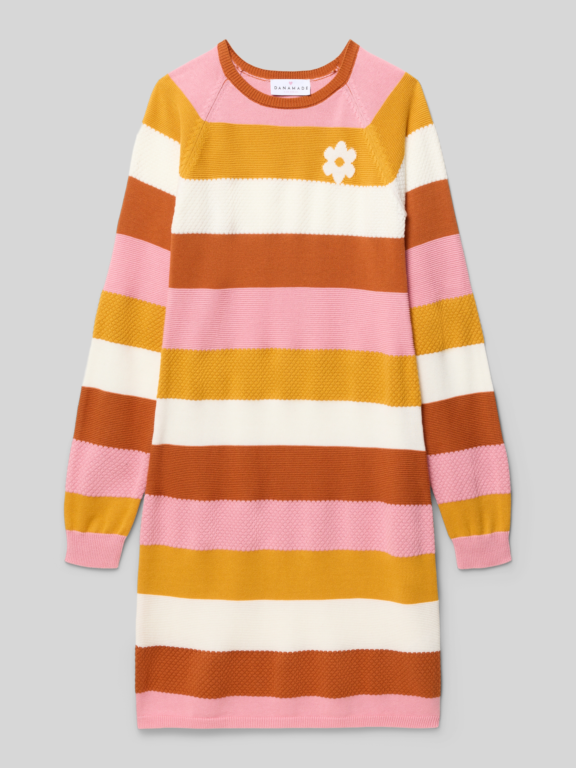 Das Kinder Strickkleid von DANAMADE fällt durch seinen geraden Schnitt angenehm locker und eignet sich ideal für entspannte Tage. Reine Baumwolle sorgt für ein weiches Gefühl auf der Haut, während der klassische Rundhalsausschnitt zeitlose Schlichtheit verleiht. Durch die knielange Form entsteht ein vielseitiger Look.