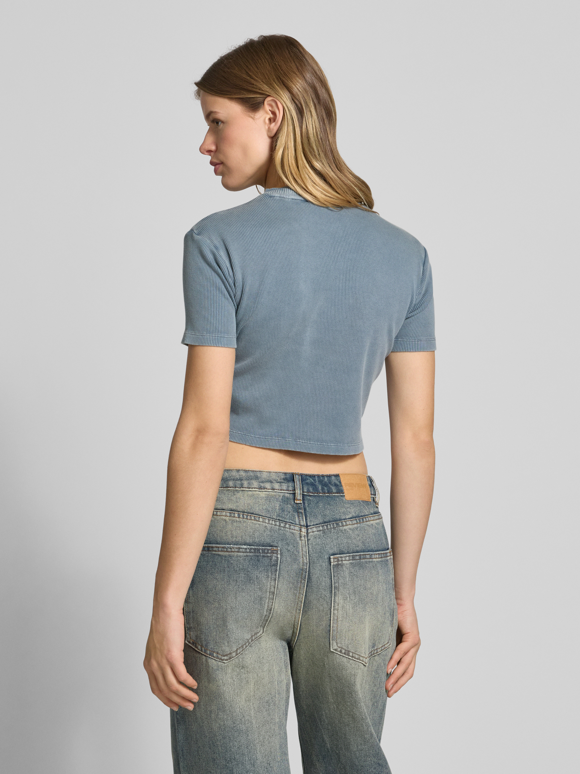 DickiesCropped T-Shirt in Ripp-Optik Modell 'PLENTYWOOD' in blau