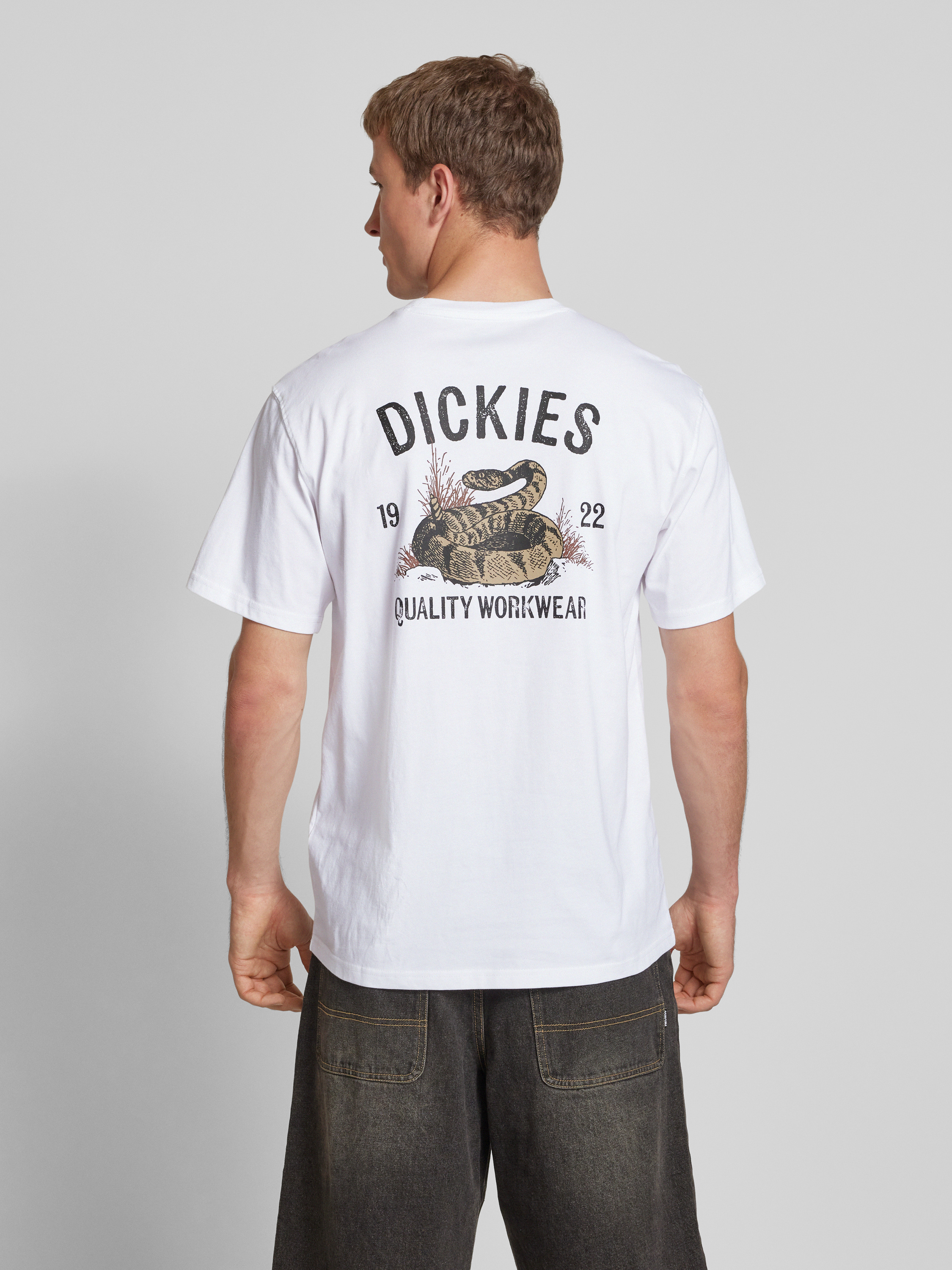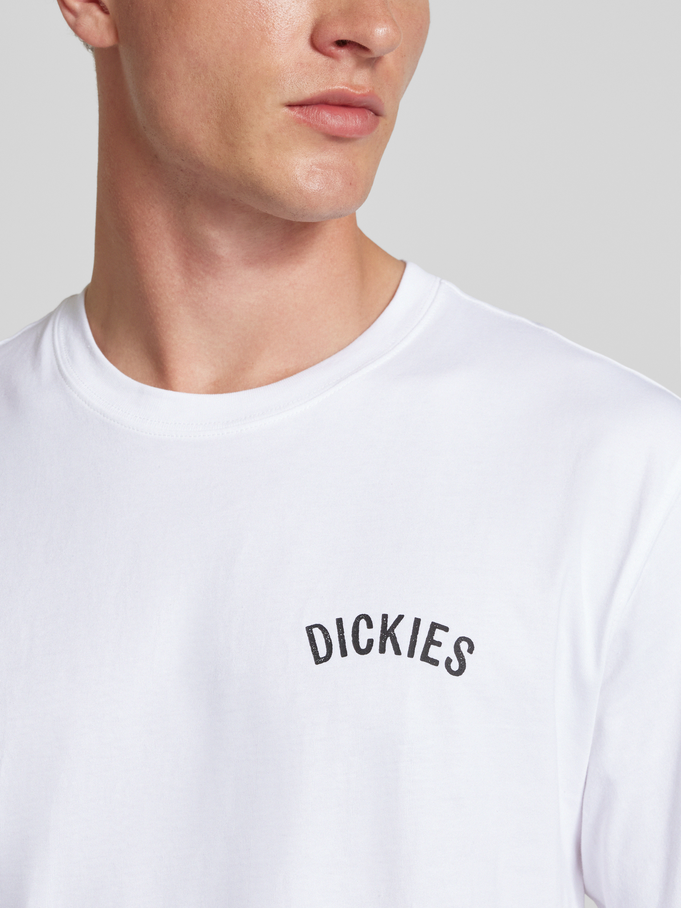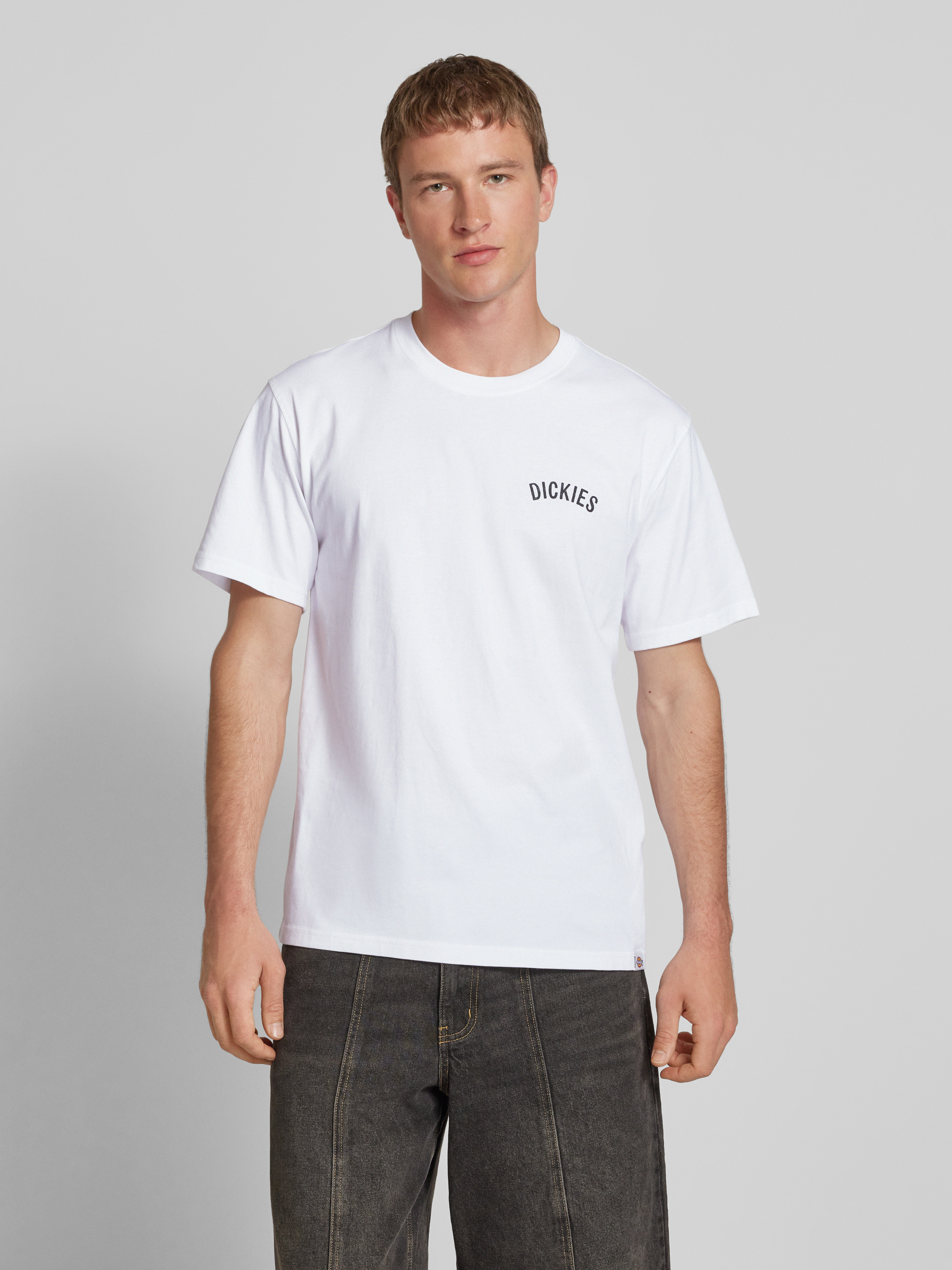 Das Herren T-Shirt von Dickies aus reiner Baumwolle sorgt mit seinem Regular Fit für einen angenehmen Tragekomfort. Der gerippte Rundhalsausschnitt verleiht dem Shirt eine lässige Note, während der markante Label-Print auf der Vorderseite einen modernen Akzent setzt. Ideal für Alltag und Freizeit.