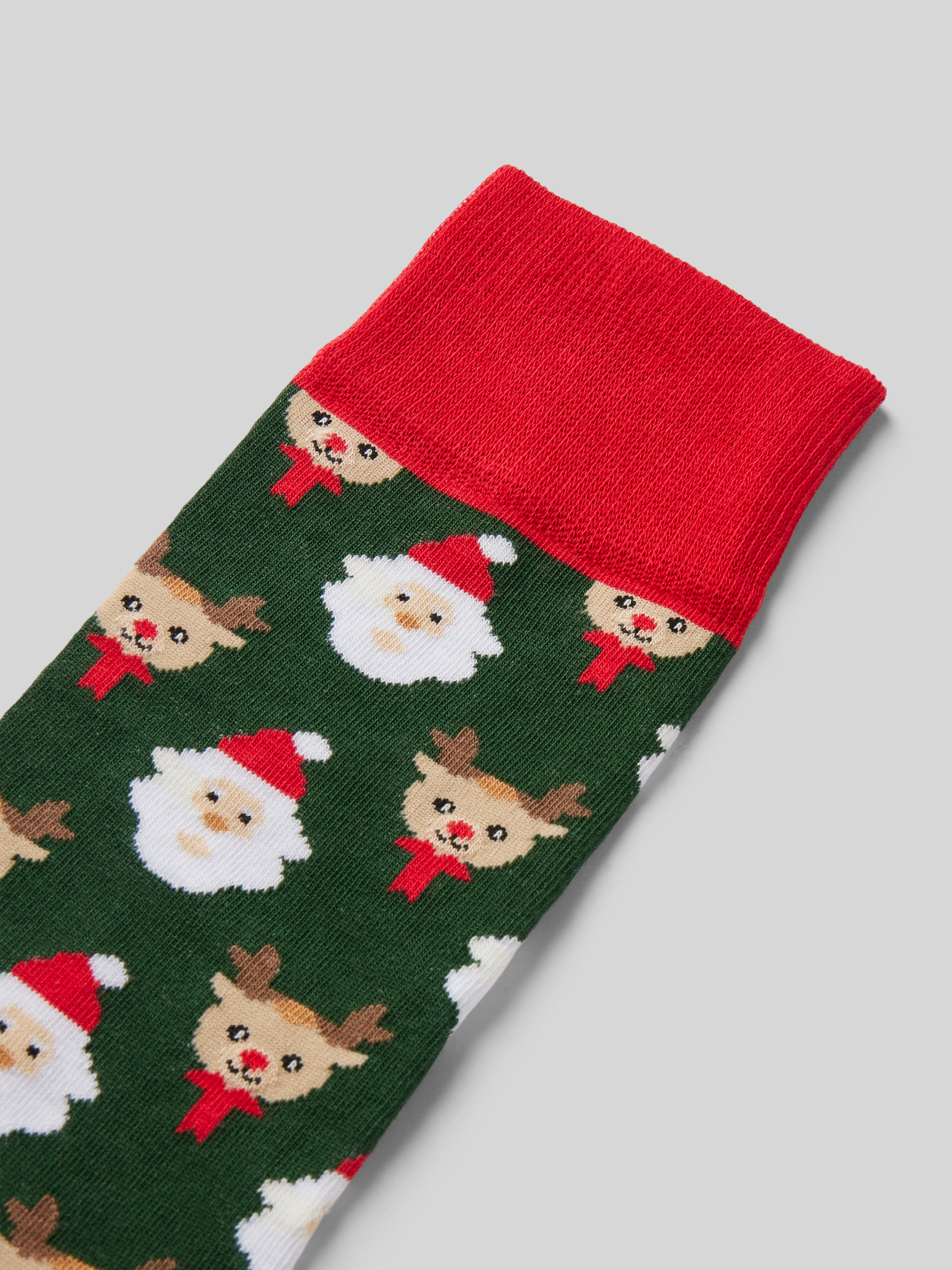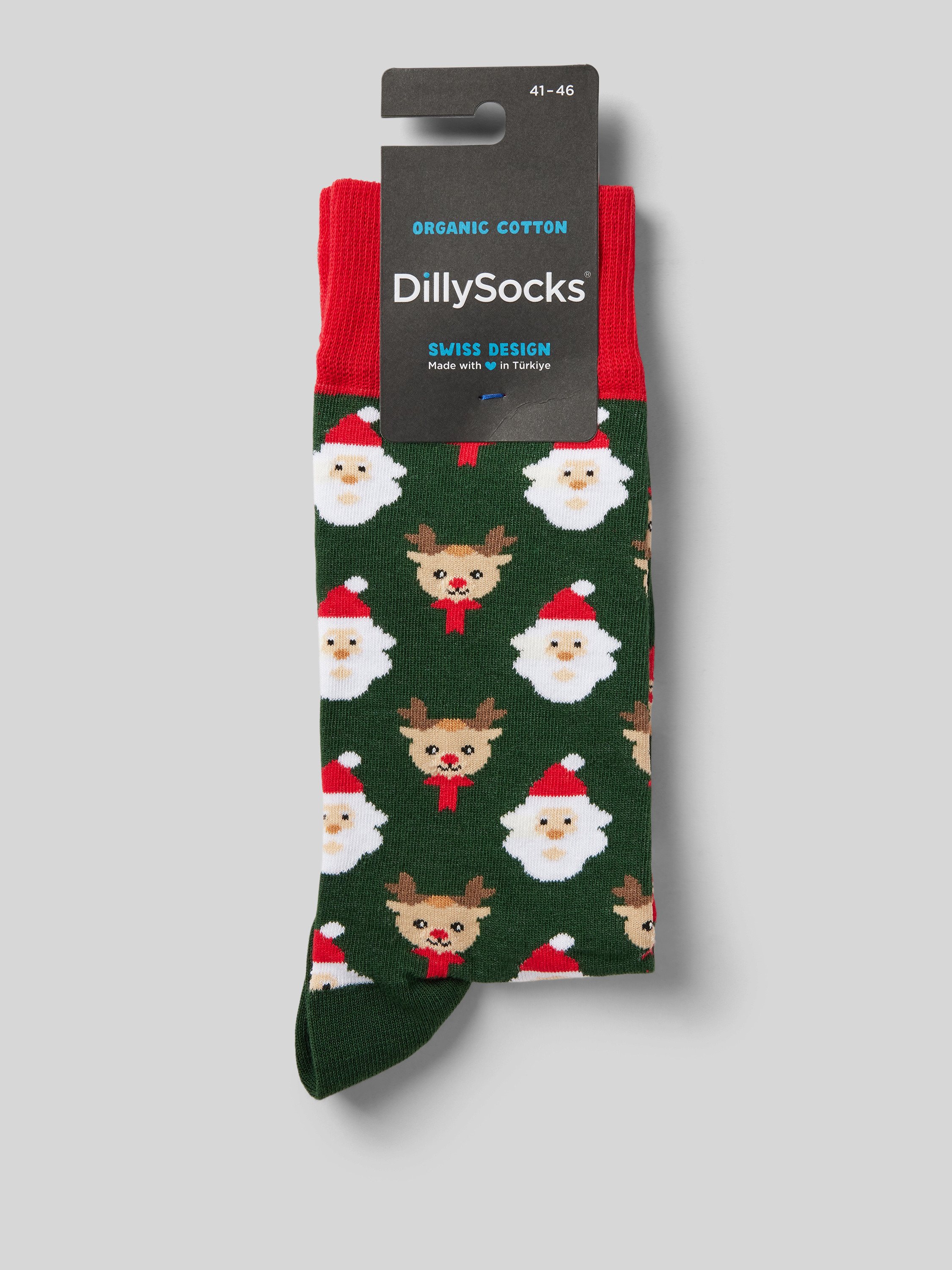 Die Socken von Dilly, Modell 'Rudolph in the Forest', kombinieren einen Bio-Baumwoll-Mix mit einem Stretch-Anteil und bieten dadurch eine angenehme Passform. Dank der elastischen Bündchen sitzen sie sicher am Fuß, während das charmante Motiv-Stitching einen besonderen Akzent setzt. Ideal für jeden Tag.
