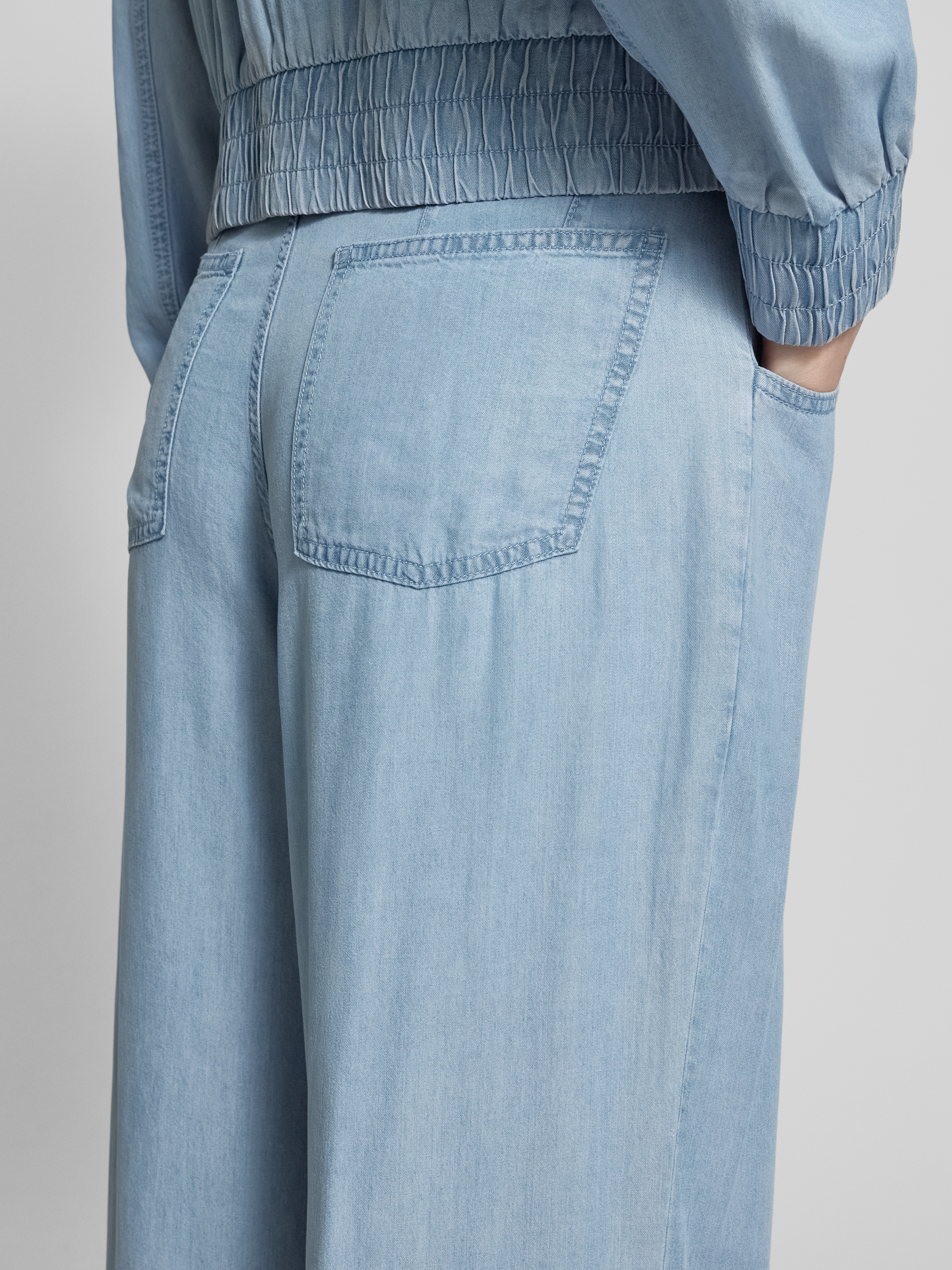 Die Damen Loose Fit Jeans von DKNY aus reinem Lyocell fällt durch ihren lockeren Schnitt angenehm leicht und unkompliziert. Weiche Materialeigenschaften und praktische Eingrifftaschen machen sie vielseitig im Alltag einsetzbar. Durch Gürtelschlaufen lässt sich die Passform individuell gestalten, sodass sie flexibel bleibt.