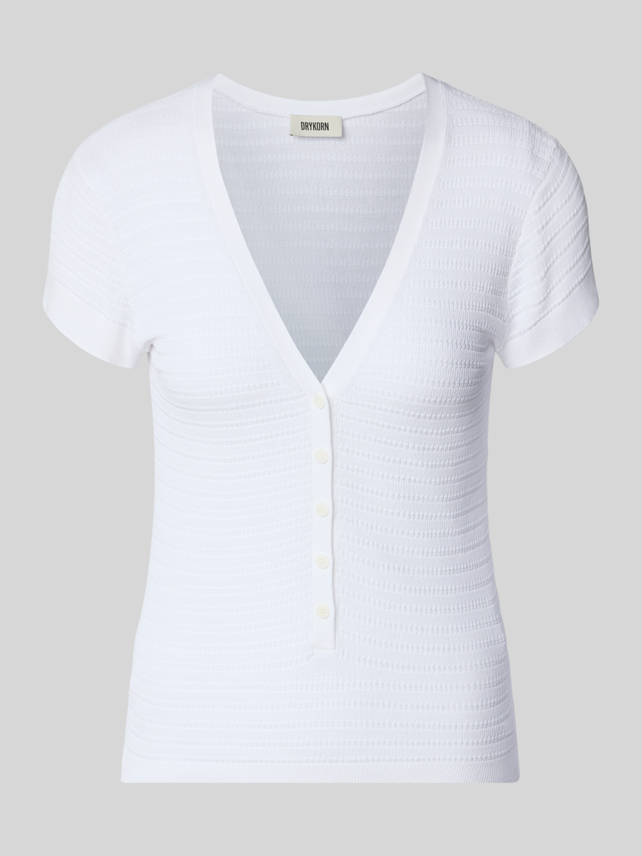 Das Strickshirt 'ALKUNA' von Drykorn zeichnet sich durch seine Verwendung von reiner Baumwolle aus, die für ein angenehmes Tragegefühl sorgt. Der schmale Schnitt und der V-Ausschnitt verleihen dem Shirt eine moderne Silhouette. Ideal für vielseitige Kombinationen im Alltag.