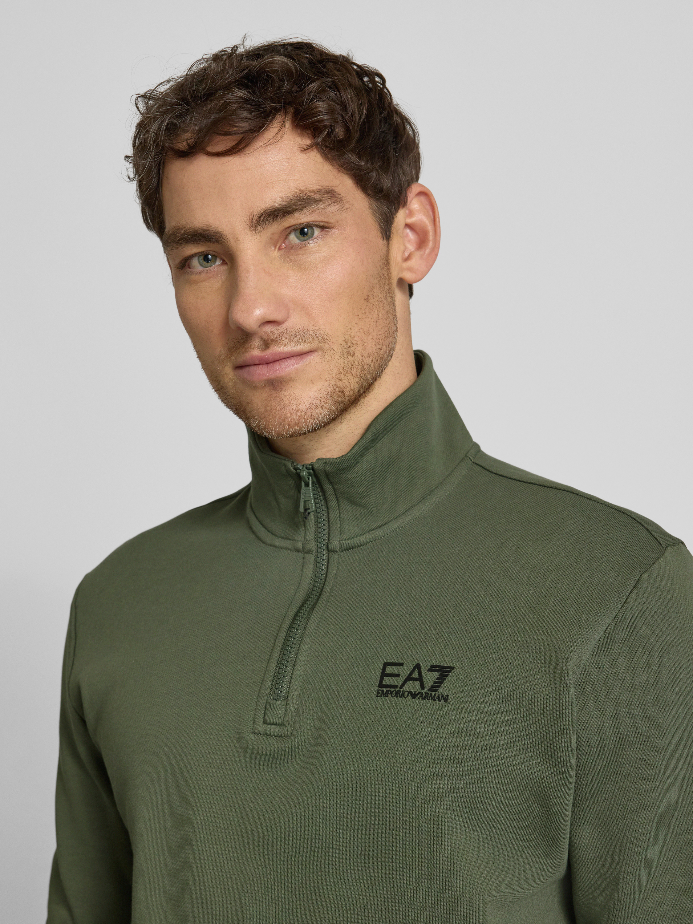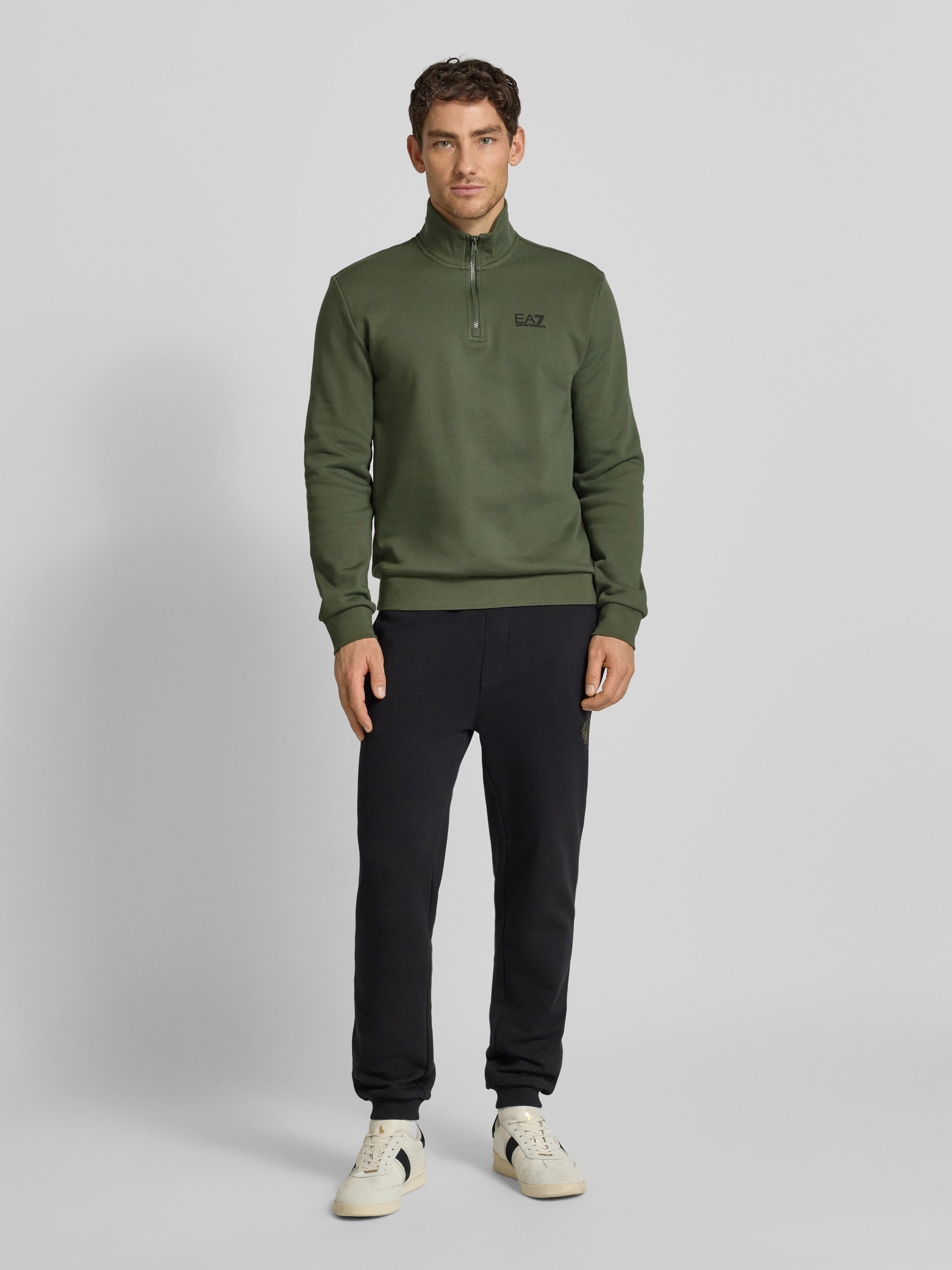 Das Herren Sweatshirt von EA7 Emporio Armani zeigt sich mit Regular Fit und Stehkragen, wodurch eine angenehme Passform entsteht, die Bewegungsfreiheit lässt. Durch den weichen Baumwoll-Mix fühlt sich das Material auf der Haut angenehm an und eignet sich gut für verschiedene Anlässe. Das dezente Logo rundet den sportiven Stil unaufdringlich ab.