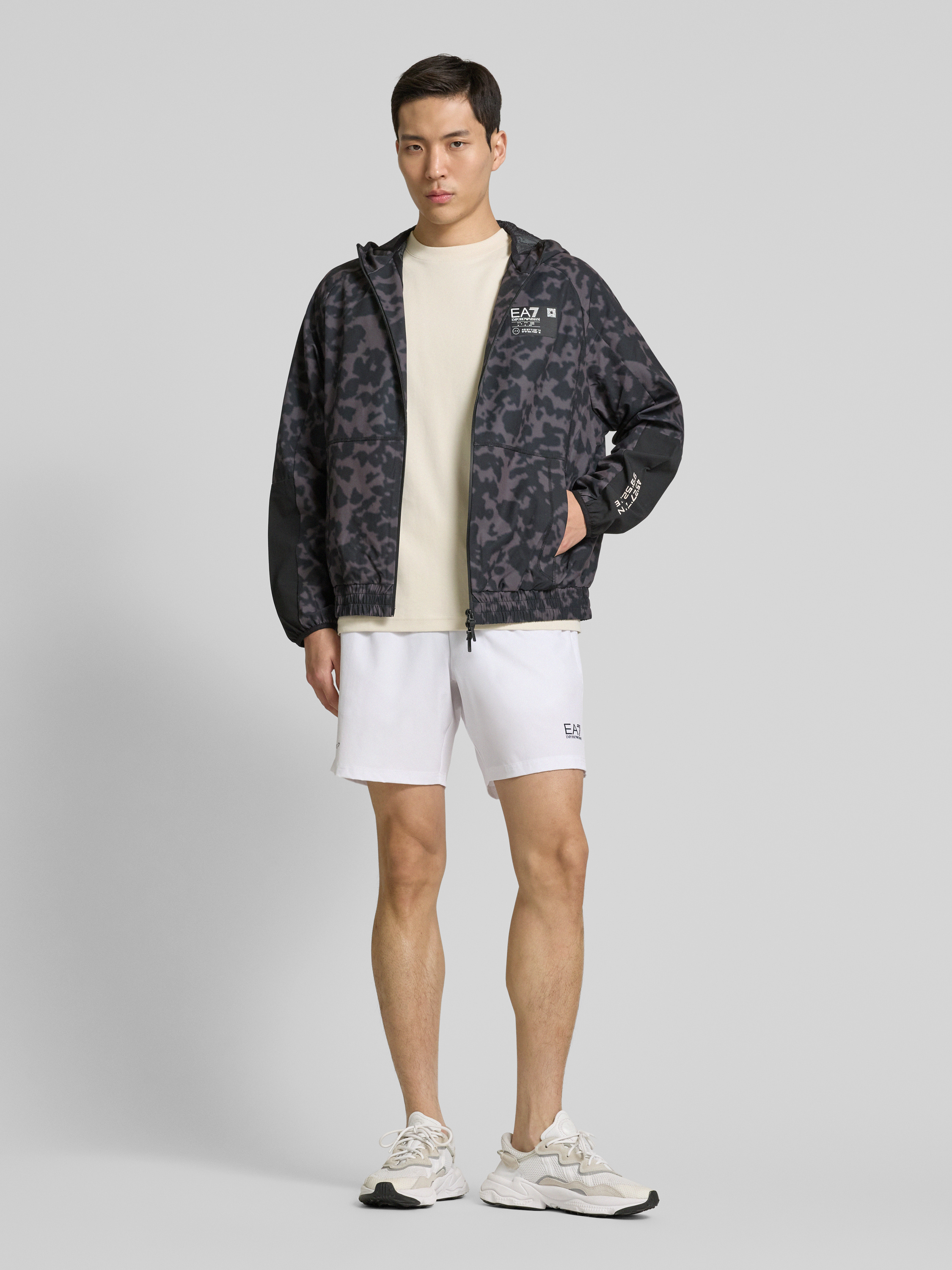 Die EA7 Emporio Armani Sweatshorts bieten durch ihren lockeren Schnitt und den elastischen Bund ein angenehmes Tragegefühl, das Bewegungsfreiheit ermöglicht. Der Material-Mix mit Stretch-Anteil sorgt für zusätzlichen Komfort. Praktische französische Eingrifftaschen runden das Design funktional ab.