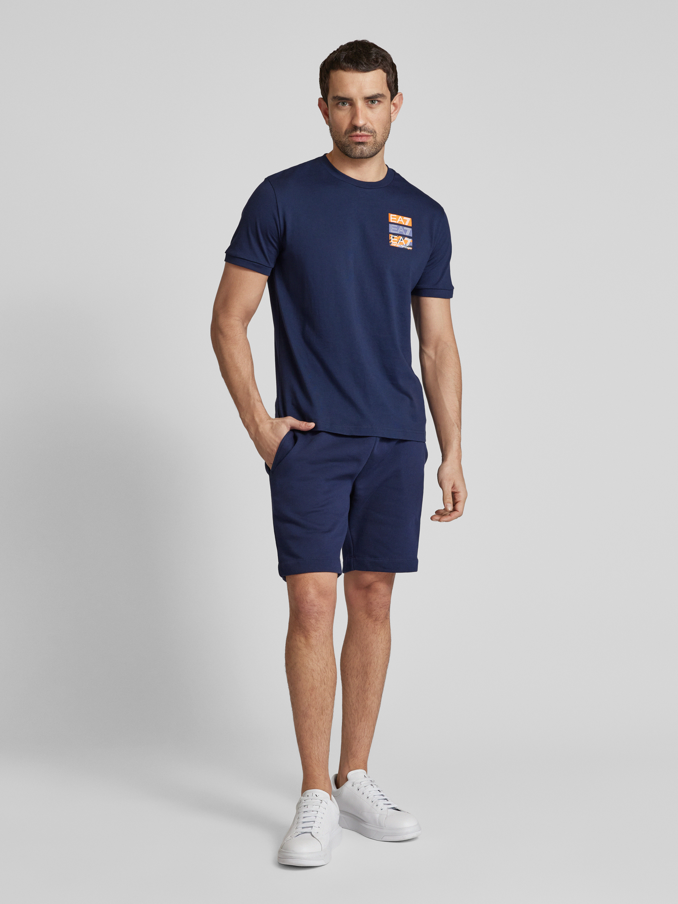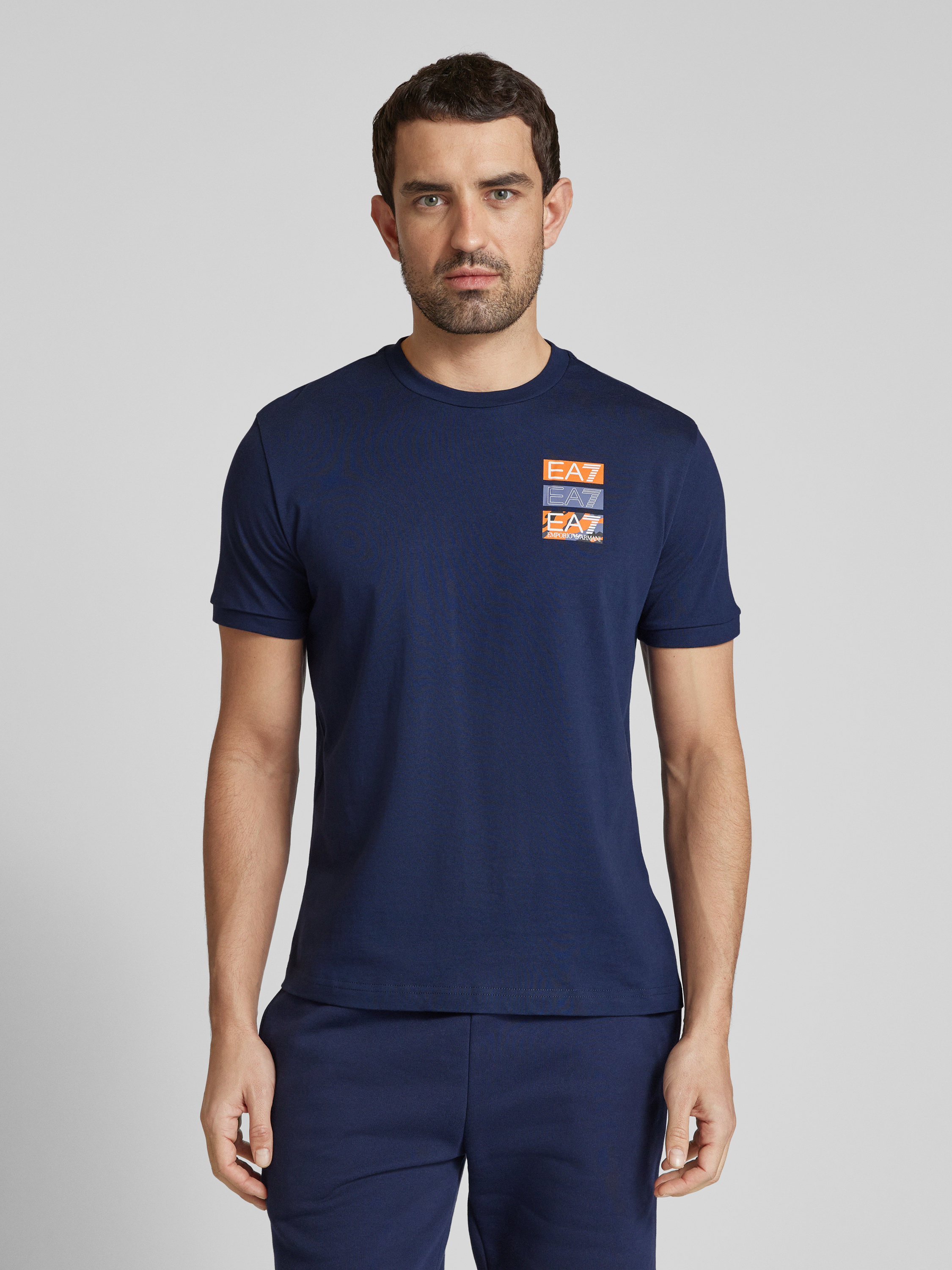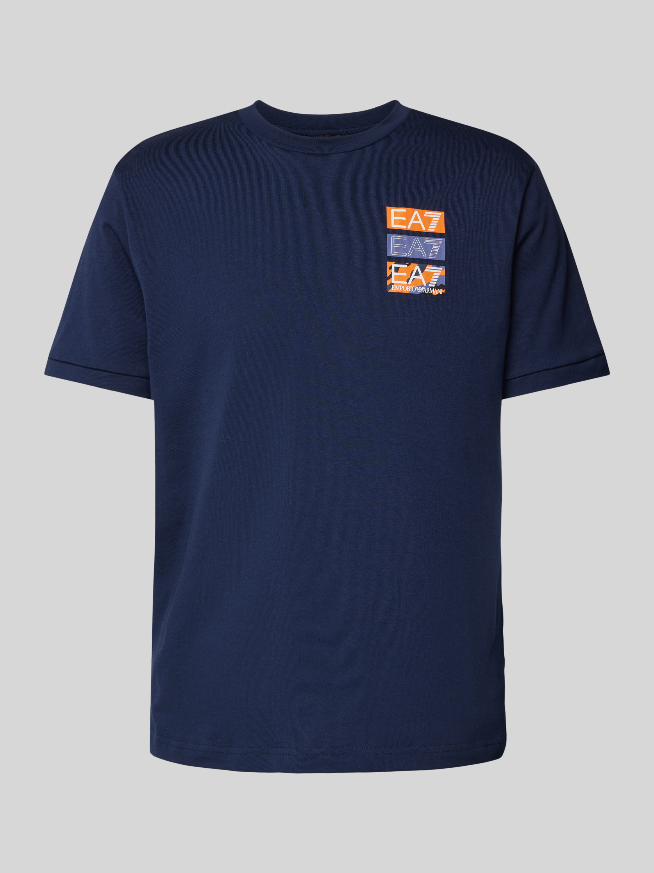 Das T-Shirt von EA7 Emporio Armani, gefertigt aus reiner Baumwolle, bietet durch seinen geraden Schnitt und den Rundhalsausschnitt einen angenehmen Tragekomfort. Der dezente Label-Print verleiht dem Oberteil eine moderne Note, die sich mühelos in jede Garderobe integrieren lässt. Ideal für vielseitige Stylingmöglichkeiten.