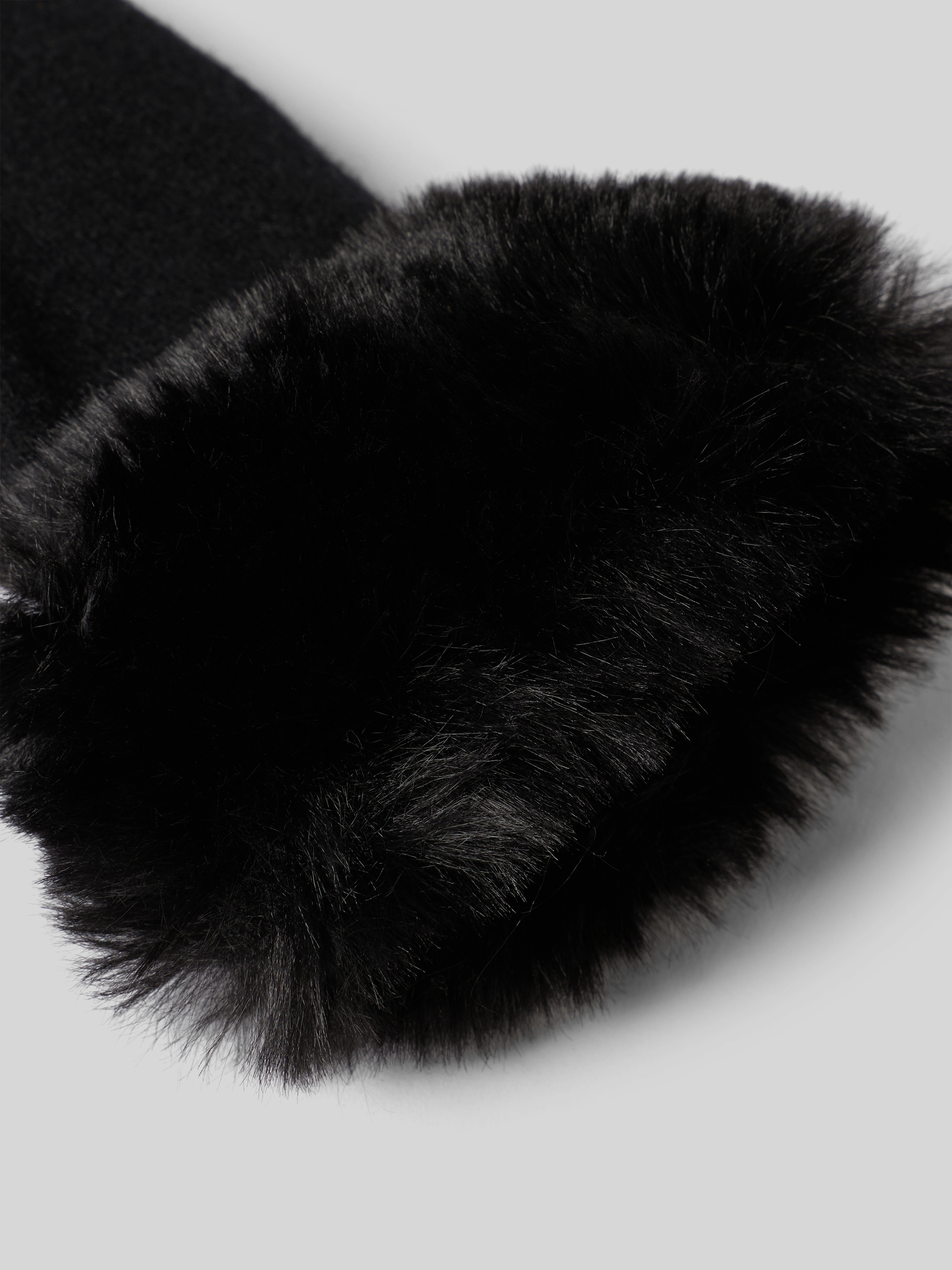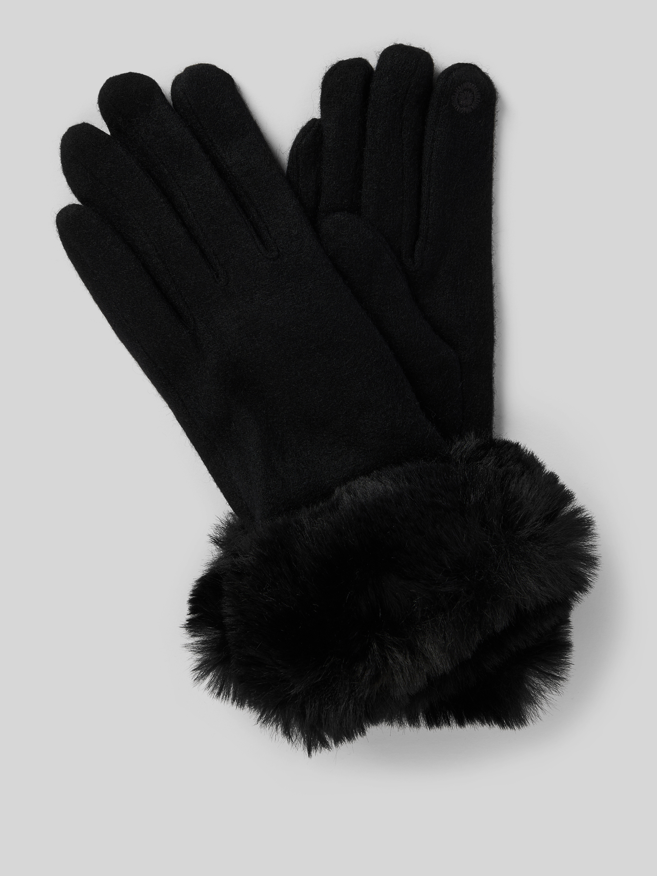 Die Damen Handschuhe von EEM im Slim Fit schmiegen sich angenehm an die Hände und zeigen sich in einer modernen Strick-Optik. Durch den Woll-Mix fühlt sich das Material weich an und unterstützt ein wohliges Tragegefühl an kühlen Tagen. Ein Kunstfellbesatz setzt einen dezenten Akzent und rundet das Design harmonisch ab.
