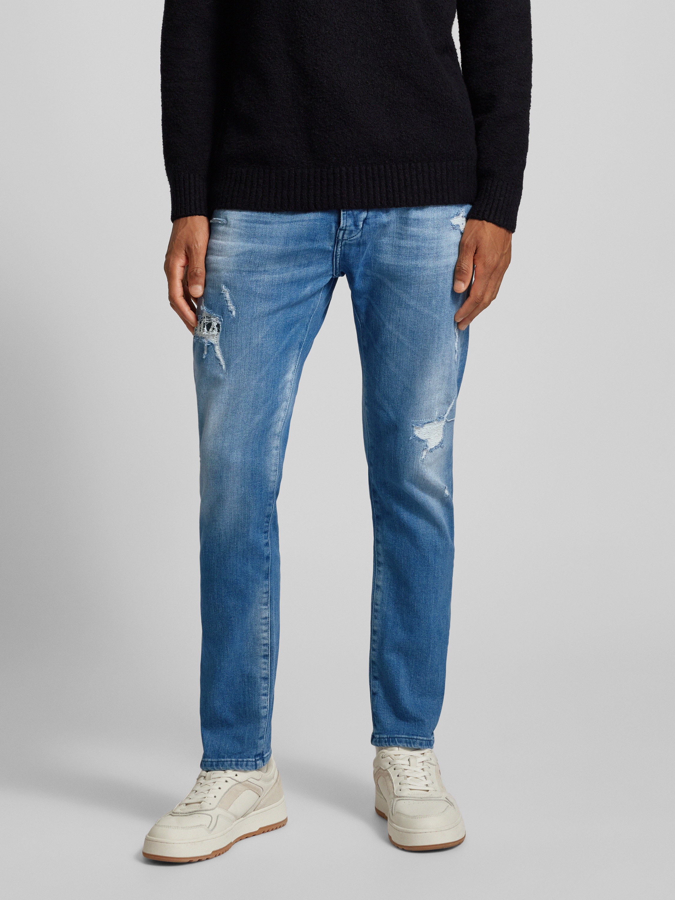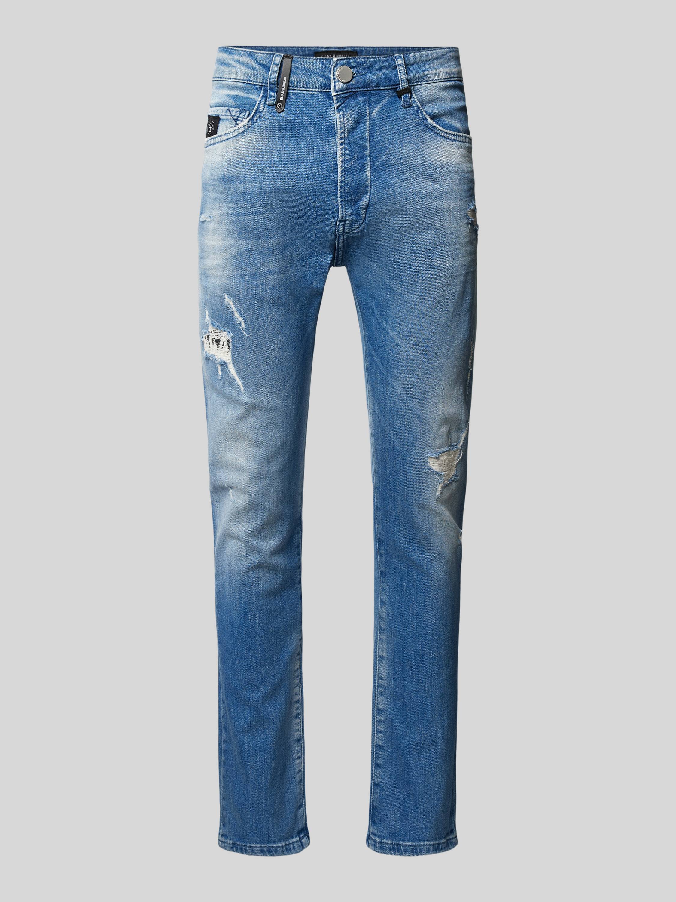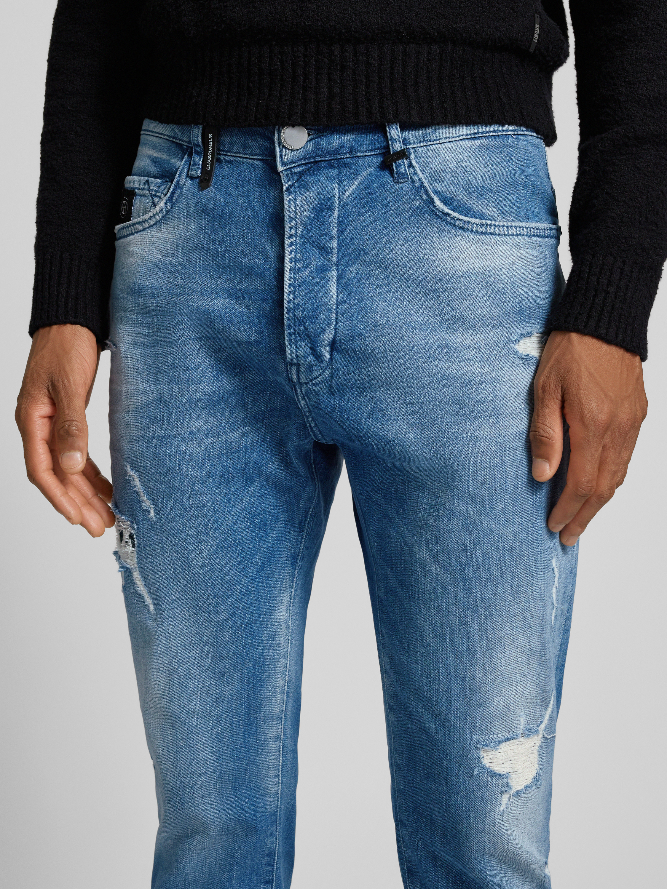 ELIAS RUMELISComfort Fit Mid Rise Jeans im Destroyed-Look Modell 'Fredo' in hellblau