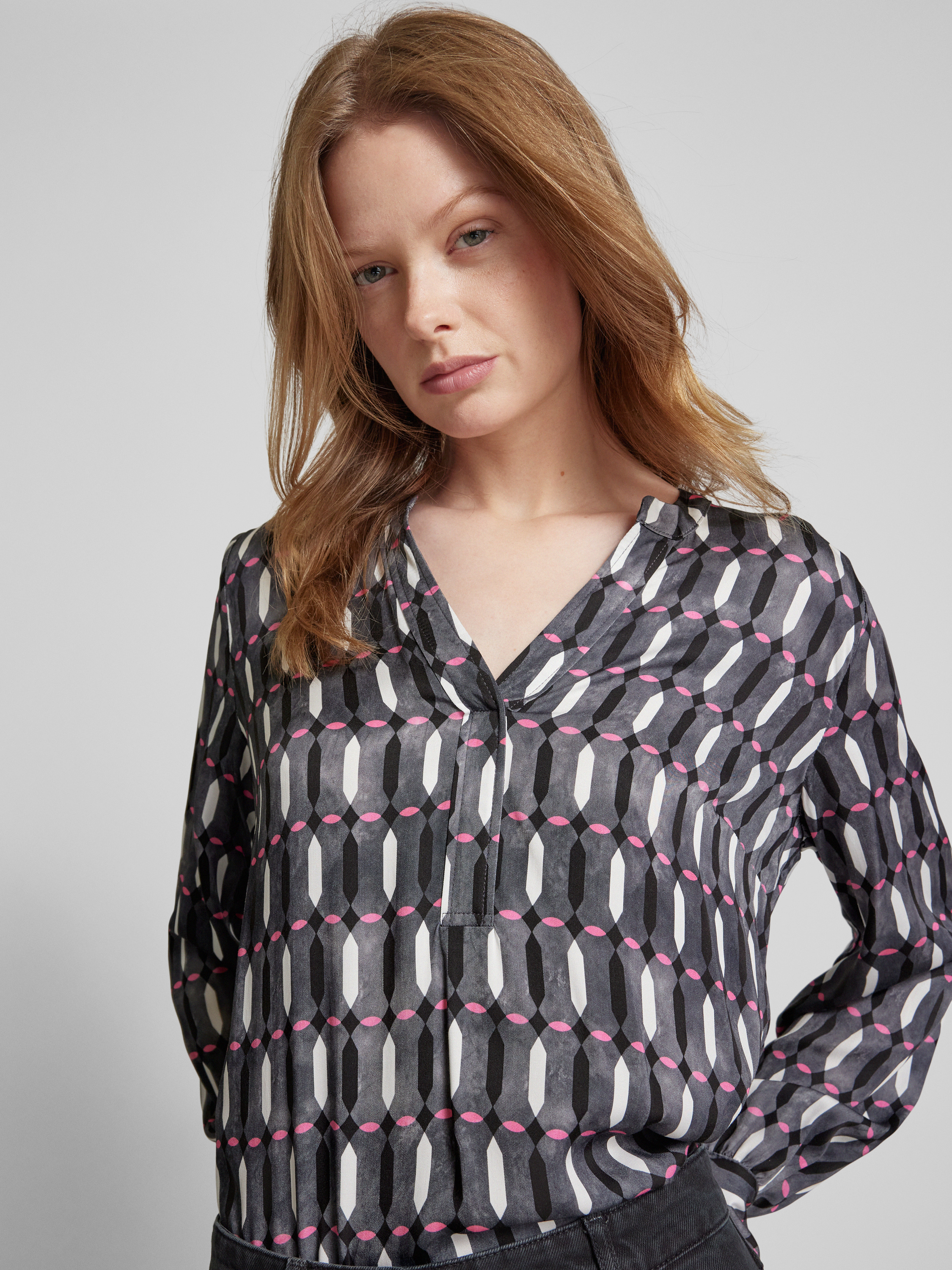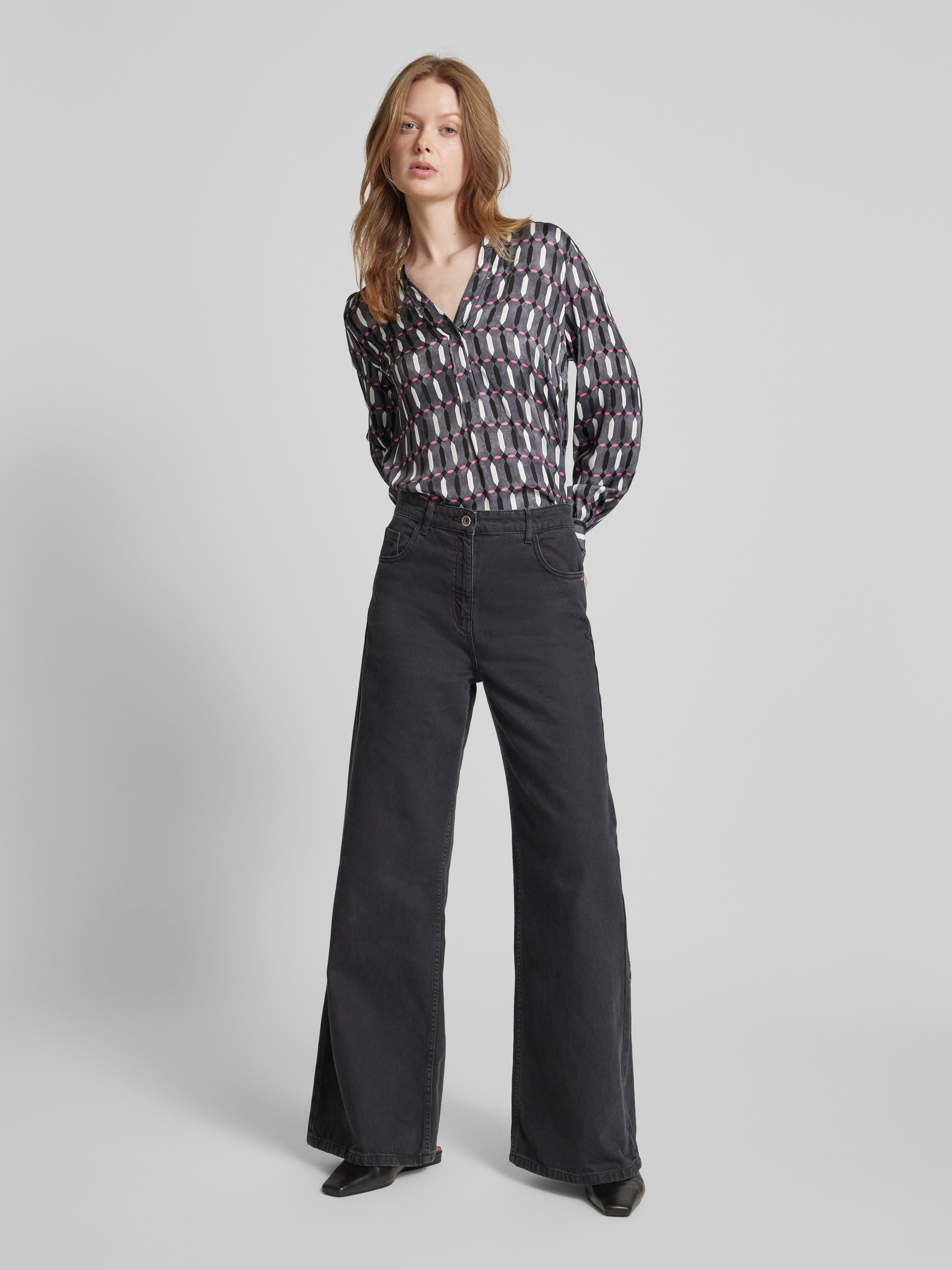 Die Bluse von Emily Van den Bergh, gefertigt aus reiner Viskose, kombiniert einen geraden Schnitt mit einem eleganten Stehkragen und verspielten Rüschen. Dank der leichten Stoffqualität fällt sie angenehm und sorgt für ein luftiges Tragegefühl, das vielseitig im Alltag einsetzbar ist.