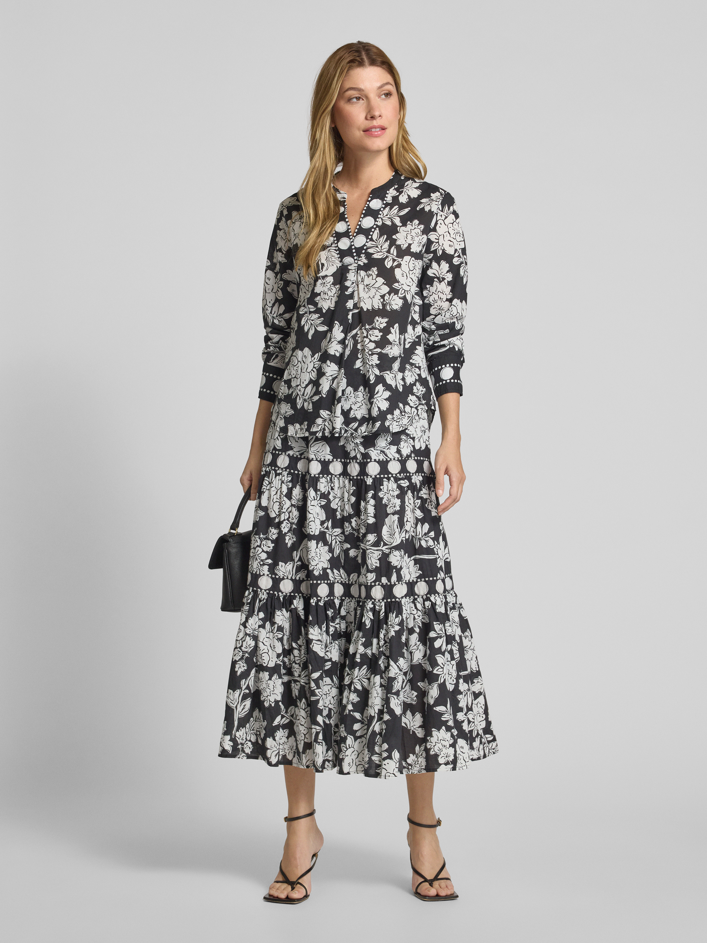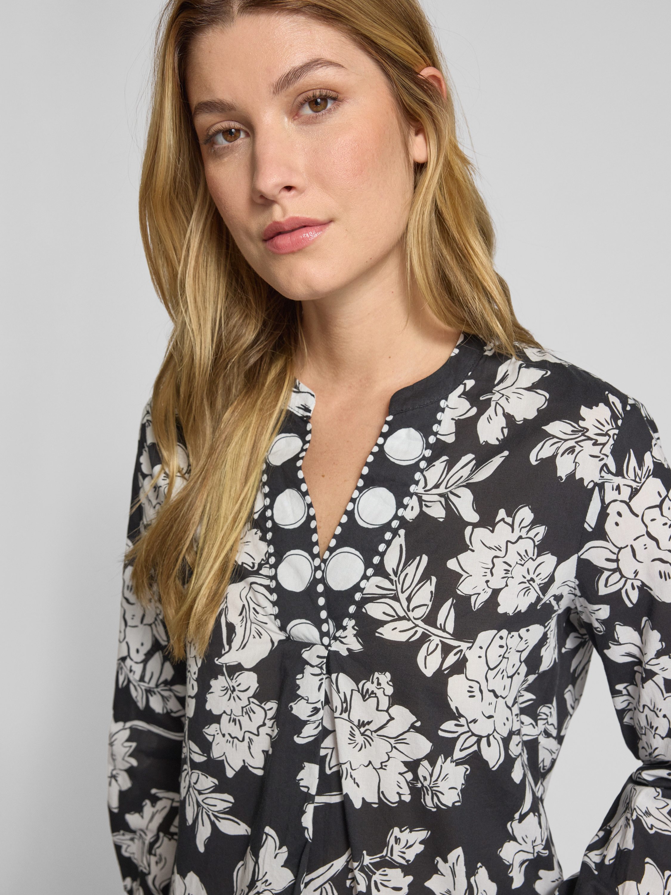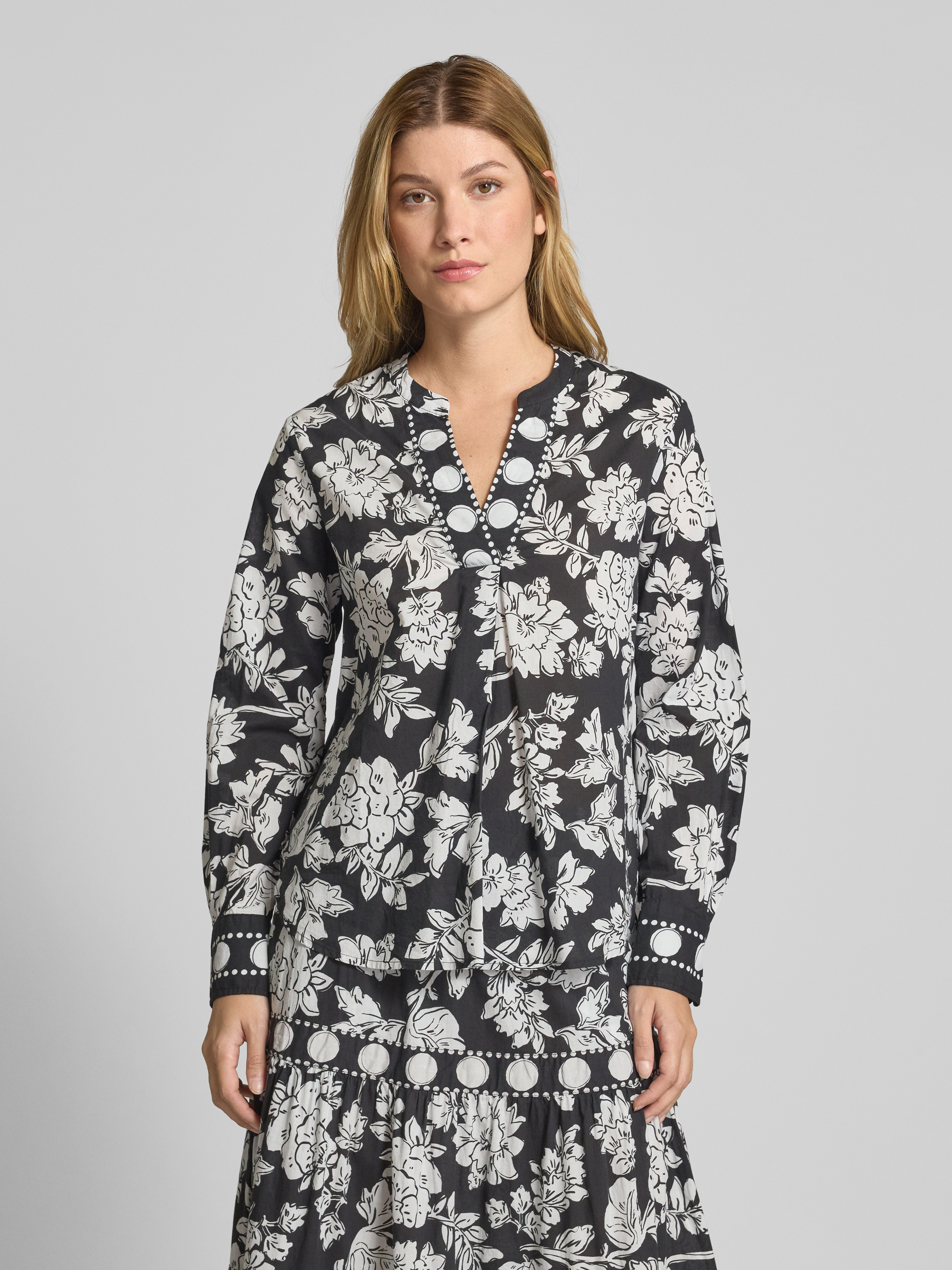 Das Blusenshirt von Emily Van den Bergh kombiniert reinen Baumwollkomfort mit einem lockeren Schnitt, der Bewegungsfreiheit fördert. Der V-Ausschnitt verleiht dem Design eine elegante Note. Diese Kombination eignet sich ideal für den Alltag, da sie mühelos stilvoll und bequem ist.