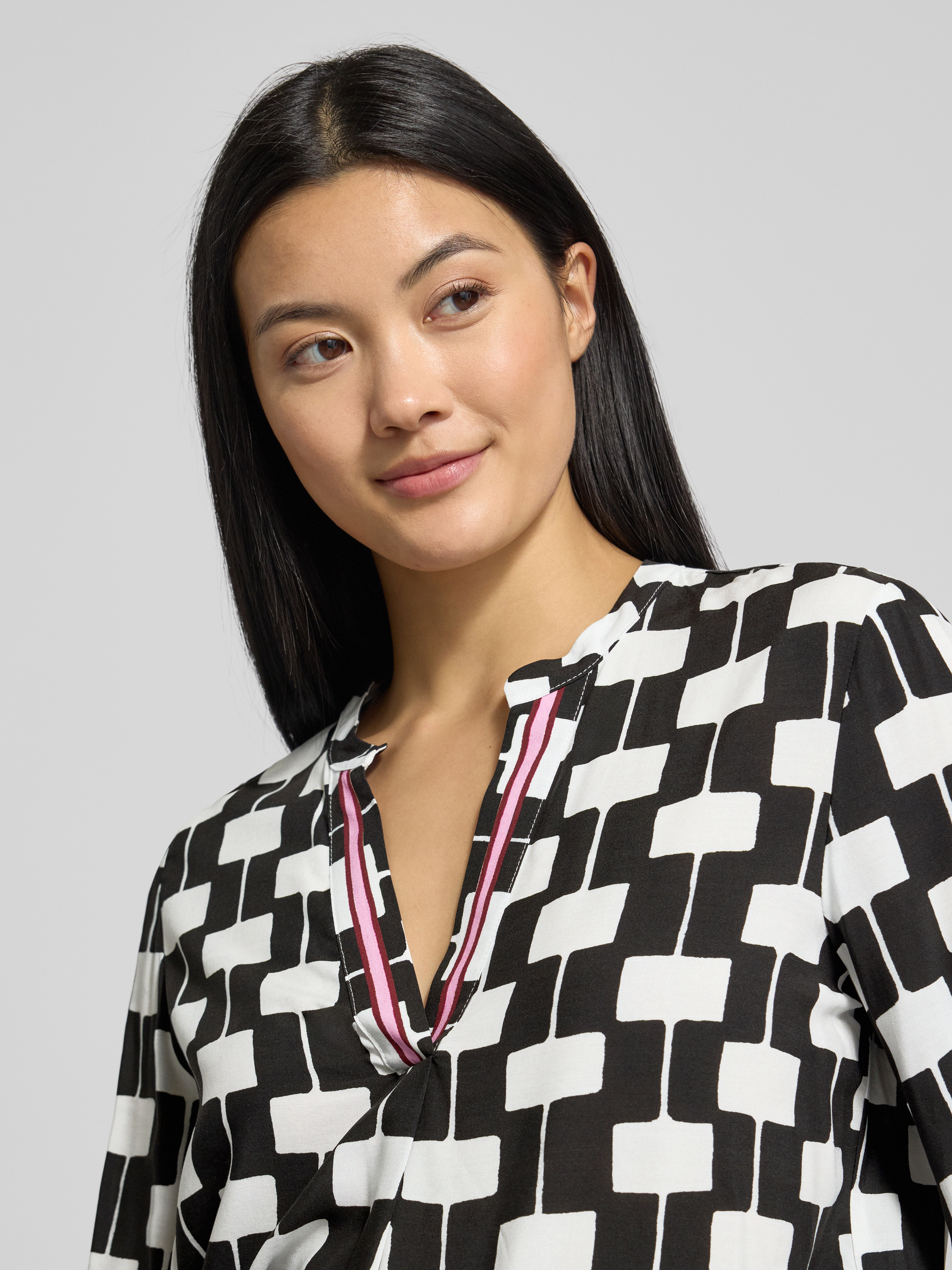 Das Blusenshirt von Emily Van den Bergh fällt durch seinen lockeren Schnitt angenehm leicht und sorgt mit dem V-Ausschnitt für eine luftige Optik. Die reine Viskose liegt weich auf der Haut und unterstützt ein entspanntes Tragegefühl. Besonders vielseitig eignet sich das Modell für unterschiedlichste Gelegenheiten.