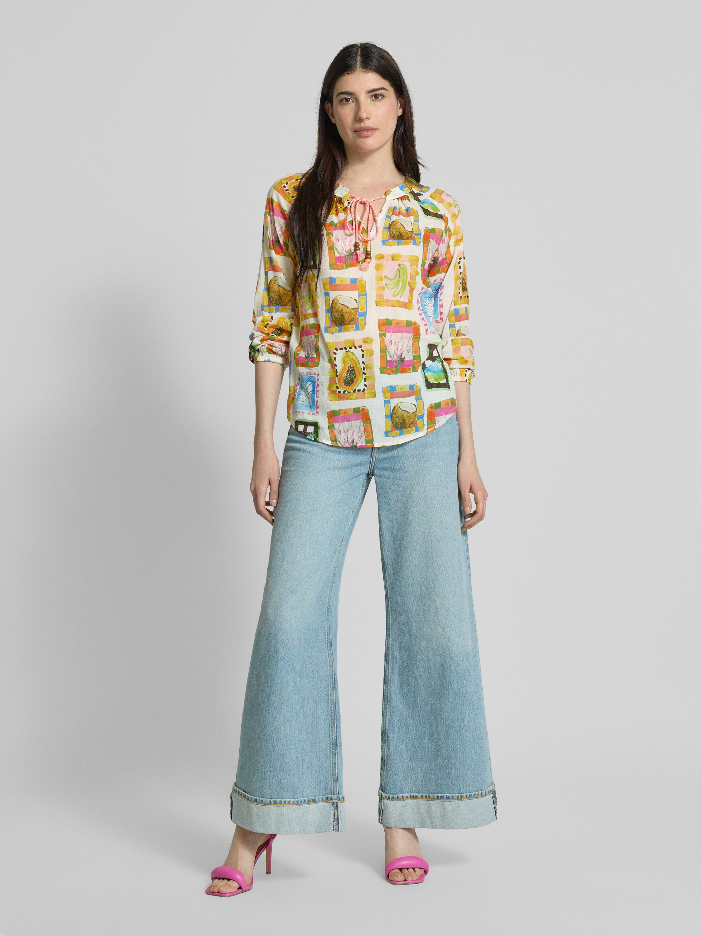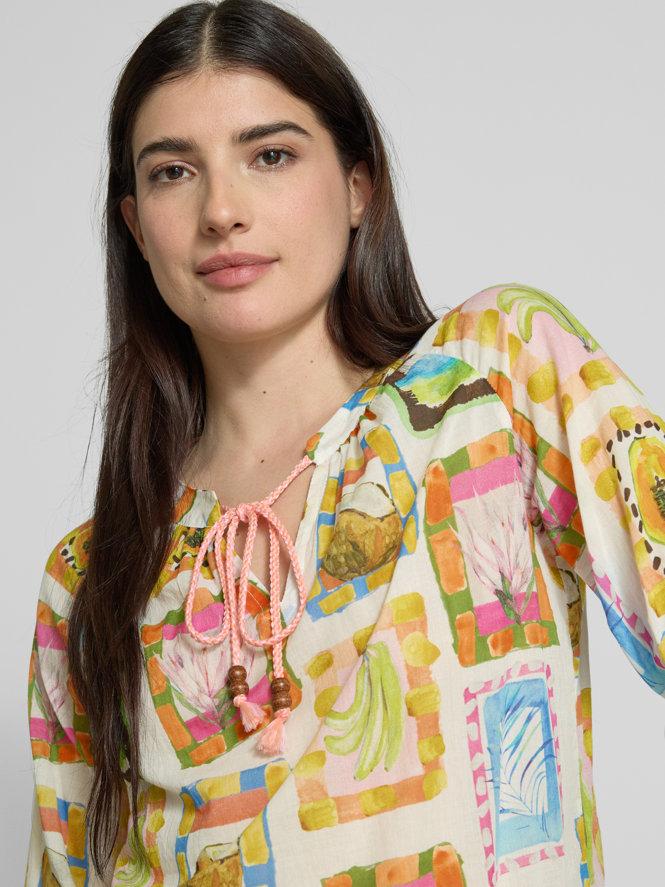 Die Emily Van den Bergh Bluse präsentiert sich in einem Regular Fit, der eine angenehme Passform bietet. Gefertigt aus reiner Baumwolle, sorgt sie für ein komfortables Tragegefühl. Der Rundhalsausschnitt zum Binden verleiht dem Modell eine vielseitige Note für verschiedene Anlässe.