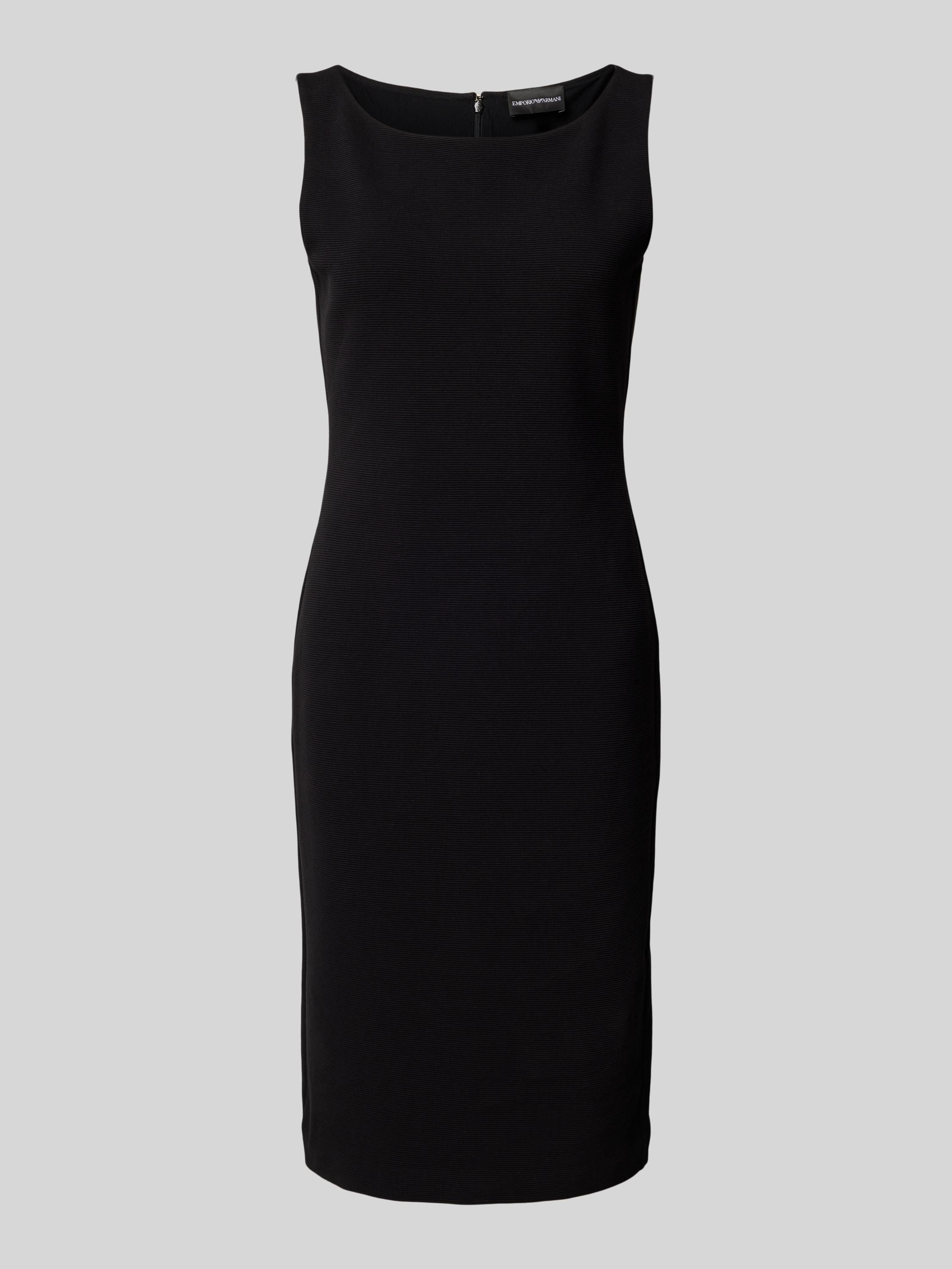 Das Emporio Armani Kleid in knielanger Form überzeugt durch seinen körpernahen Schnitt und das ansprechende Strukturmuster. Der Baumwoll-Elasthan-Mix sorgt für ein angenehmes Tragegefühl. Ein Rundhalsausschnitt rundet das Design ab und verleiht ihm eine zeitgemäße Eleganz.