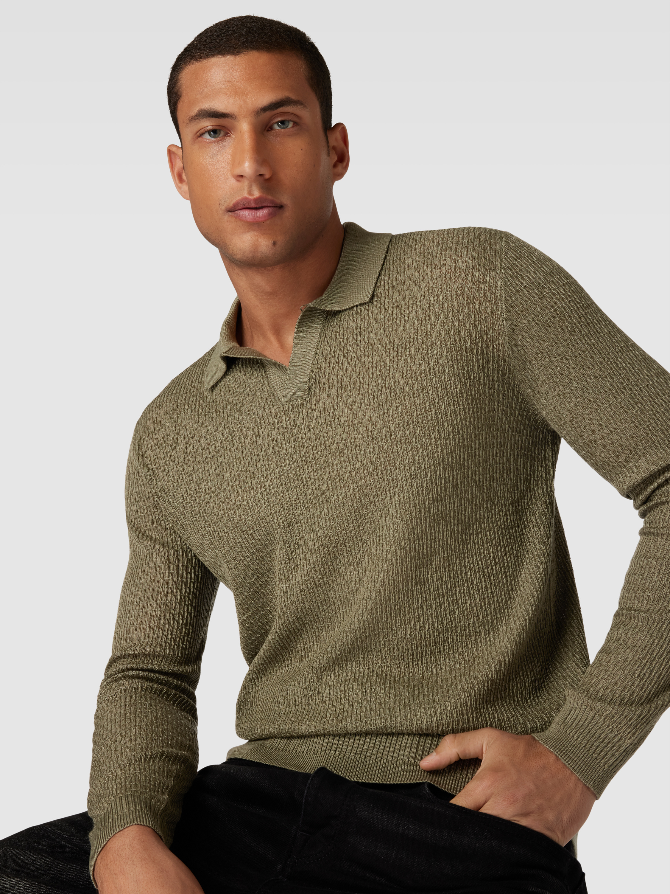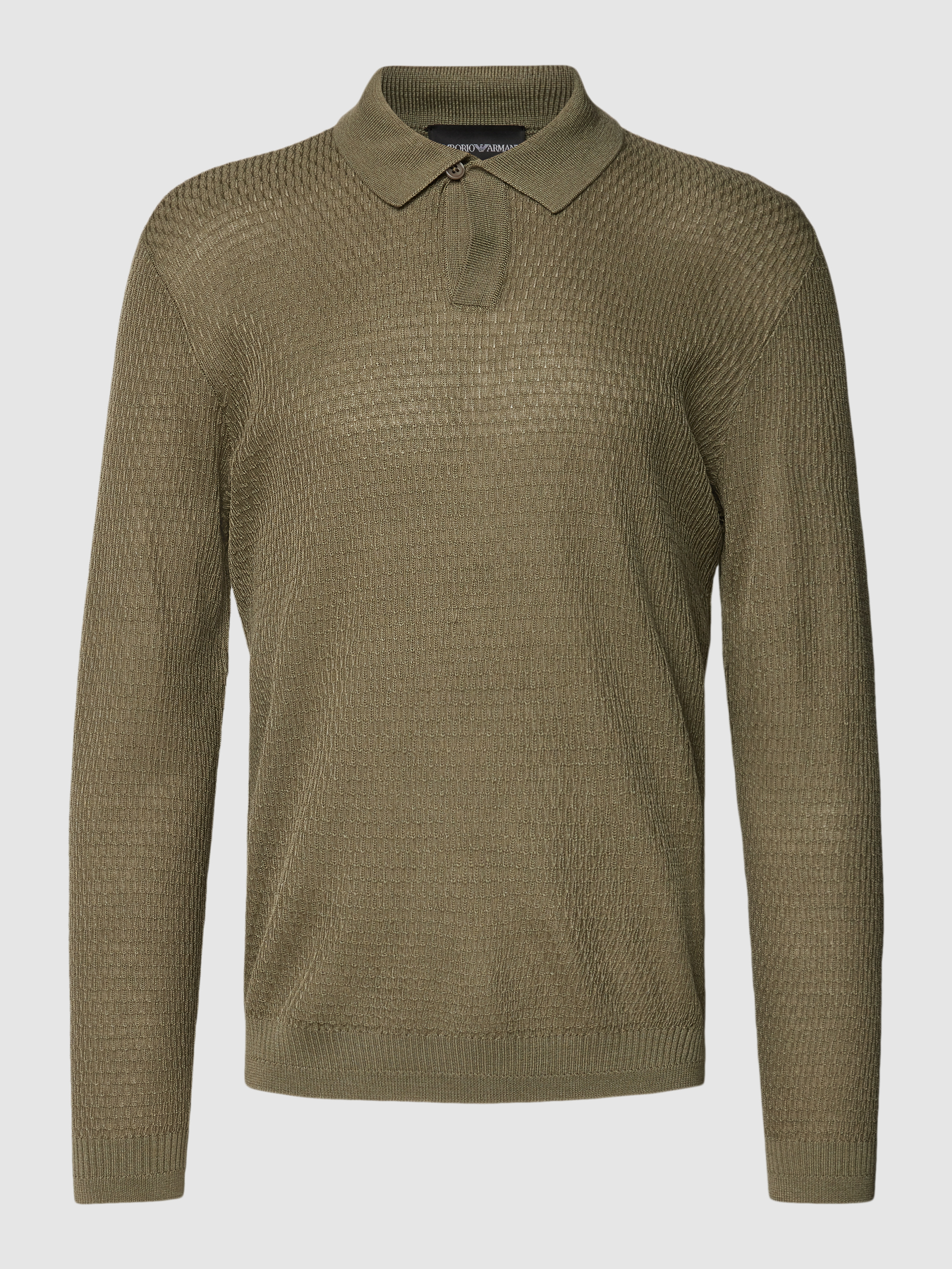 Das Herren Longsleeve von Emporio Armani fällt durch den lockeren Schnitt und den klassischen Polokragen auf. Dank des Woll-Anteils fühlt sich das Oberteil angenehm auf der Haut an, während das dezente Strukturmuster für eine abwechslungsreiche Optik sorgt. So eignet sich das Longsleeve mit Polokragen besonders für entspannte Alltagsmomente.