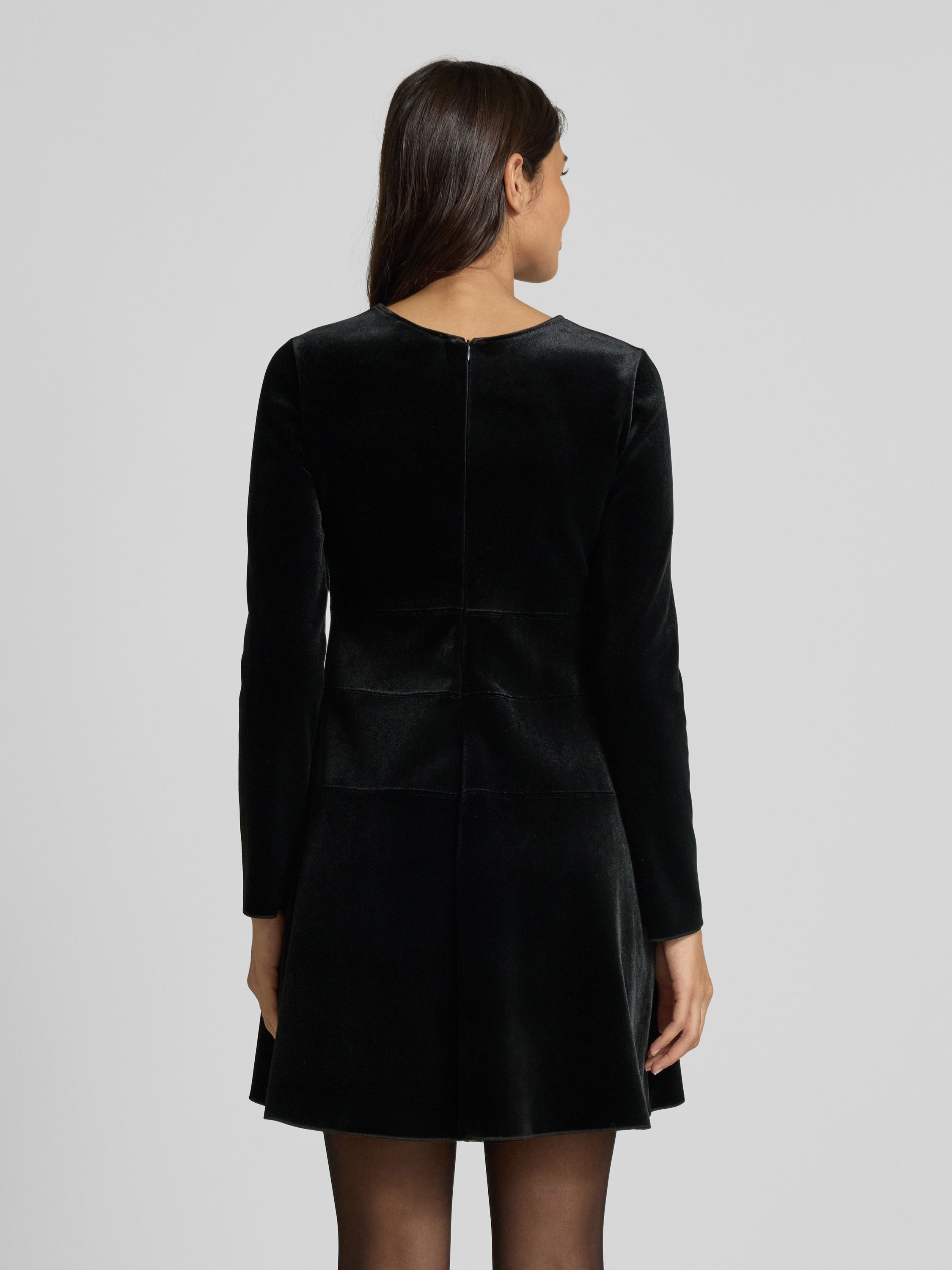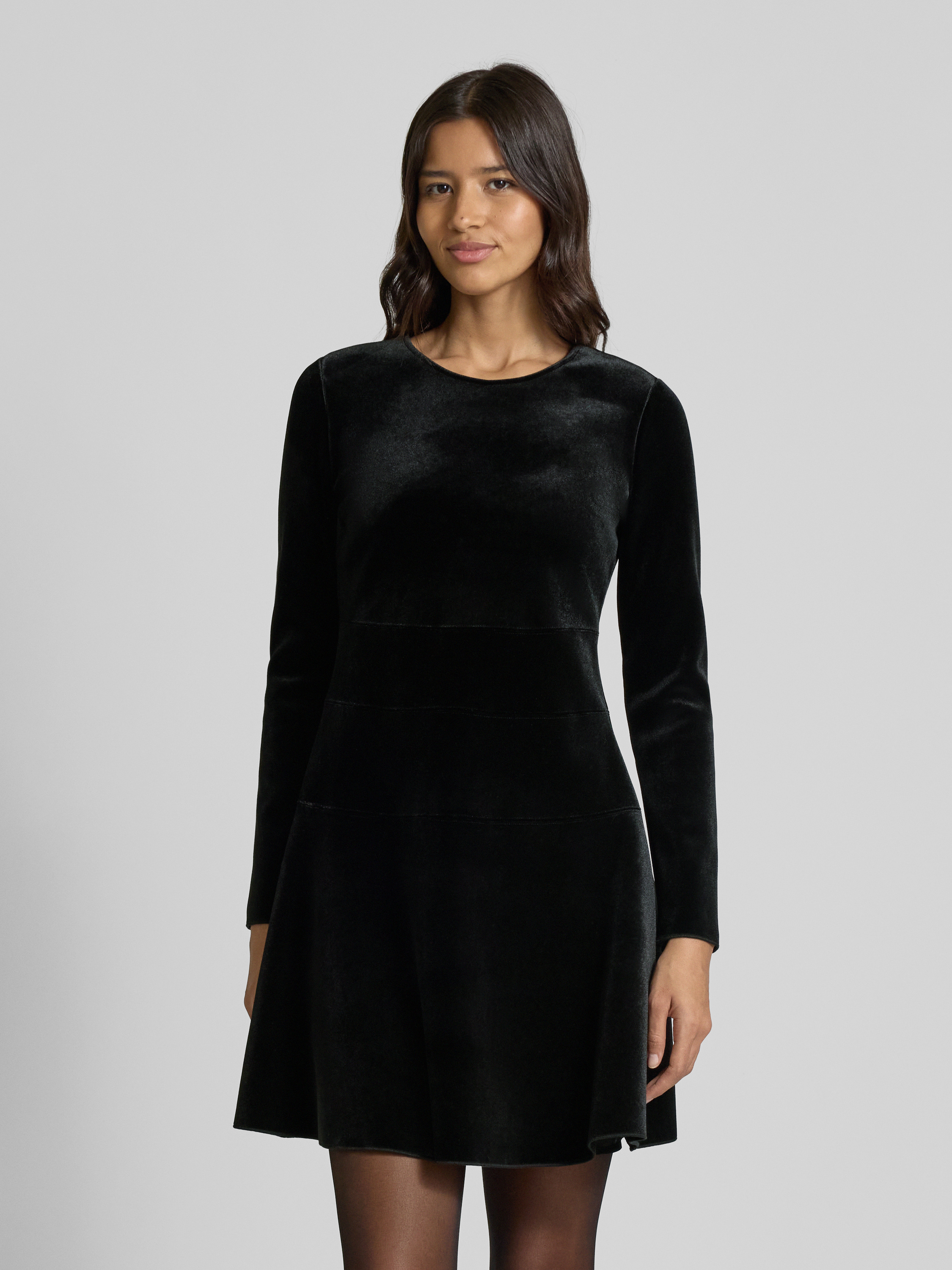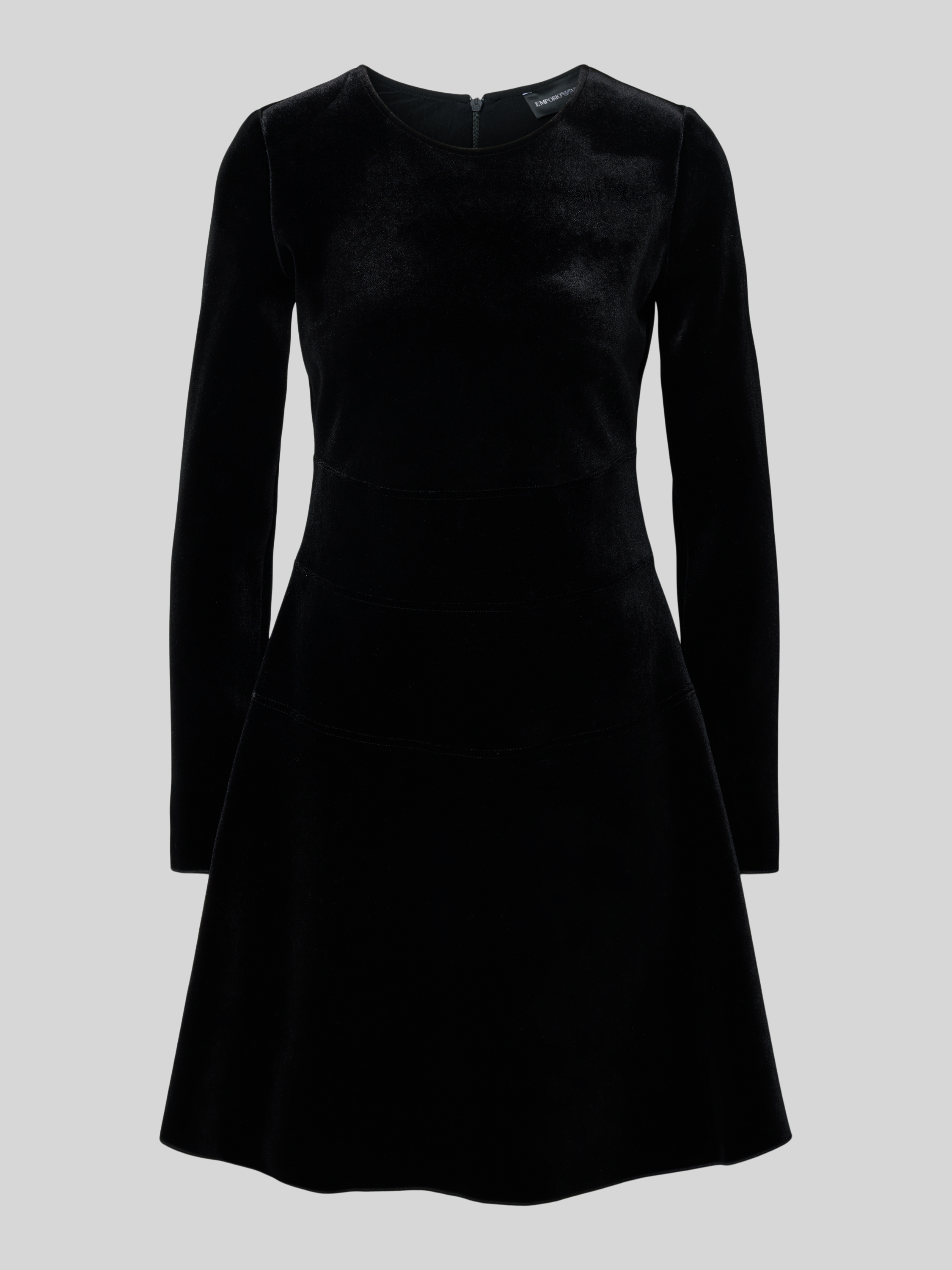 Das Minikleid von Emporio Armani verbindet einen taillierten Schnitt mit angenehm weichem Samt, wodurch eine konturierte Silhouette entsteht. Durch den Rundhalsausschnitt wirkt das Design dezent und vielseitig, sodass man es unkompliziert kombinieren kann. Die langen Ärmel eignen sich besonders für kühlere Tage.