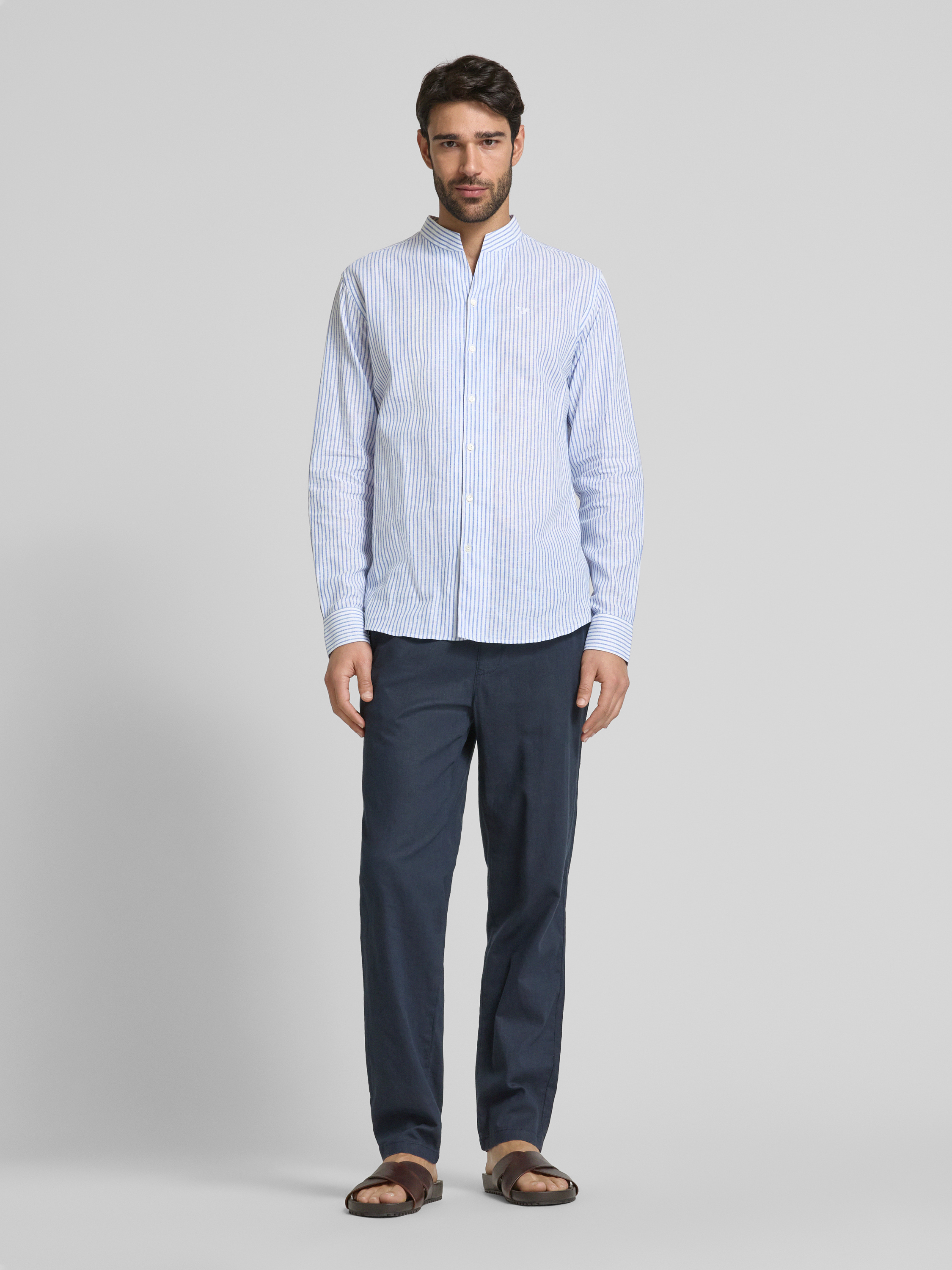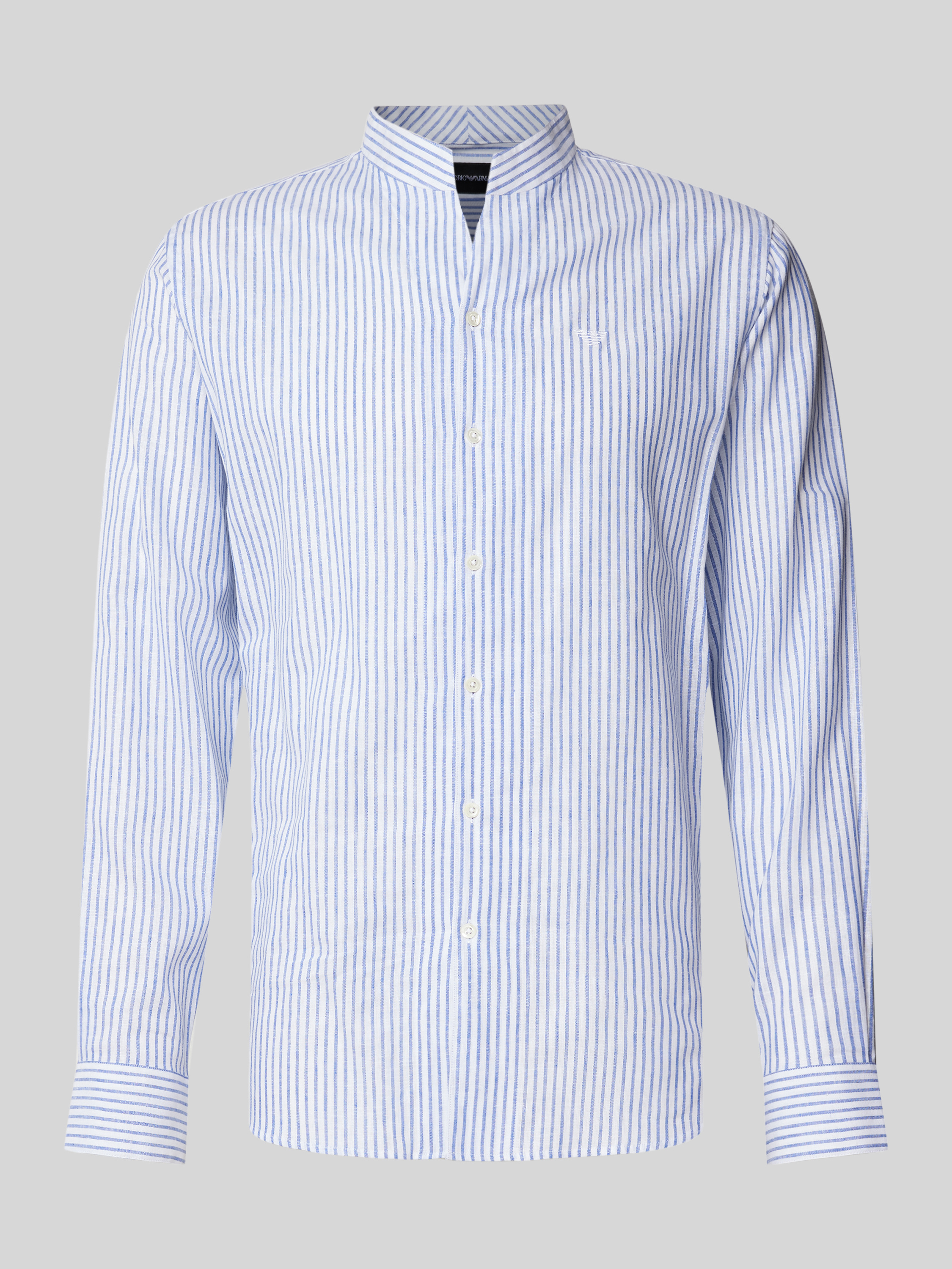 Emporio ArmaniRegular Fit Freizeithemd aus Leinen-Baumwoll-Mix in hellblau