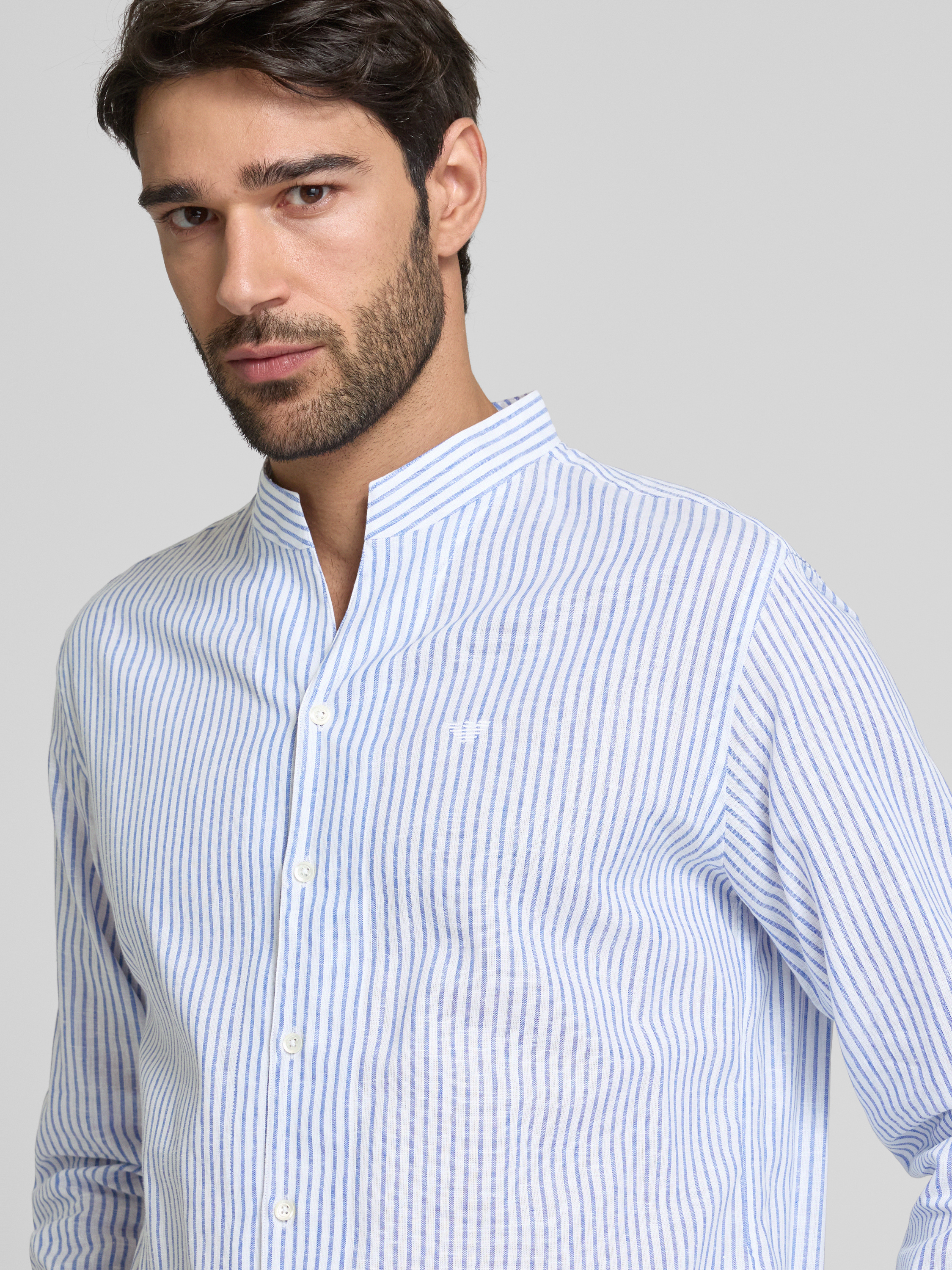 Das Herren Freizeithemd von Emporio Armani vereint die Leichtigkeit von Leinen mit der Weichheit von Baumwolle und eignet sich ideal für entspannte Tage. Der Regular Fit und der stilvolle Stehkragen sorgen für ein komfortables Tragegefühl und eine lässige Ausstrahlung. Die dezente Knopfleiste rundet das klassische Design ab.