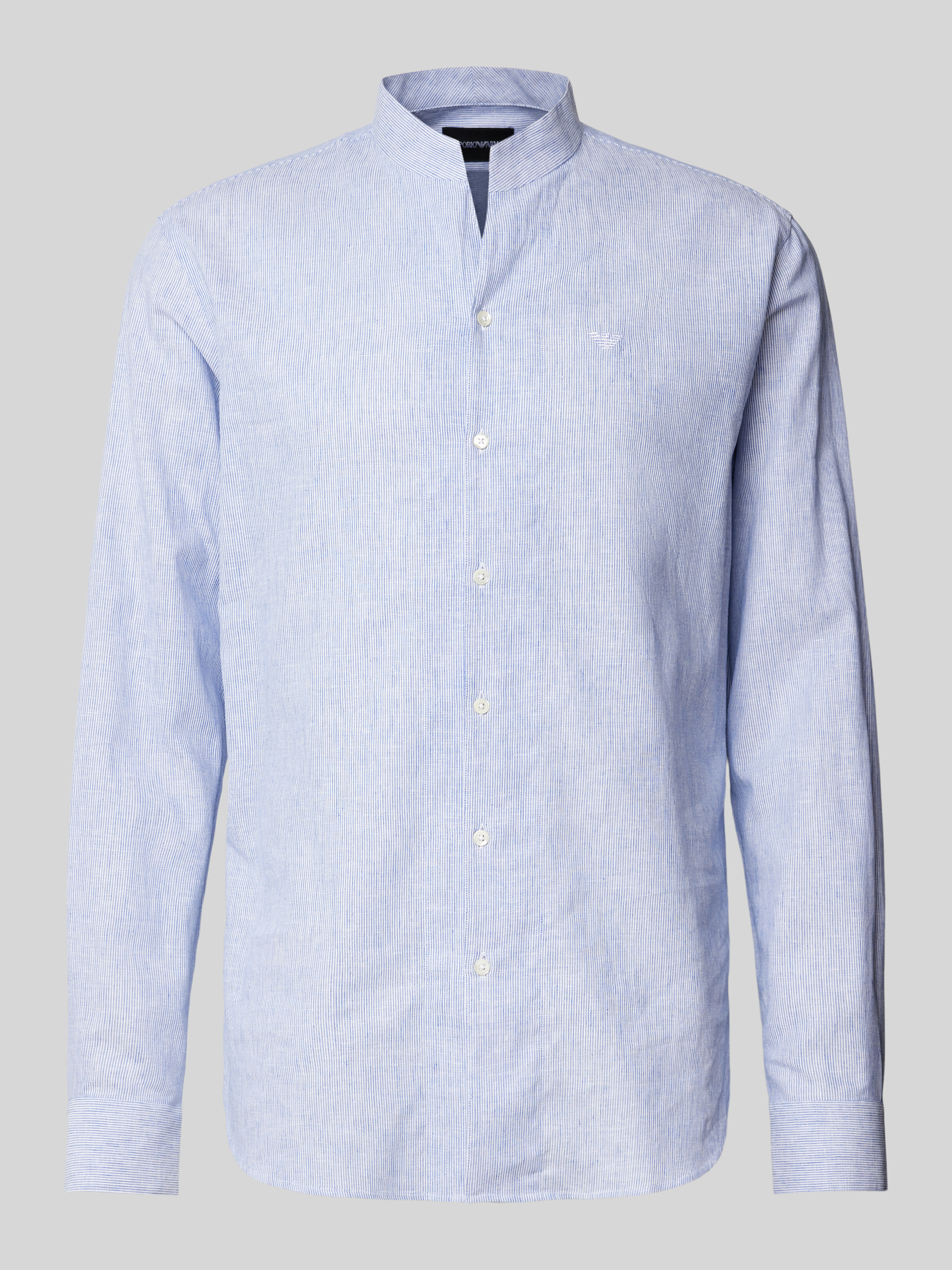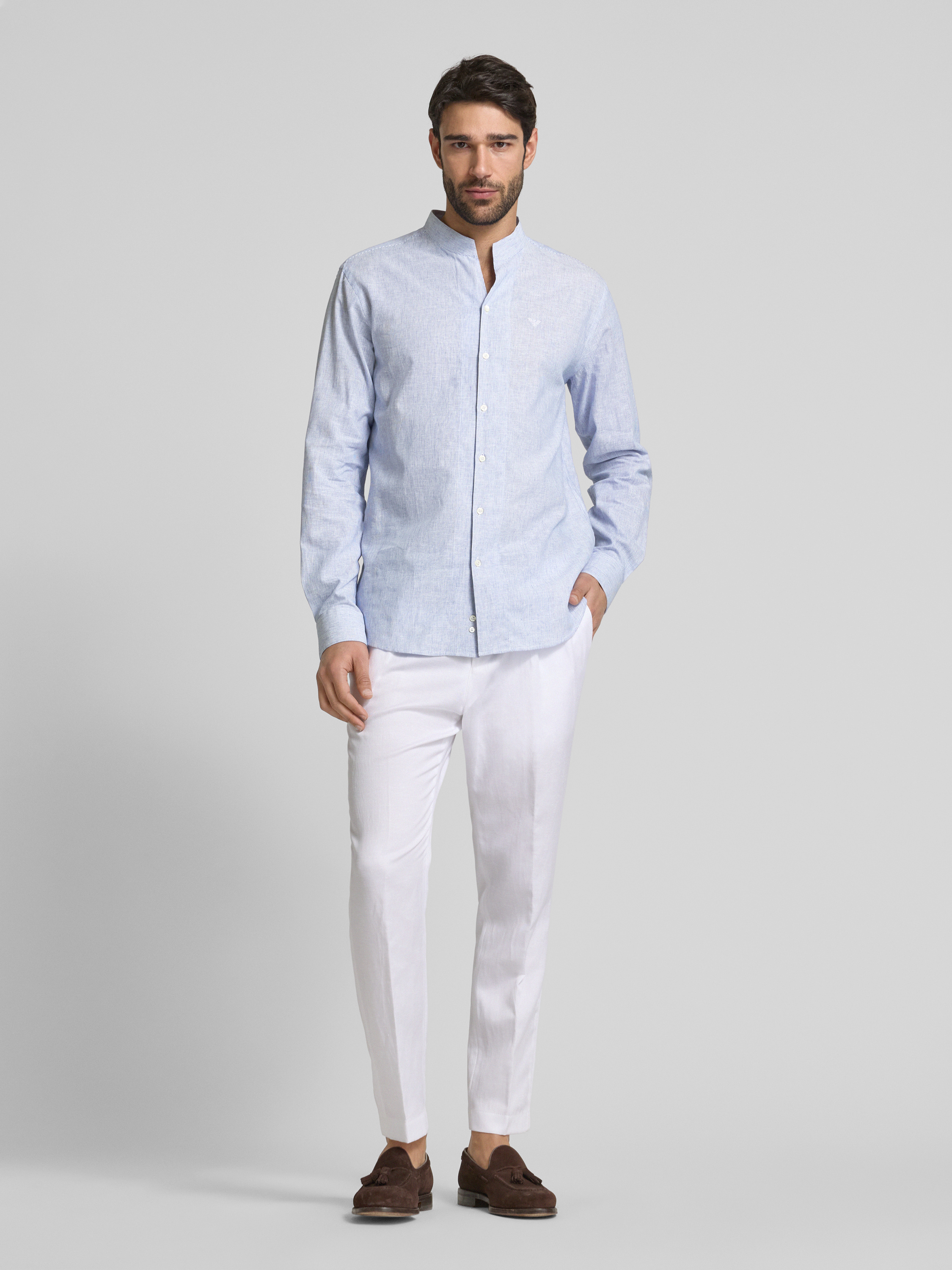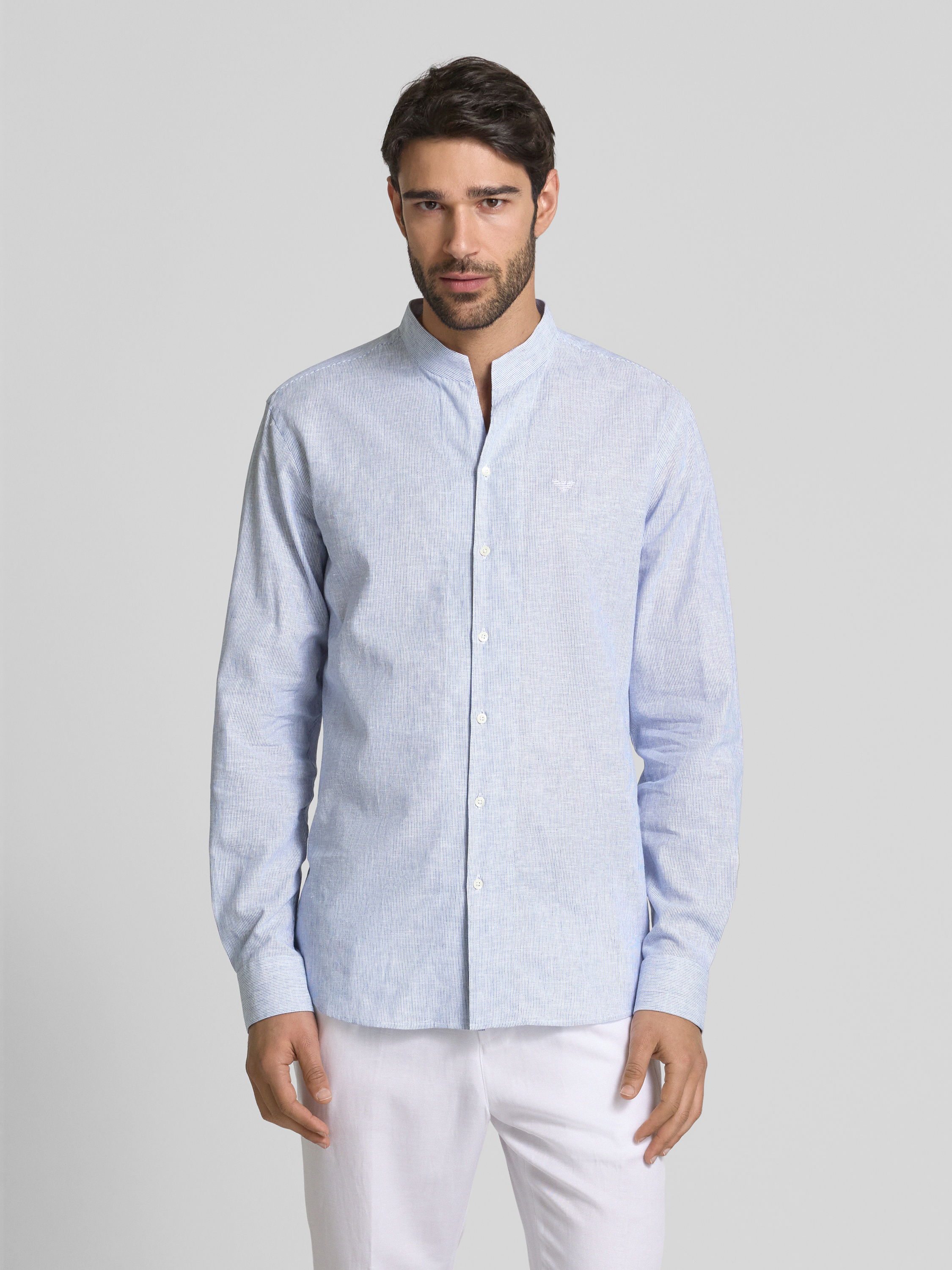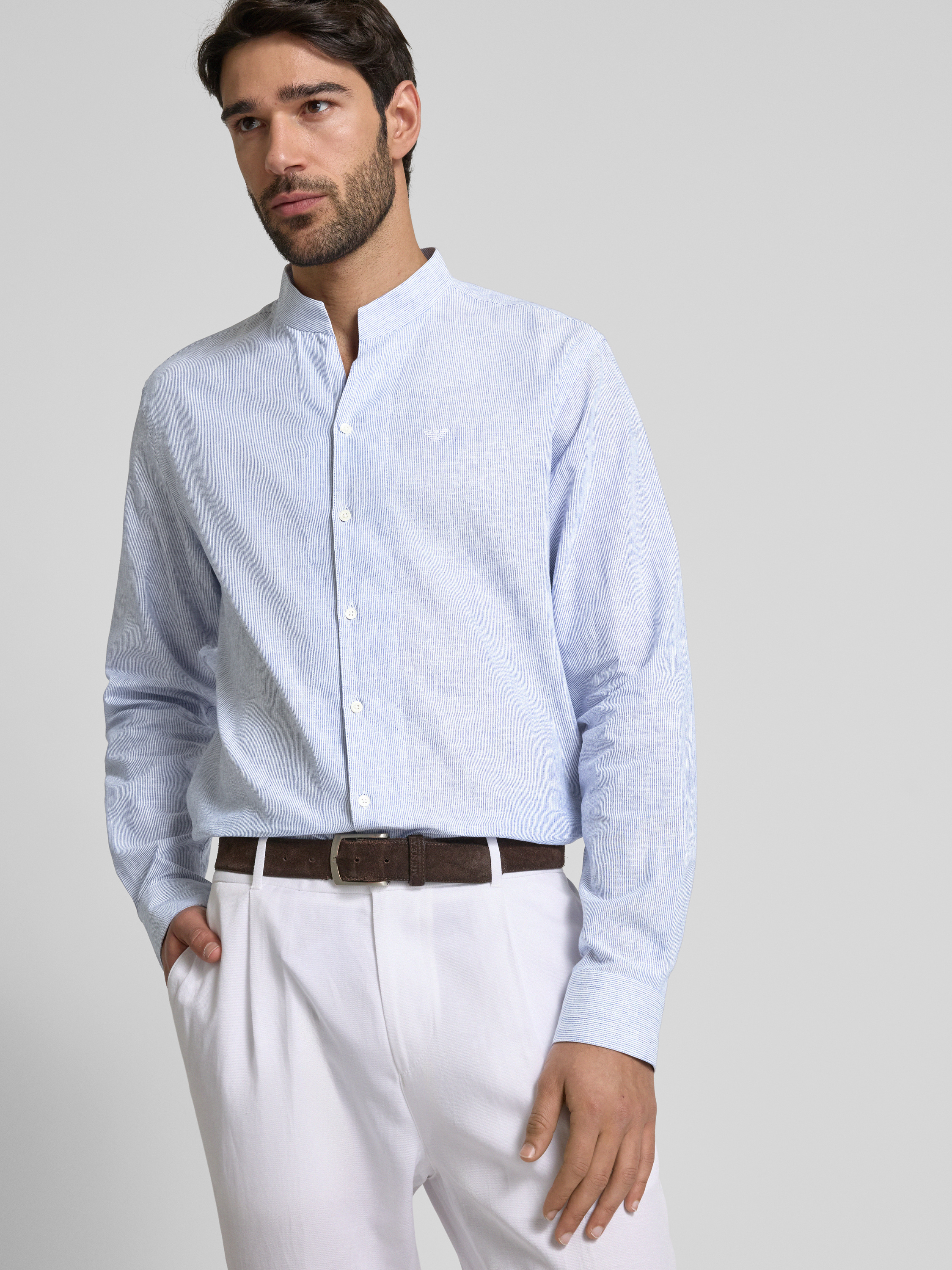 Emporio ArmaniRegular Fit Freizeithemd aus Leinen-Baumwoll-Mix in hellblau