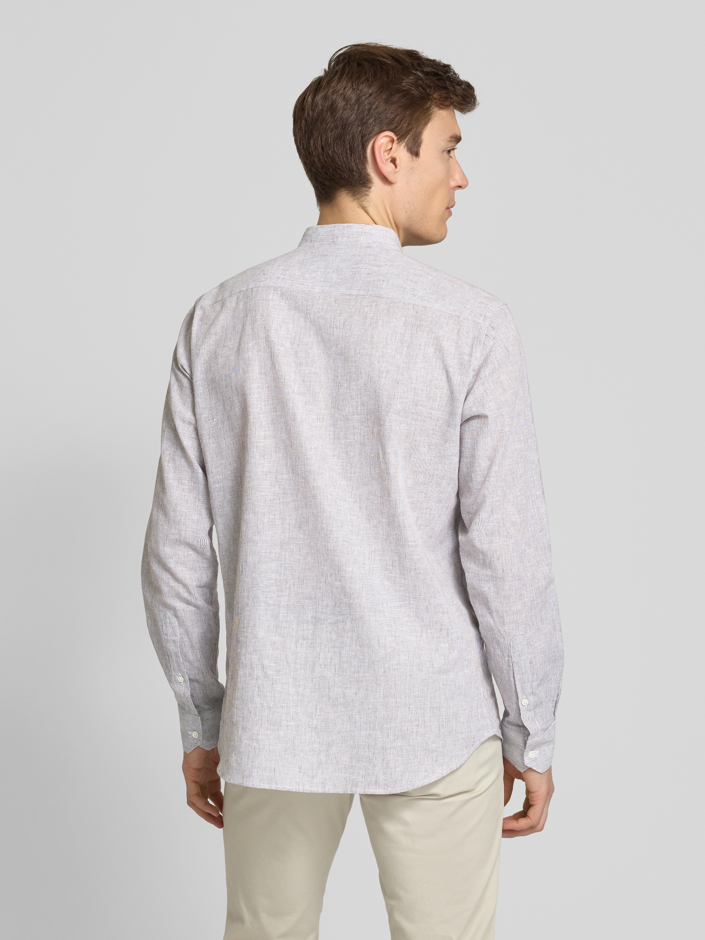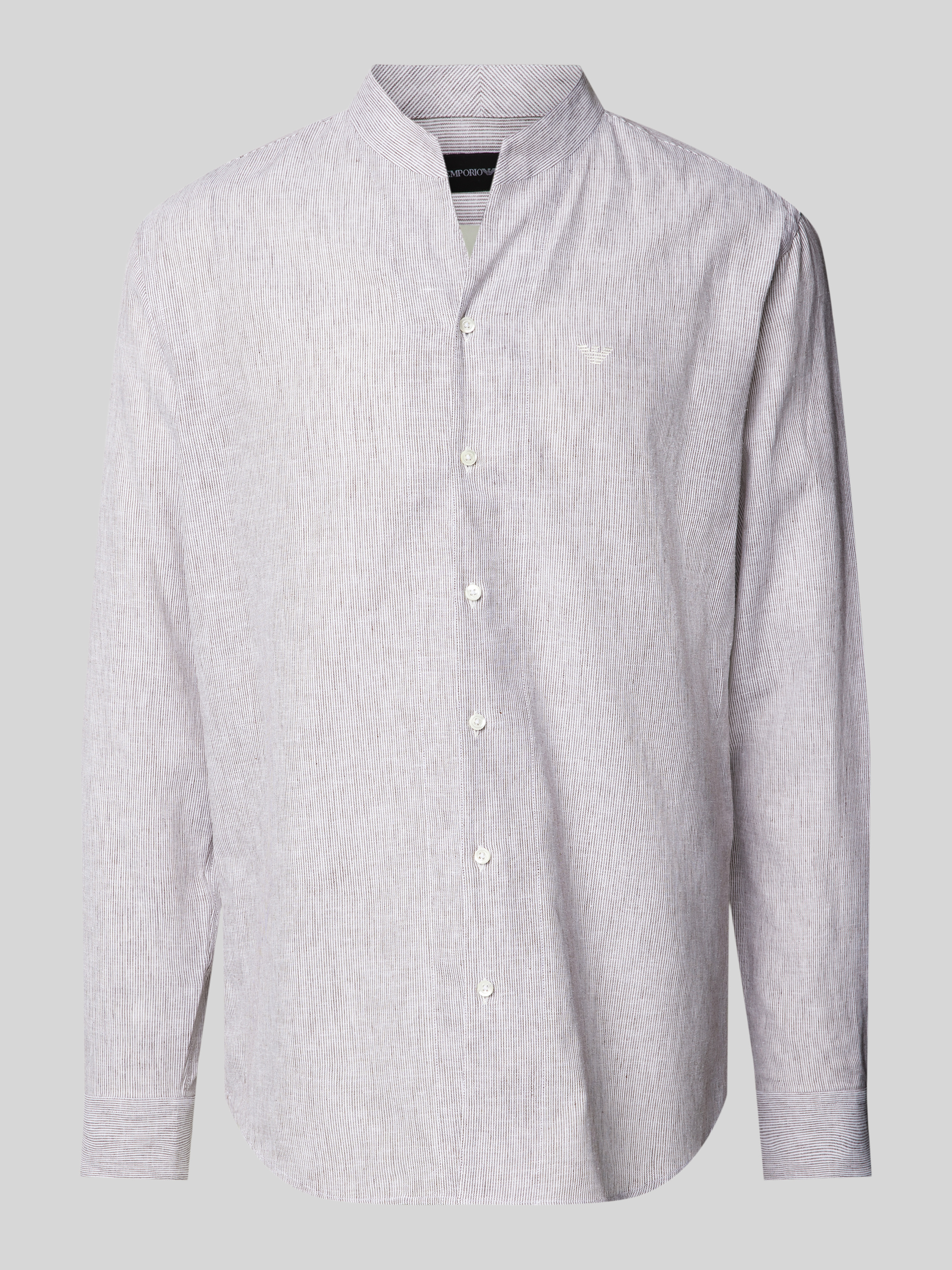 Emporio ArmaniRegular Fit Freizeithemd aus Leinen-Baumwoll-Mix in hellbraun