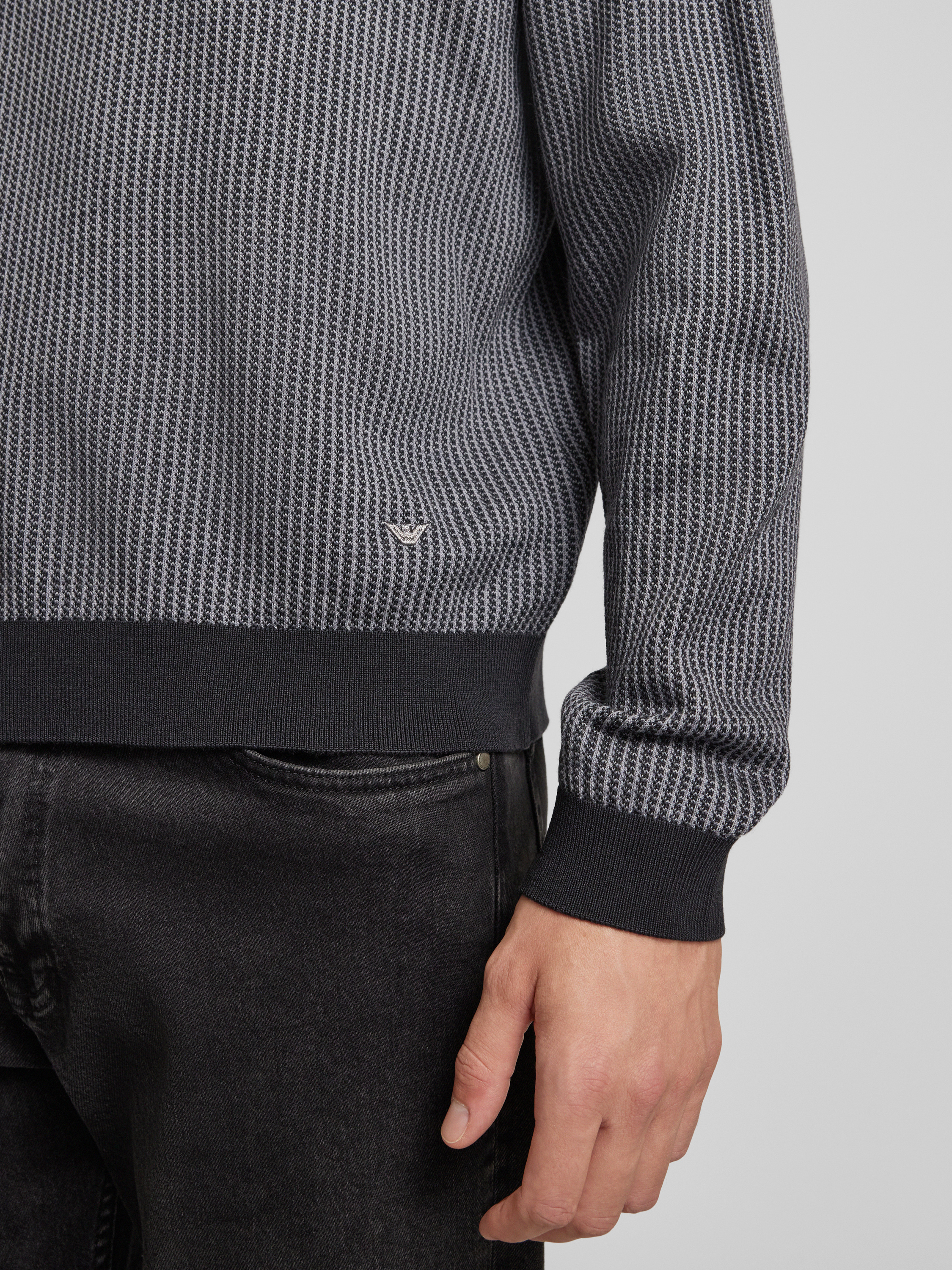 Der Herren Strickpullover von Emporio Armani aus reiner Baumwolle bietet durch seinen Regular Fit eine angenehme Passform. Der Stehkragen verleiht dem Pullover eine dezente Eleganz, während die gerippten Abschlüsse für zusätzlichen Komfort sorgen. Das Label-Stitching setzt einen stilvollen Akzent.