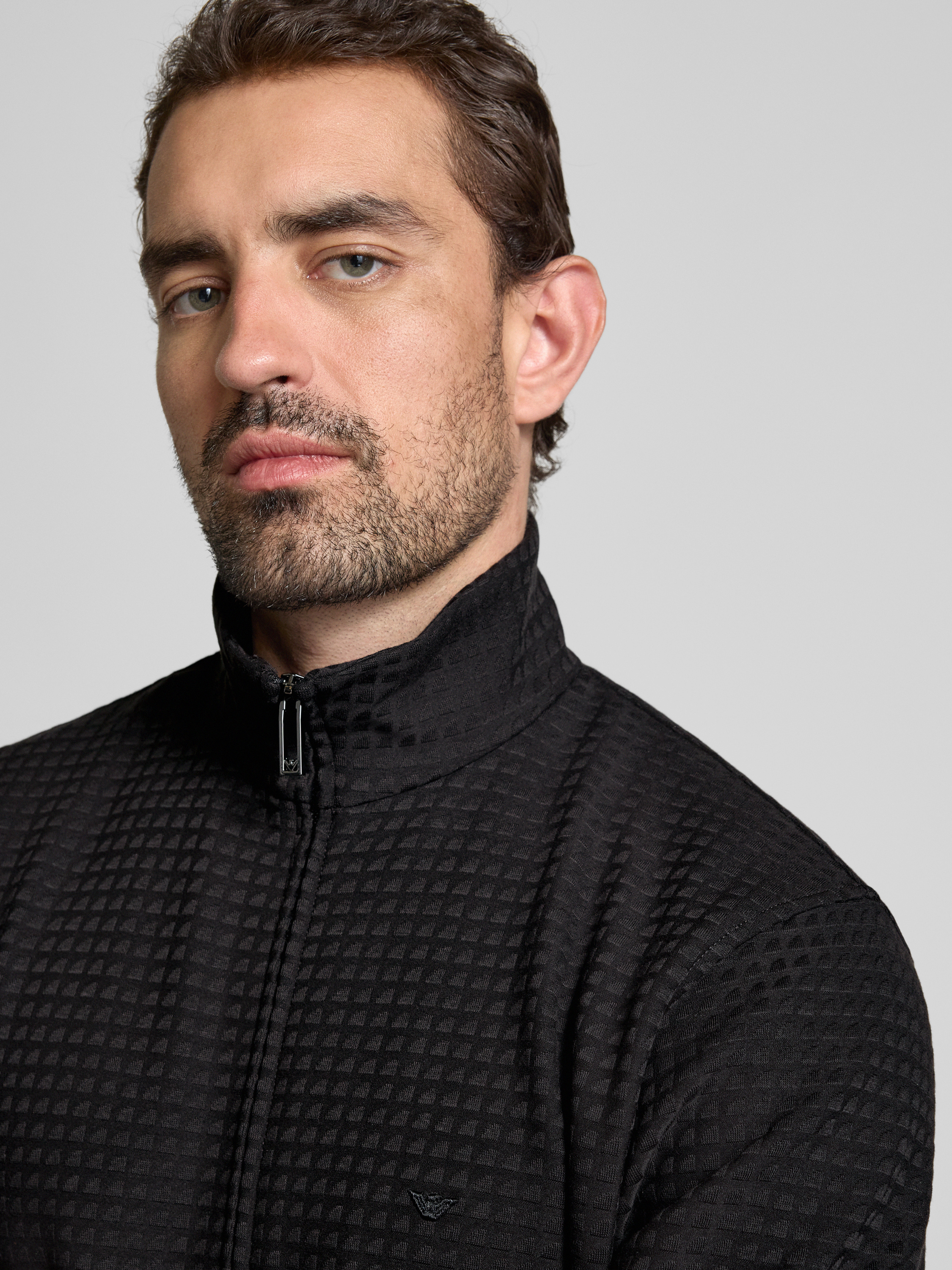 Die Herren Sweatjacke von Emporio Armani kombiniert einen bequemen Baumwoll-Lyocell-Mix mit einem lockeren Schnitt und einem praktischen Stehkragen. Der Stretch-Anteil sorgt für Bewegungsfreiheit, während die Eingrifftaschen funktionalen Komfort bieten. Label-Stitching und elastische Abschlüsse verleihen der Jacke eine dezente Eleganz.