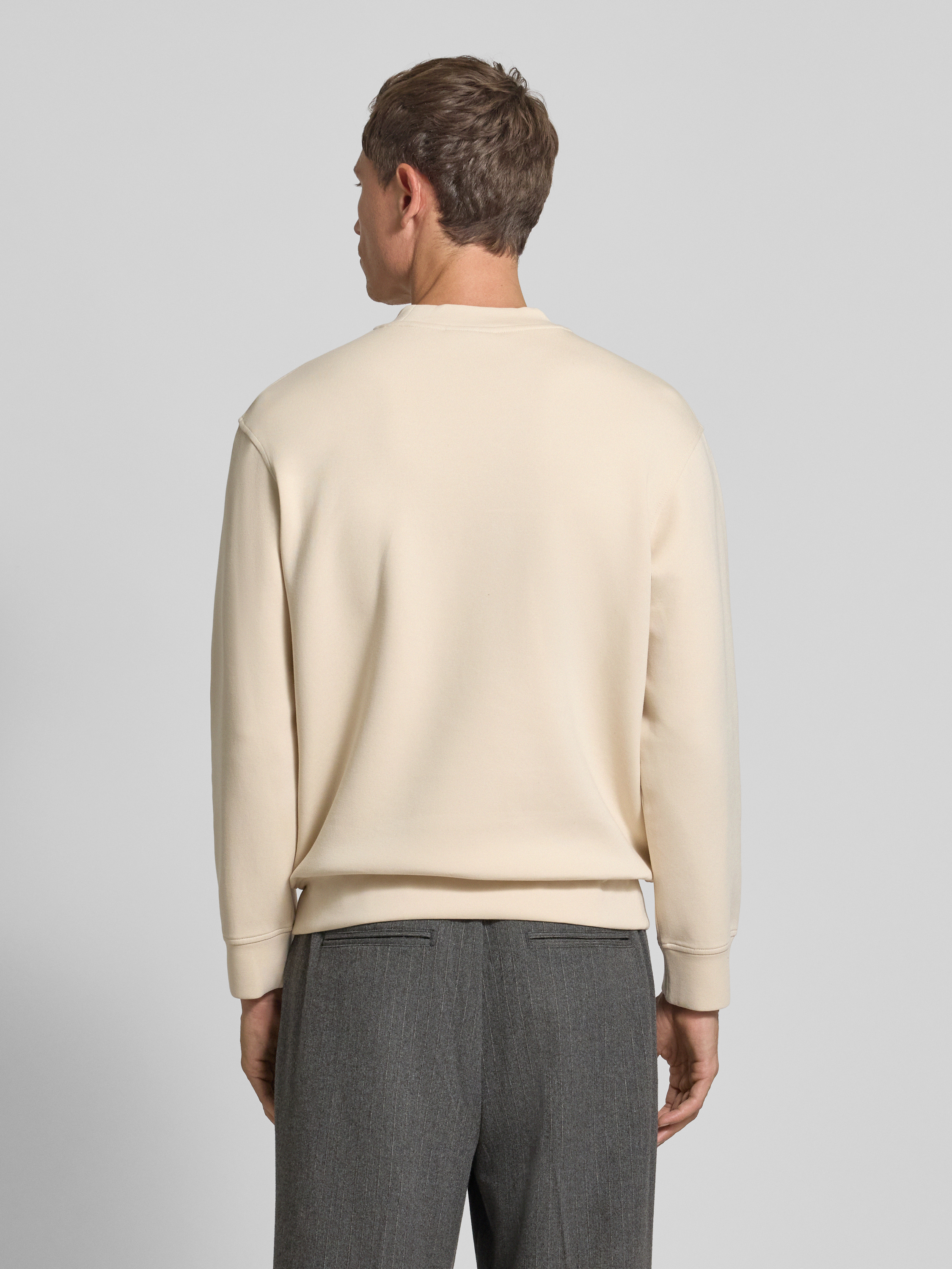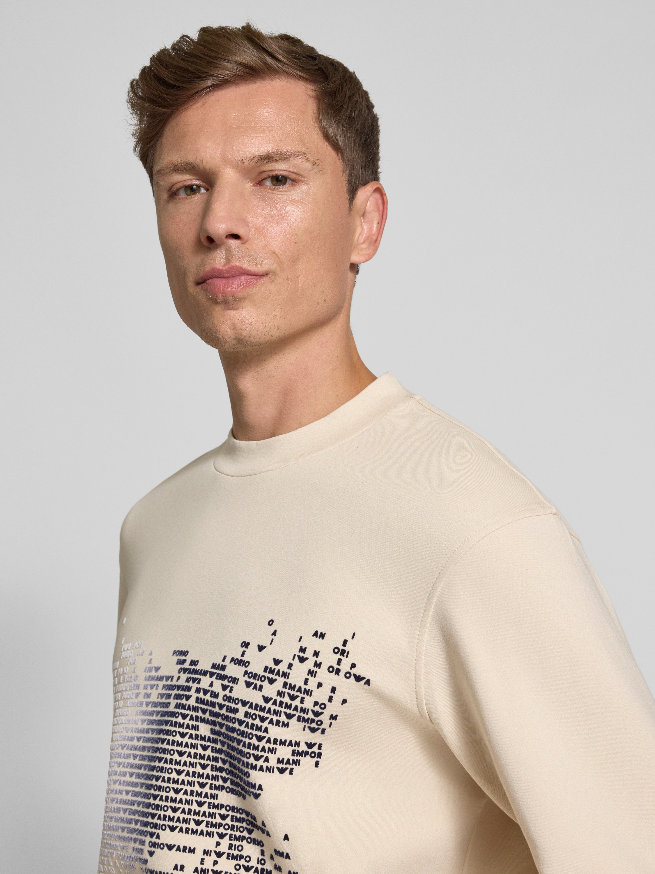 Das Herren Sweatshirt von Emporio Armani zeigt sich mit lockerem Schnitt und angenehmem Baumwoll-Mix mit Stretch-Anteil, wodurch Bewegungsfreiheit im Alltag erhalten bleibt. Ein klassischer Rundhalsausschnitt und gerippte Abschlüsse runden das Erscheinungsbild ab. Das dezente Label-Detail ergänzt das Gesamtbild unaufdringlich.