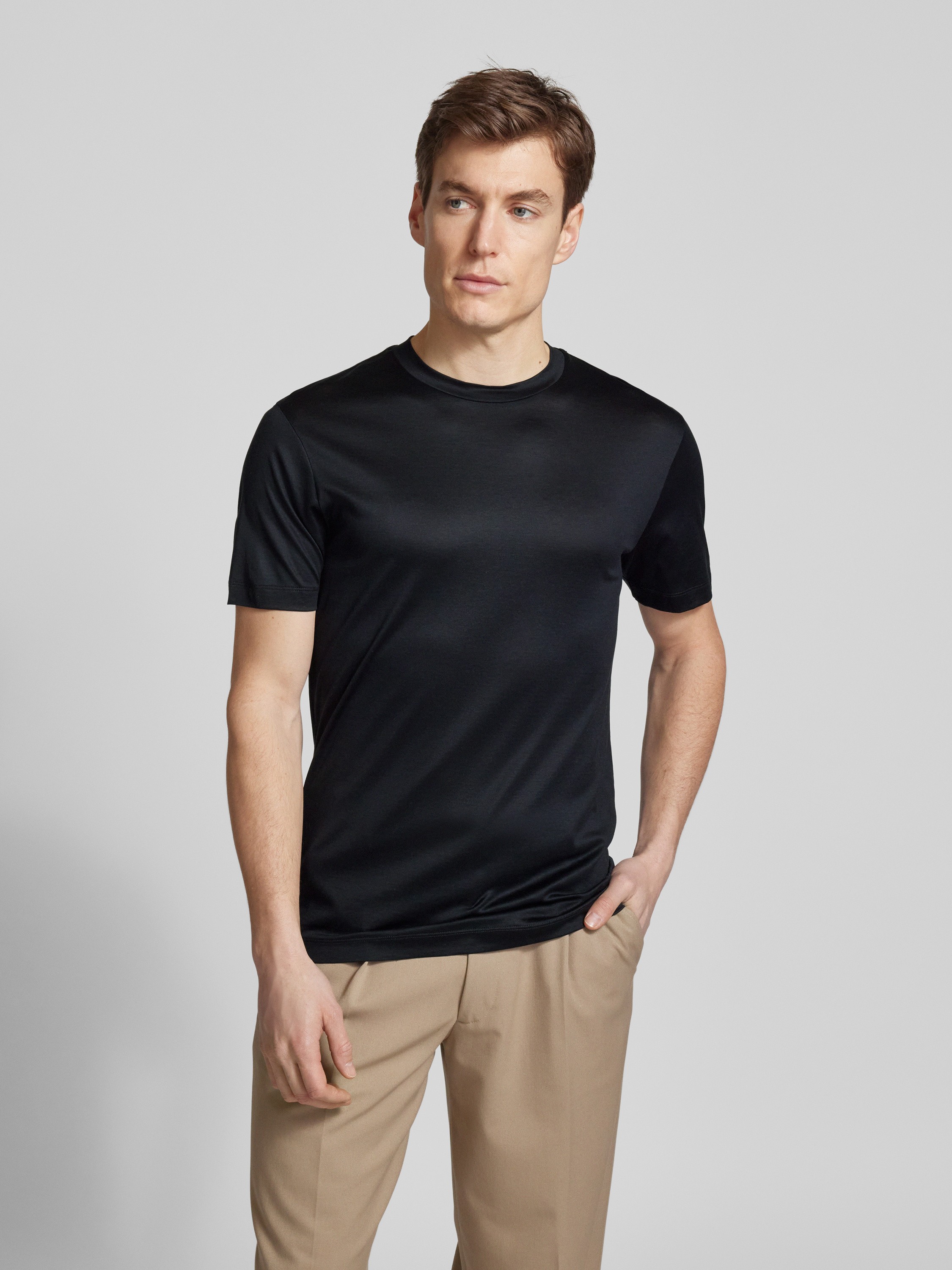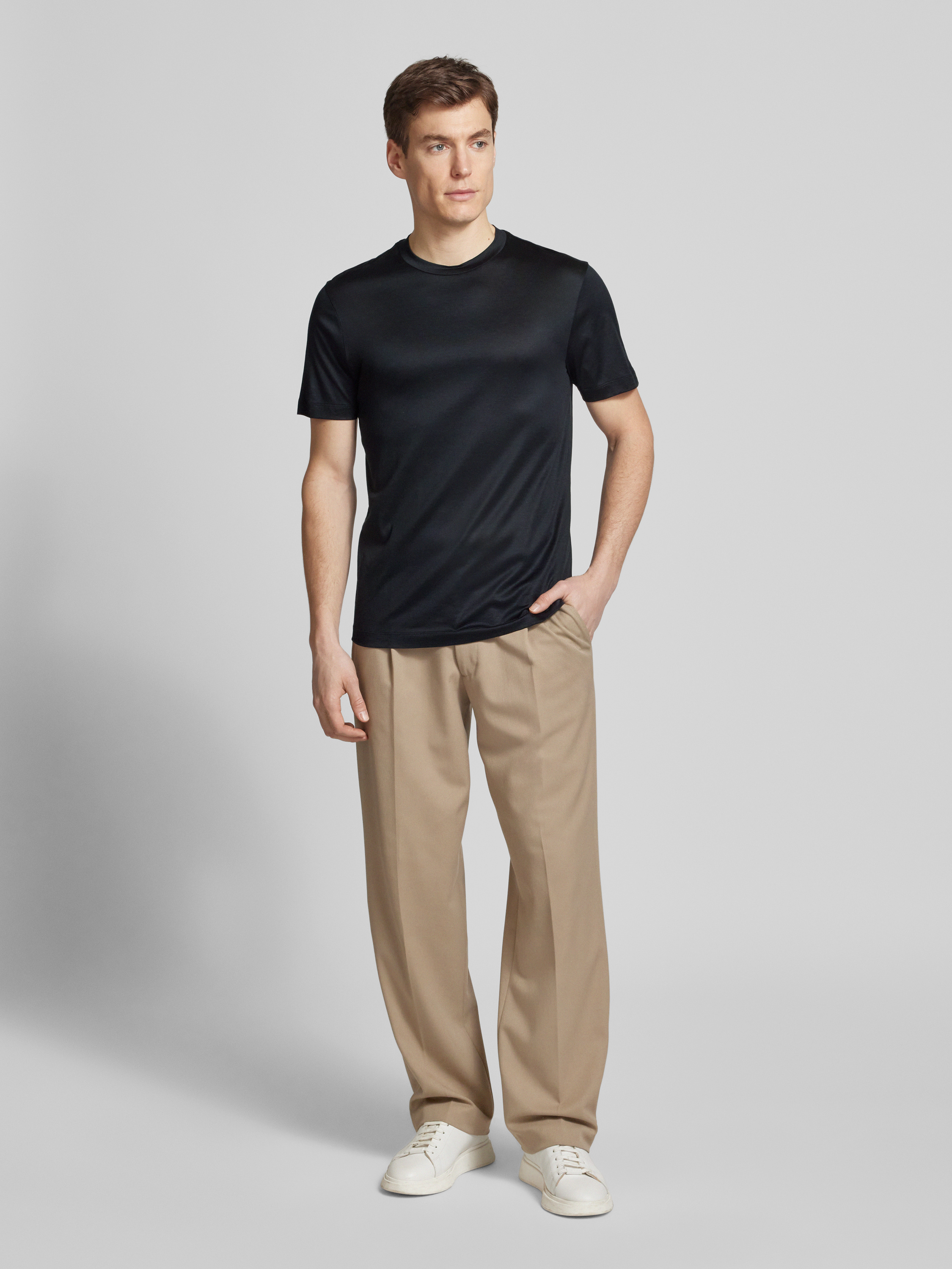 Das Herren T-Shirt von Emporio Armani im Lyocell-Baumwoll-Mix kombiniert eine gerade Passform mit einem klassischen Rundhalsausschnitt. Kurzärmelig und angenehm zu tragen, eignet es sich ideal für einen lässigen, aber stilvollen Auftritt im Alltag. Die weiche Materialmischung sorgt für hohen Tragekomfort.