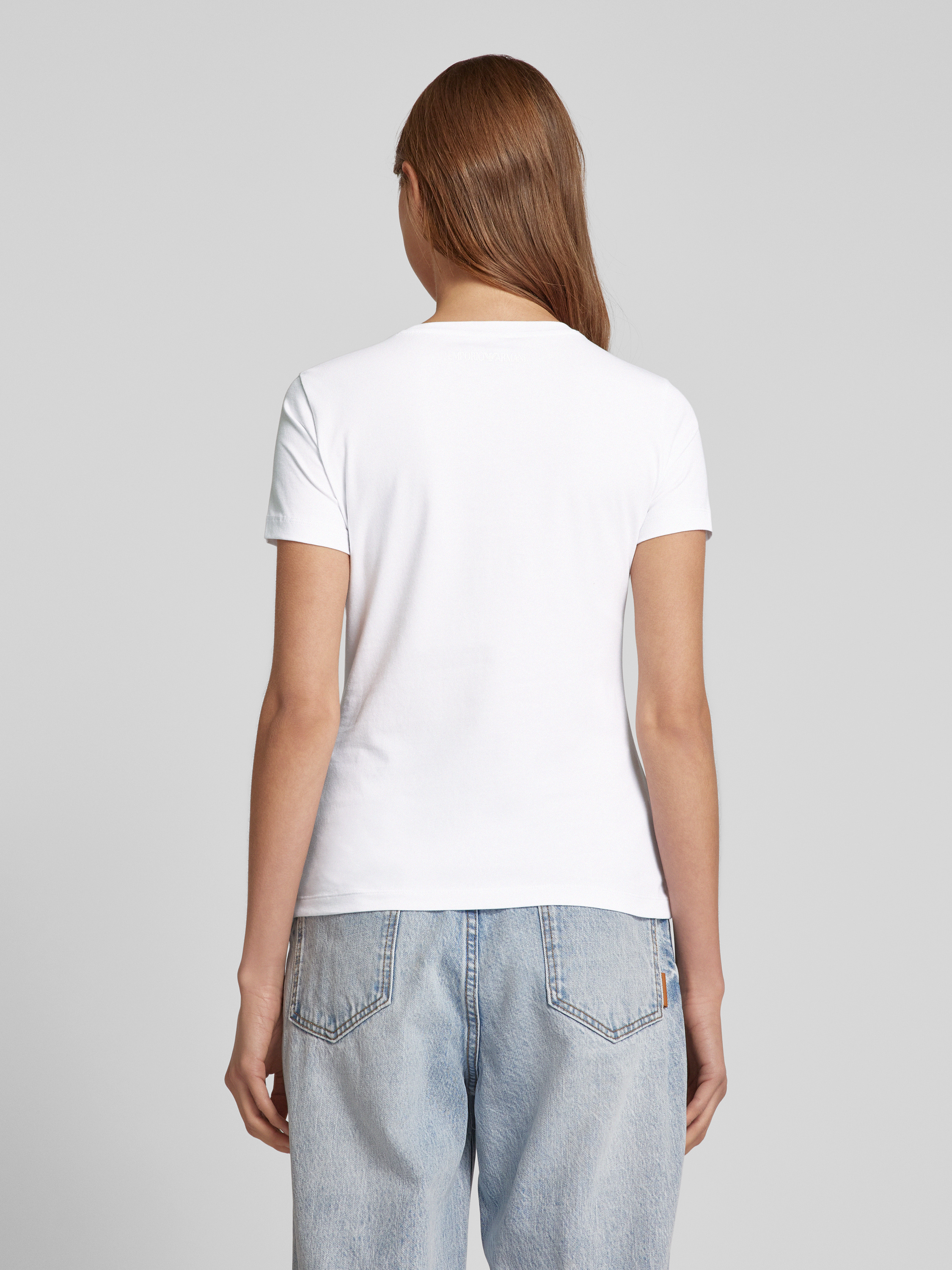 Das Emporio Armani T-Shirt mit Logo-Print vereint einen körpernahen Schnitt mit einem weichen Baumwoll-Elasthan-Mix, der angenehm auf der Haut liegt. Der klassische Rundhalsausschnitt ergänzt den zeitlosen Stil, während der markante Logo-Print subtile Akzente setzt. Ideal für vielseitige Kombinationen im Alltag.