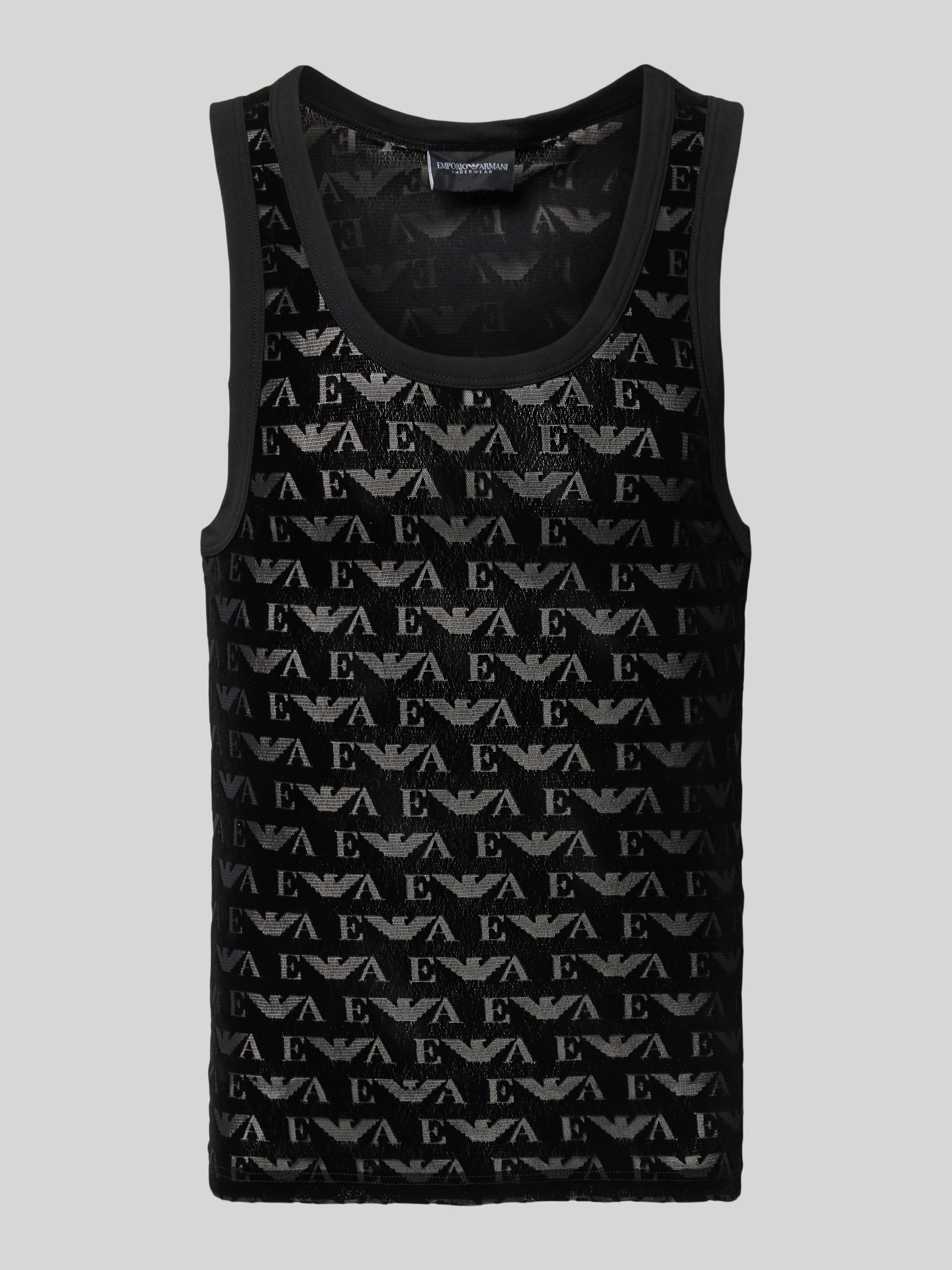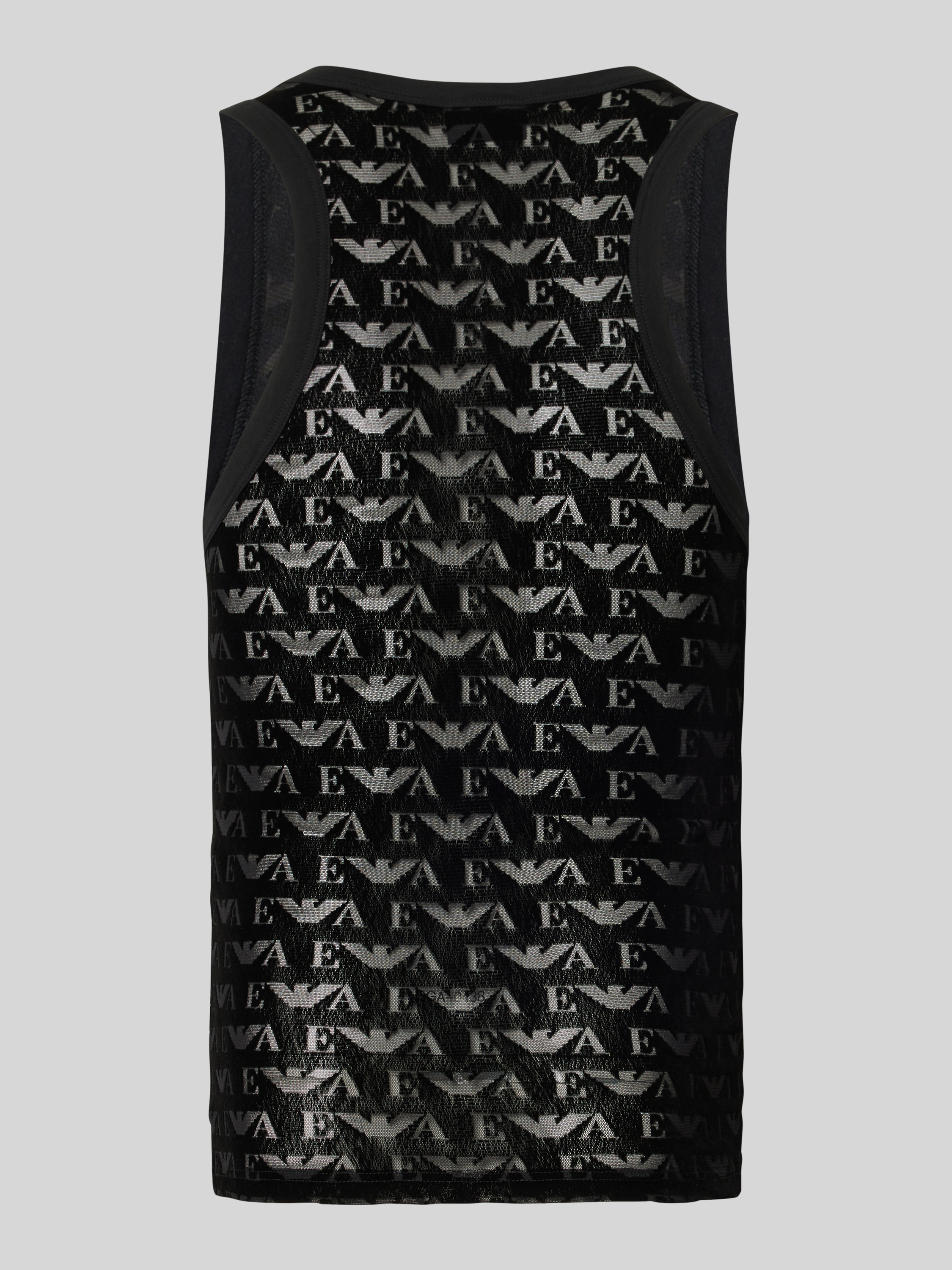 Das Herren Tanktop von Emporio Armani zeigt sich im Slim Fit und legt sich angenehm an den Körper an, während das semitransparente Material Leichtigkeit vermittelt. Durch das markante Logo-Muster entsteht ein dezenter Akzent, der dem Look eine besondere Note verleiht. Dank Rundhalsausschnitt eignet sich das Oberteil sowohl für warme Tage als auch als vielseitige Schicht unter weiteren Kleidungsstücken.