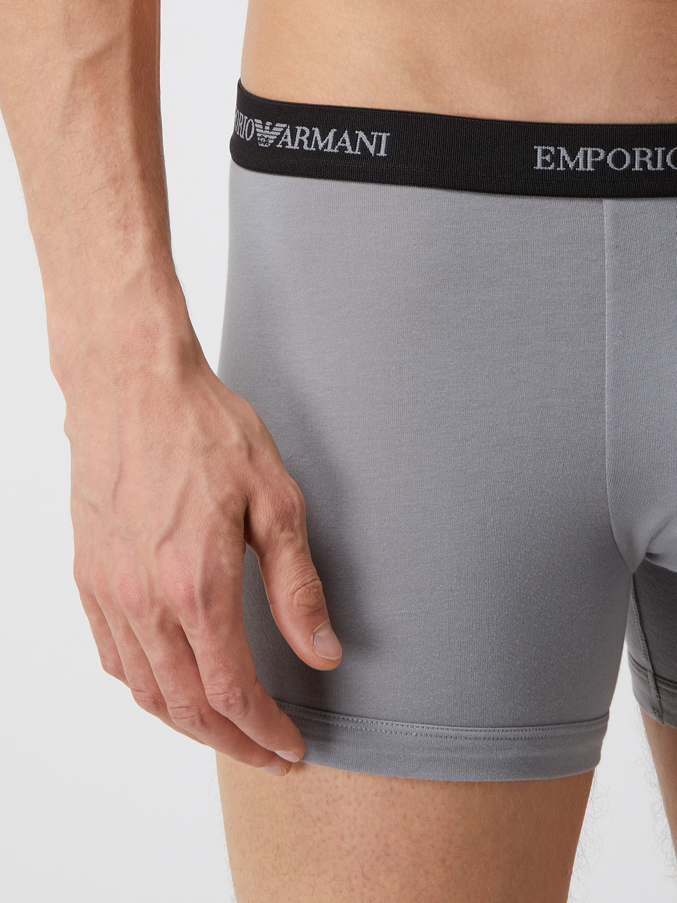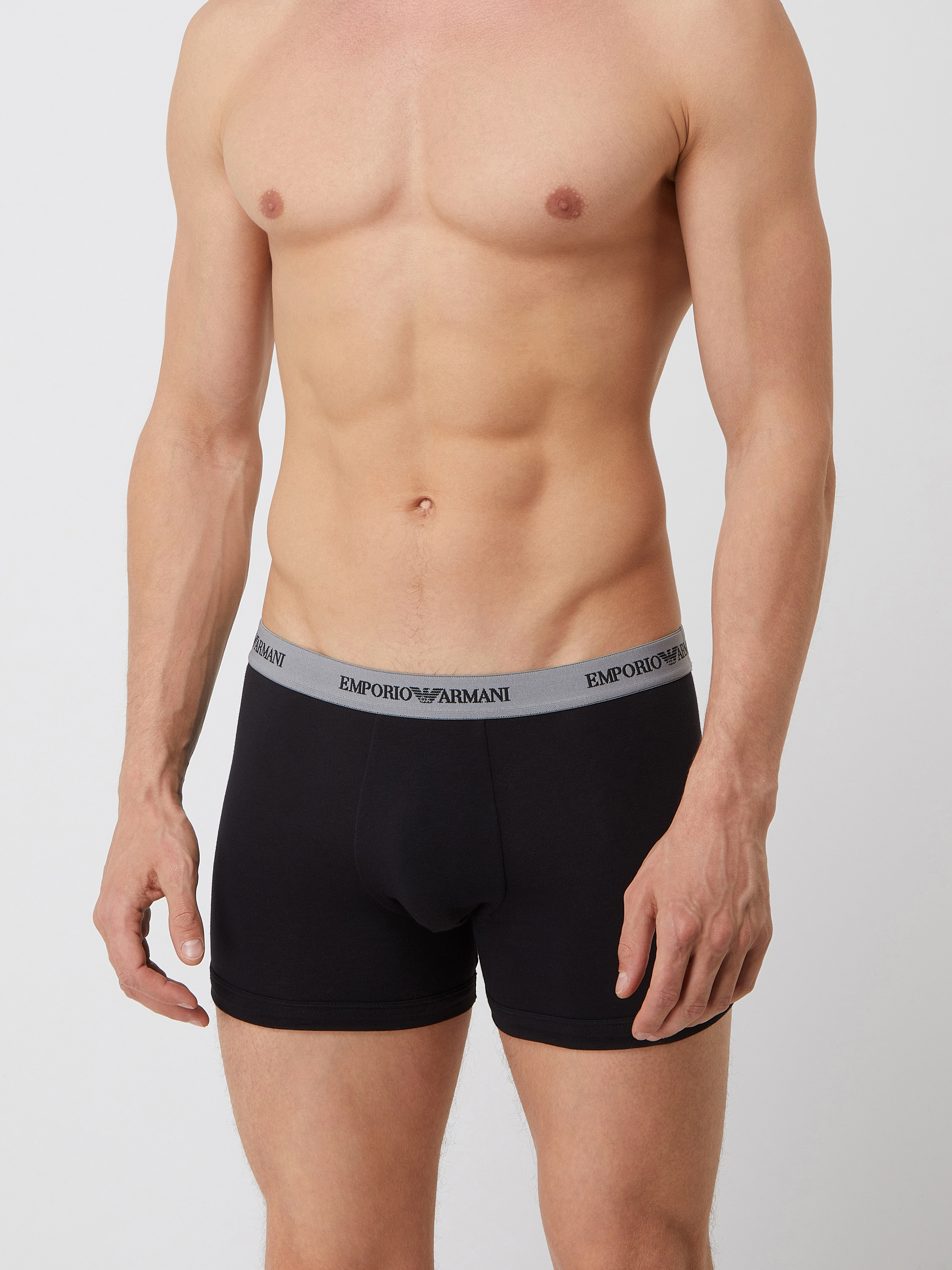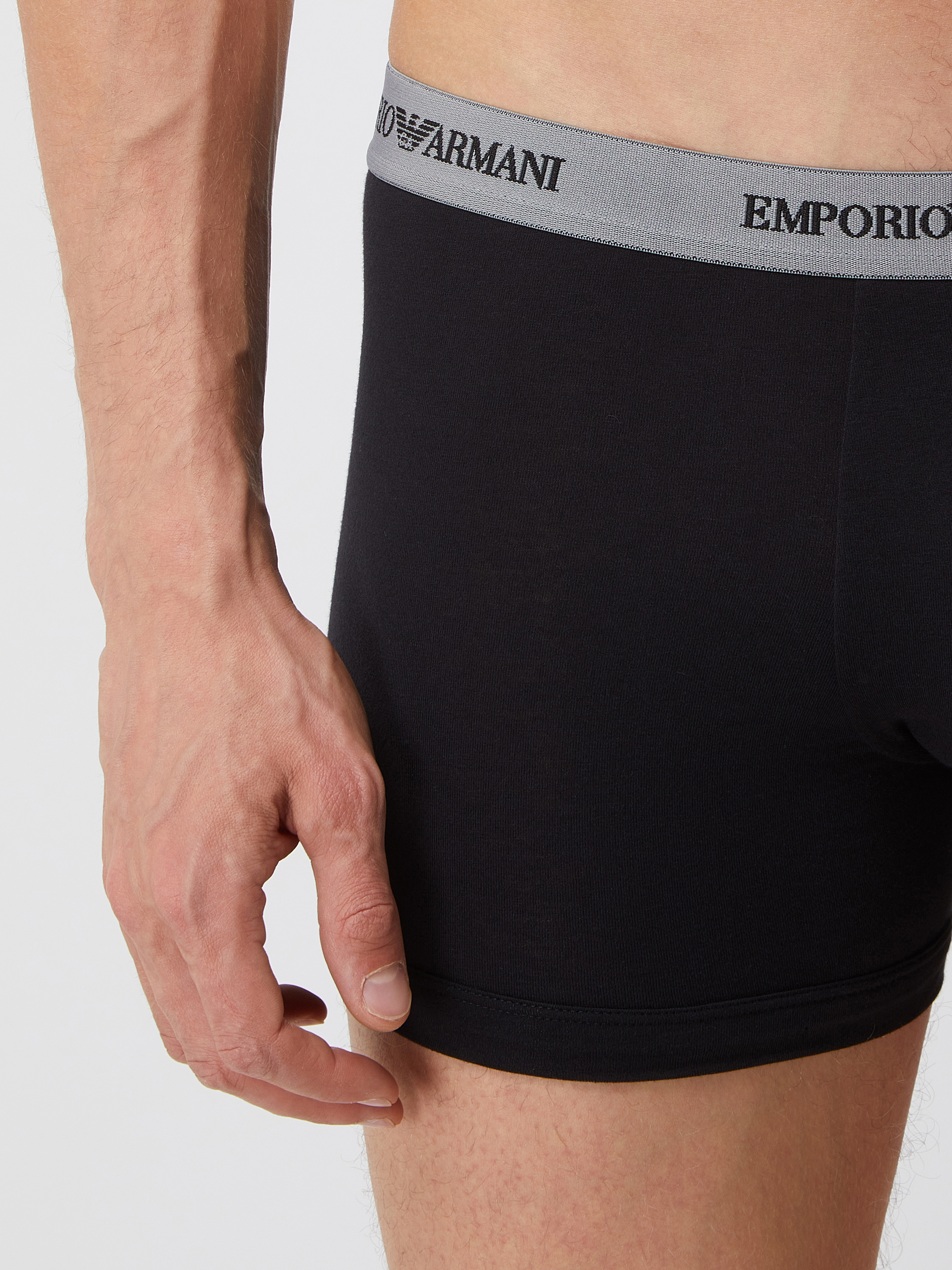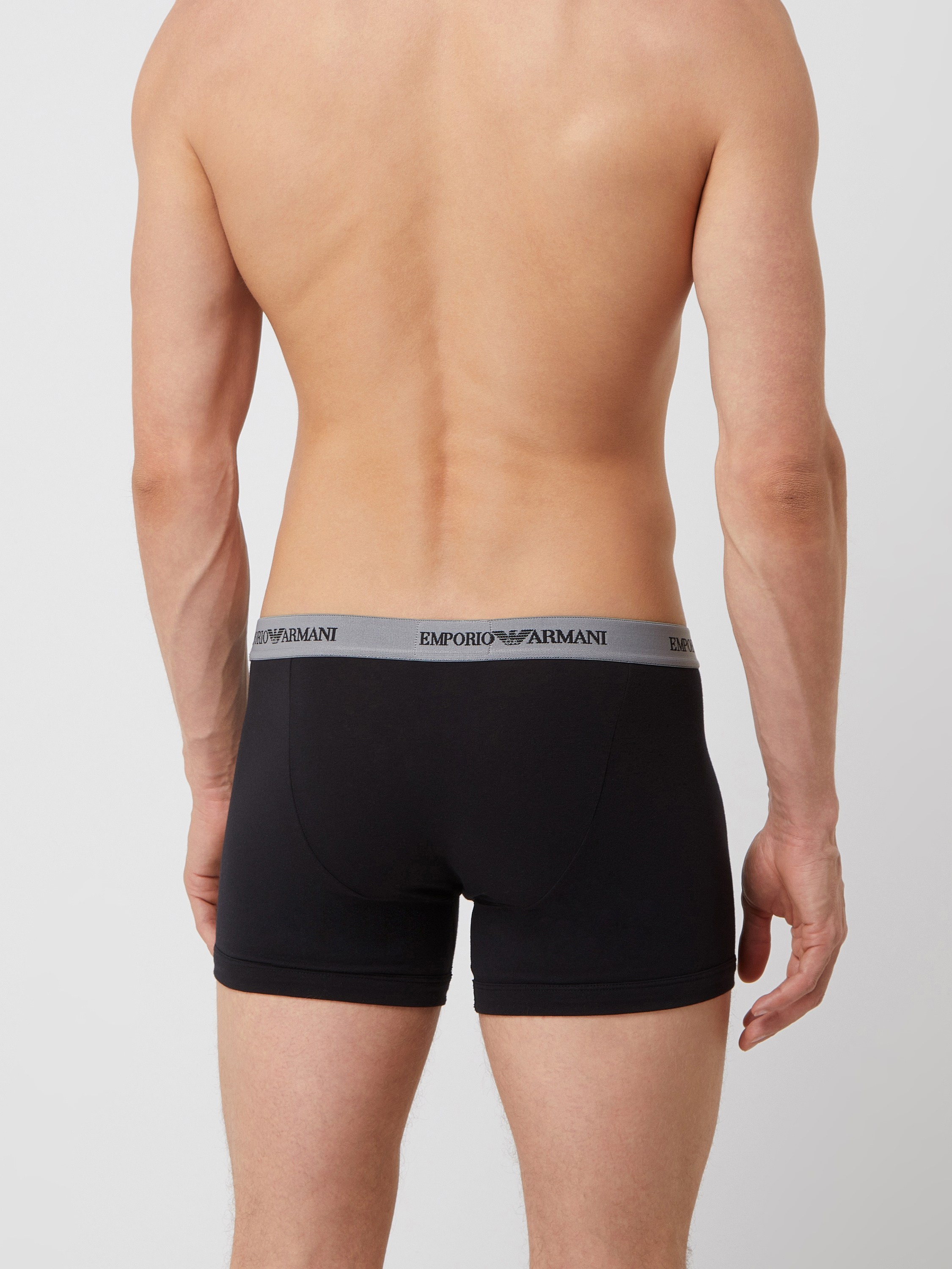Die Trunks von Emporio Armani sind aus einem Baumwoll-Elasthan-Mix gefertigt und figurnah geschnitten. Sie kommen im 2er-Pack, mit elastischem Bund und Logo-Schriftzügen.