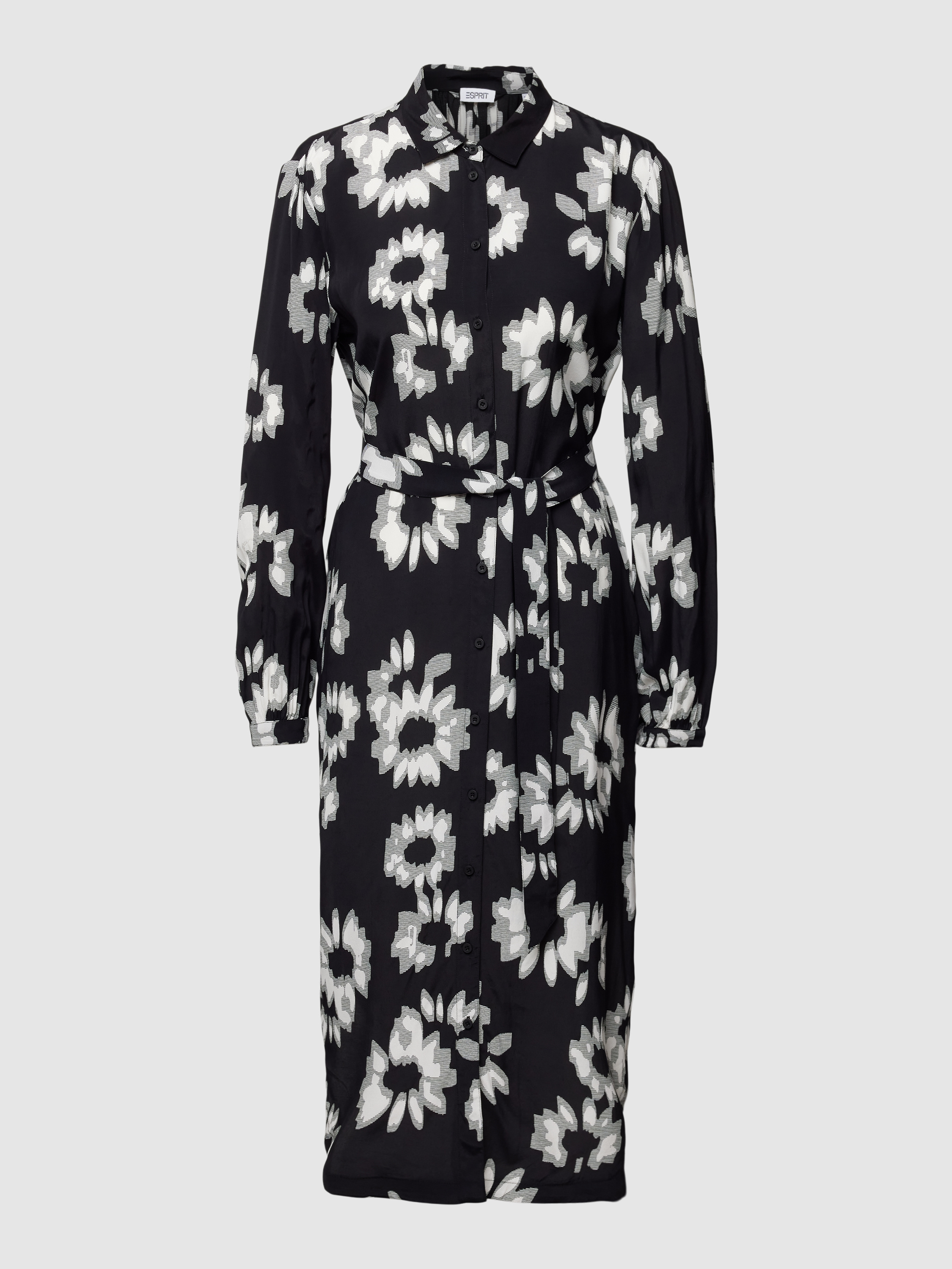 Das Esprit Midikleid mit Bindegürtel, gefertigt aus reiner Viskose, bietet durch seinen geraden Schnitt und den floralen Allover-Print eine entspannte Eleganz. Der Umlegekragen verleiht dem Kleid eine klassische Note. Der Bindegürtel ermöglicht individuelle Anpassungen und unterstreicht die feminine Silhouette.