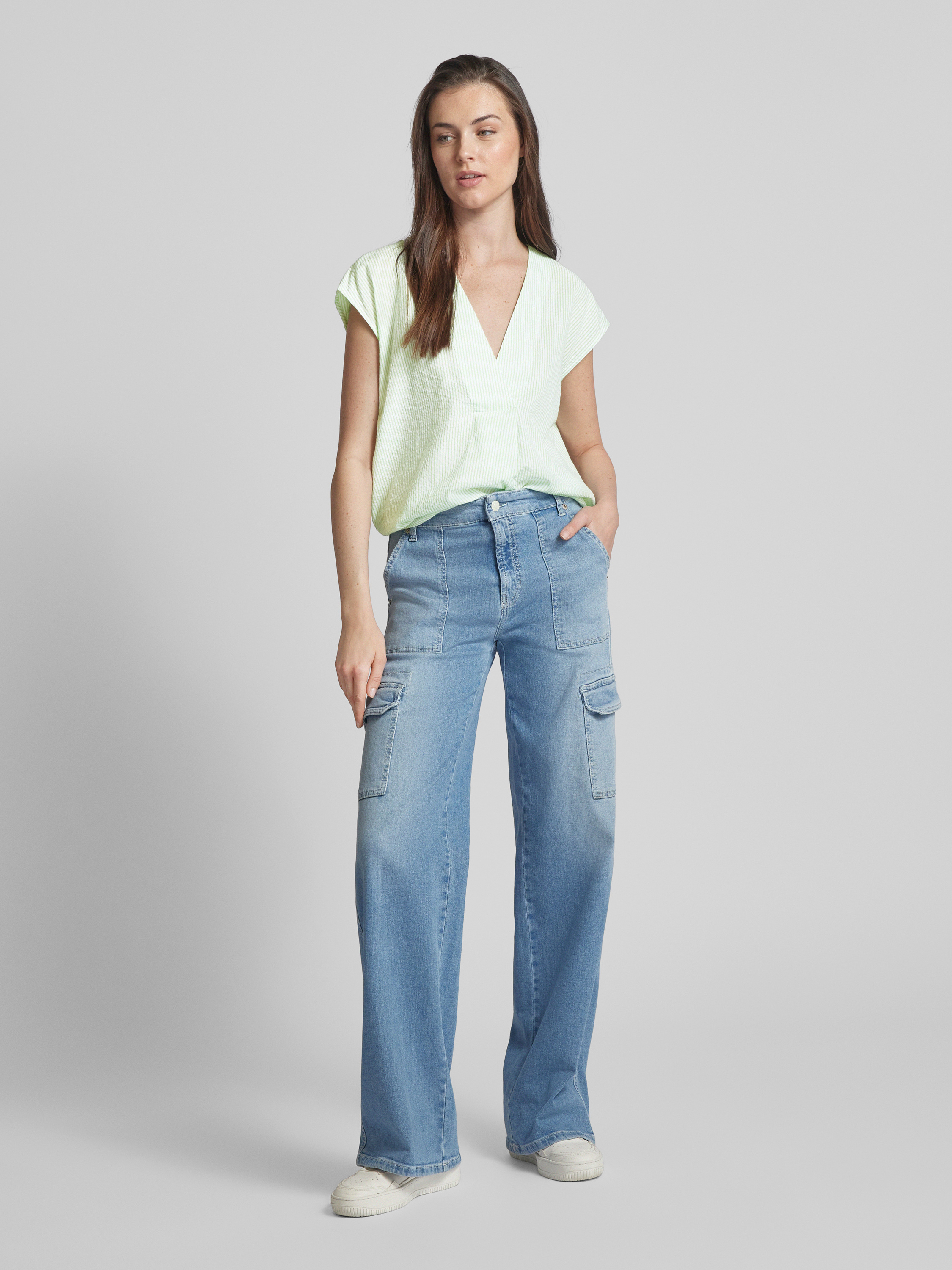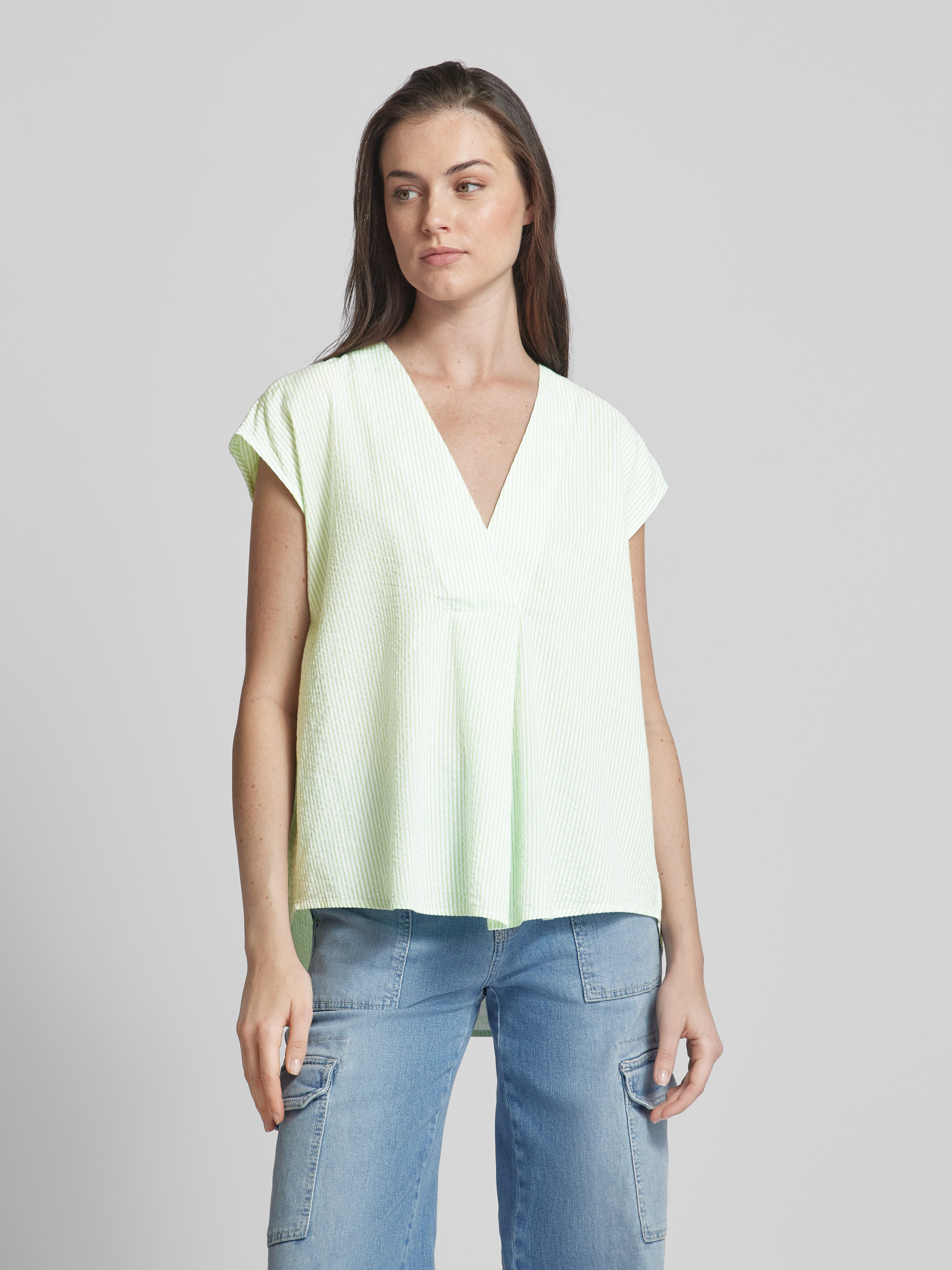 Regular Fit Blusenshirt mit Streifenmuster und V-Ausschnitt in apfel
