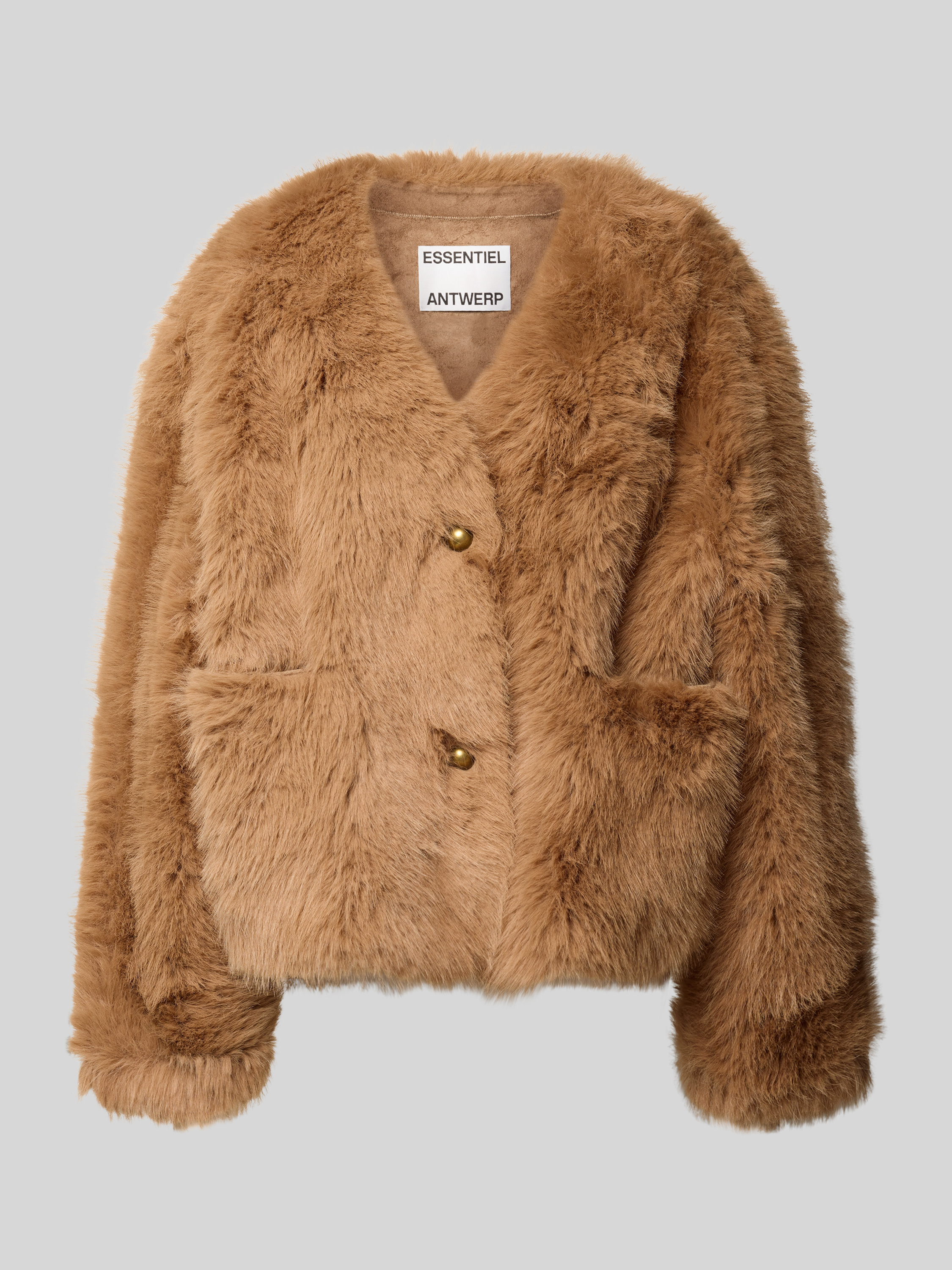 Die Damen Jacke von Essentiel Antwerp, Modell IJACKET, fällt durch ihren Boxy Fit angenehm locker und sorgt für Bewegungsfreiheit im Alltag. Weicher Webpelz verleiht eine sanfte Haptik, während die unifarbene Optik vielseitige Kombinationsmöglichkeiten eröffnet. Praktische Eingrifftaschen runden das Design funktional ab.