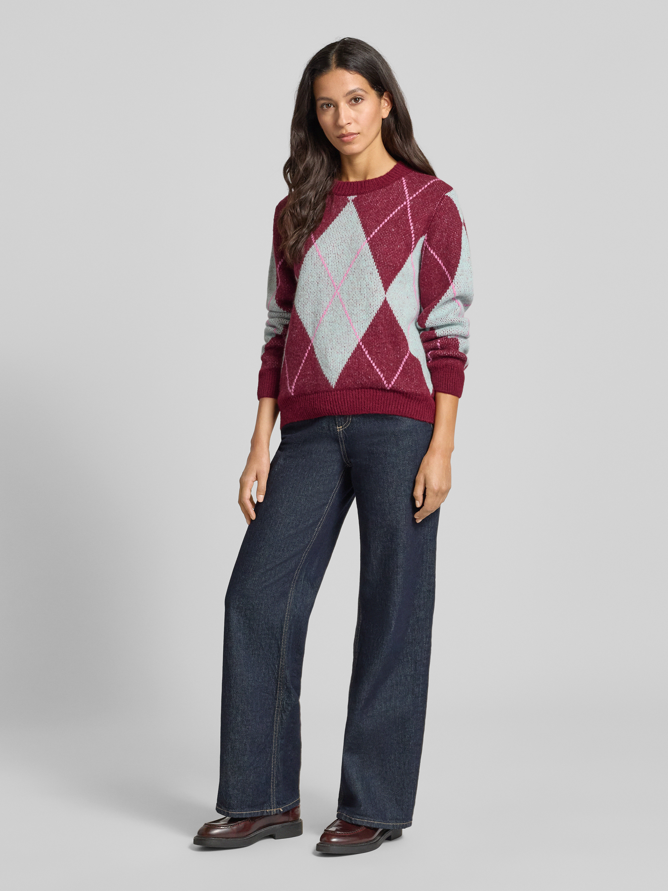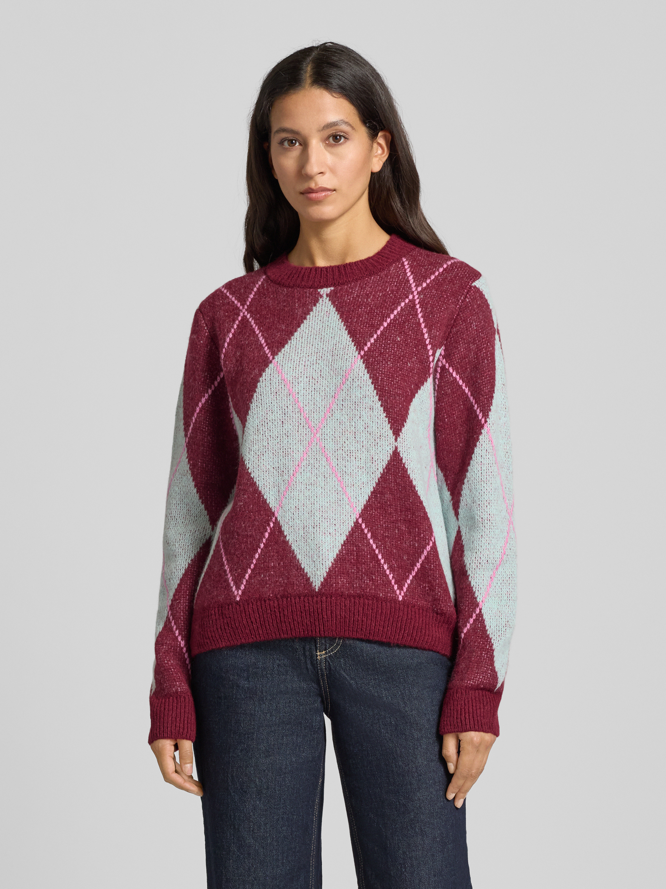 Der Damen Pullover von Essentiel Antwerp kombiniert ein markantes Tartan-Muster mit einer entspannten Loose-Fit Passform und überschnittenen Schultern. Durch den Woll-Anteil in der Strick-Verarbeitung entsteht ein angenehmes Tragegefühl, das sich vielseitig im Alltag einsetzen lässt. Ein klassischer Rundhals und lange Ärmel runden das Design stimmig ab.