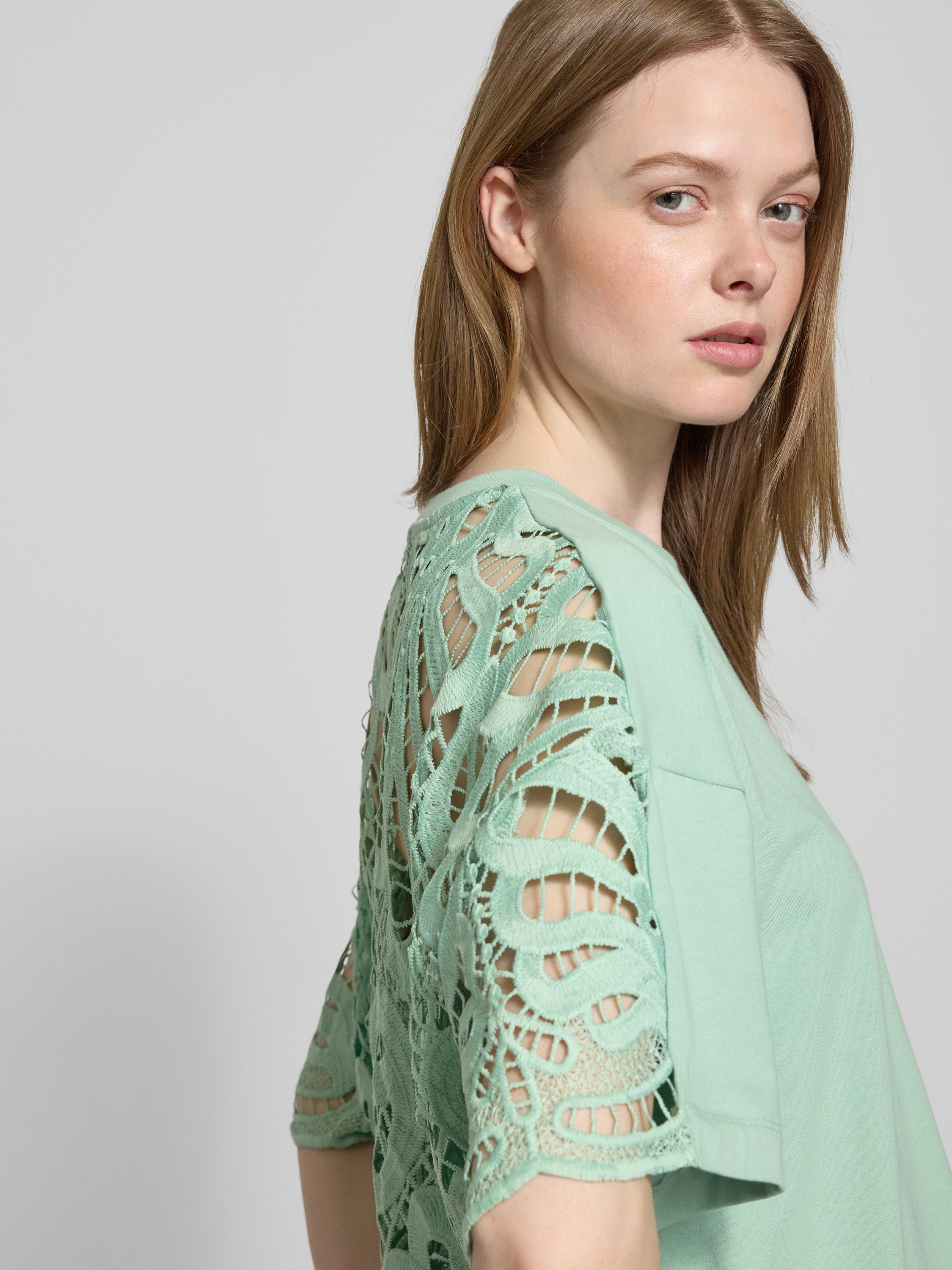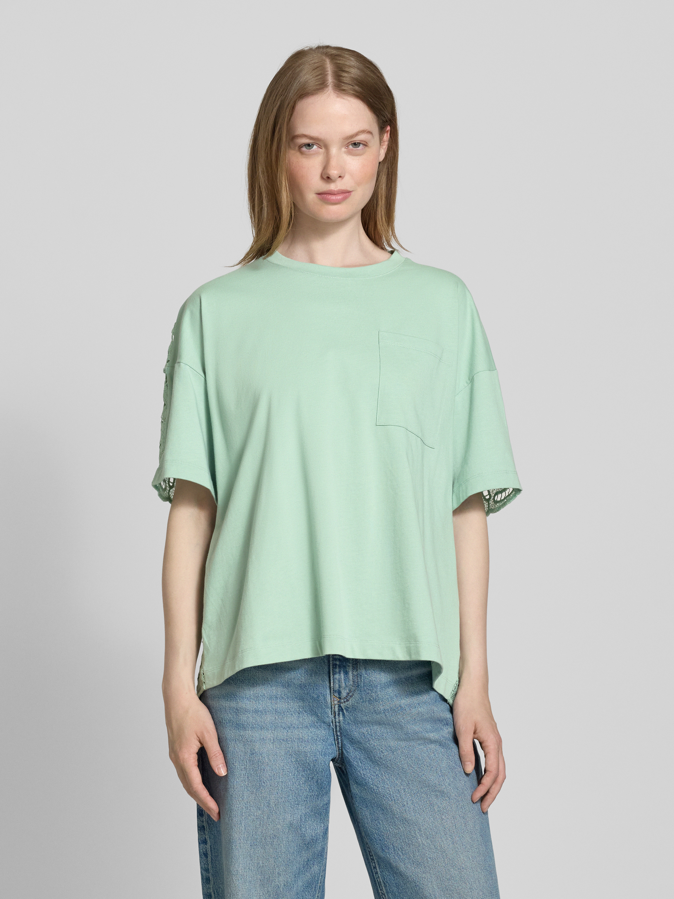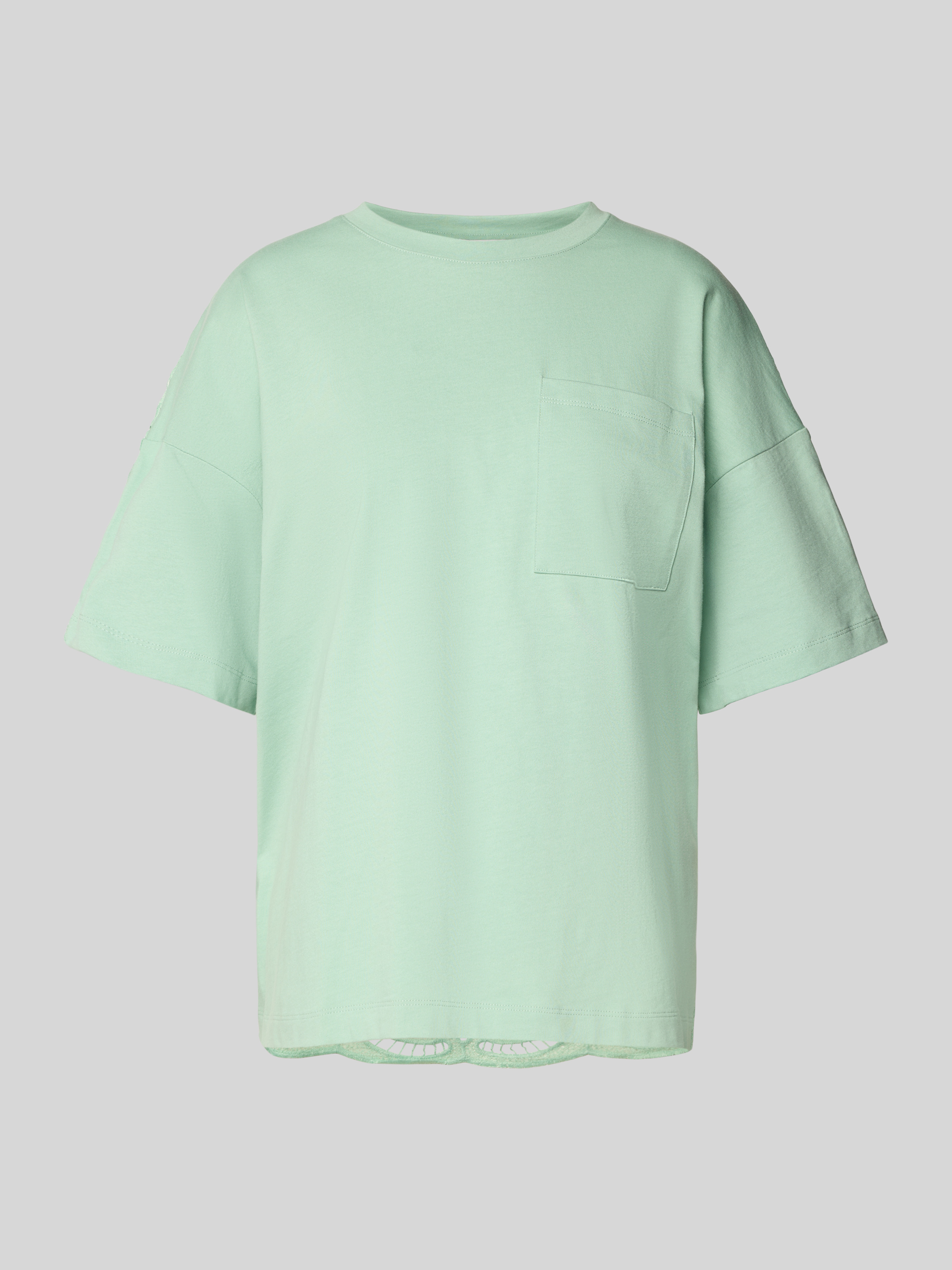 Das Damen T-Shirt von Essentiel Antwerp bietet mit seiner lockeren Passform und dem weichen Jersey-Material aus reiner Baumwolle ein angenehmes Tragegefühl. Der Spitzeneinsatz am Rücken verleiht dem unifarbenen Design eine dezente Raffinesse. Die kurze Ärmelform und der Rundhalsausschnitt runden den lässigen Look ab.