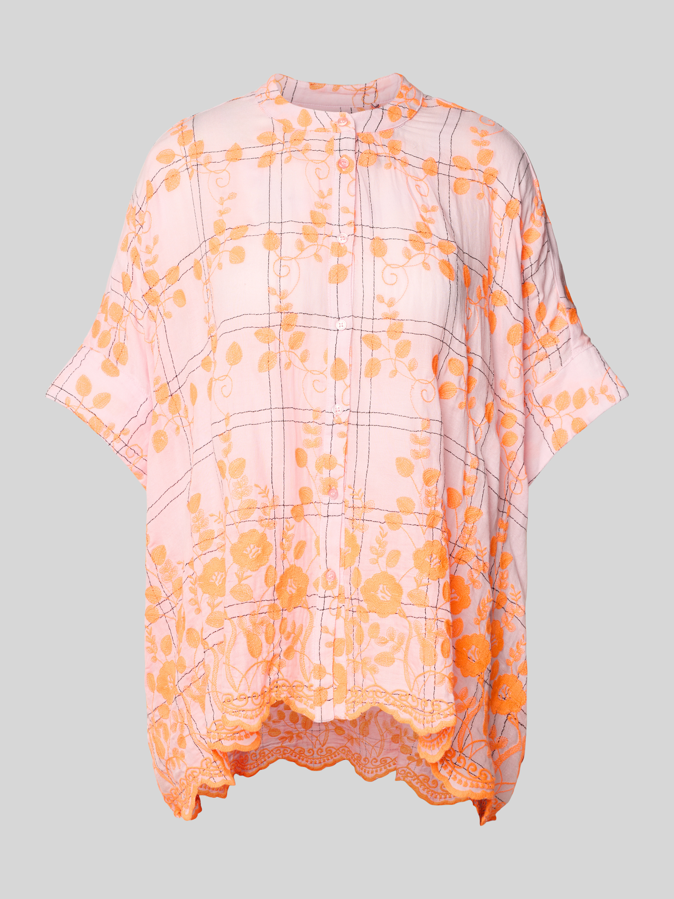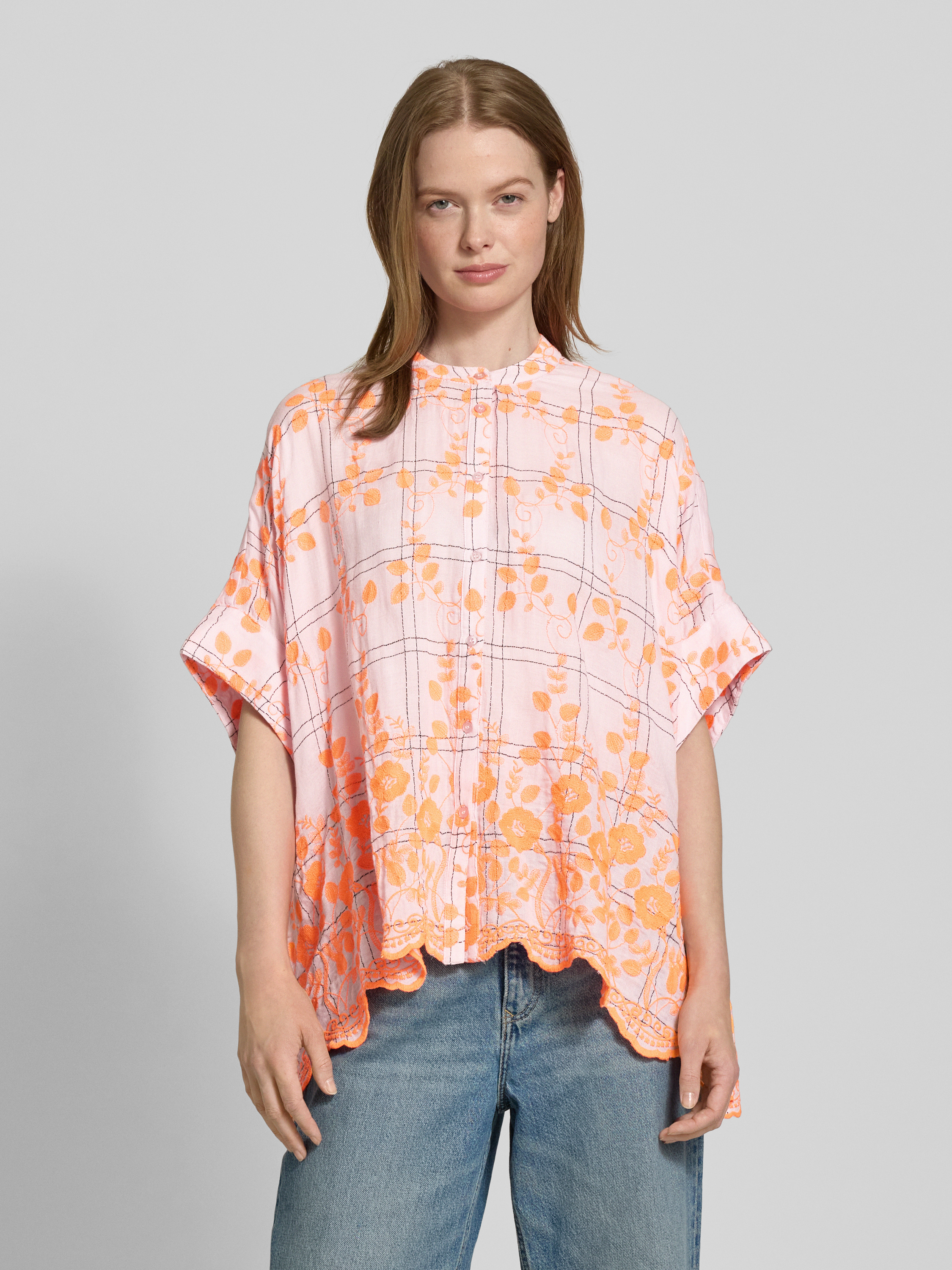 Die Boxy Fit Hemdbluse von Essentiel Antwerp, Modell 'Hacramento', vereint einen legeren Schnitt mit stilvollen Details wie einem Mandarinkragen und einer floralen Stickerei. Der Baumwoll-Mix bietet angenehmen Tragekomfort, während das karierte Allover-Muster einen modischen Akzent setzt. Die 3/4-Fledermausärmel verleihen der Bluse eine lässige Note.