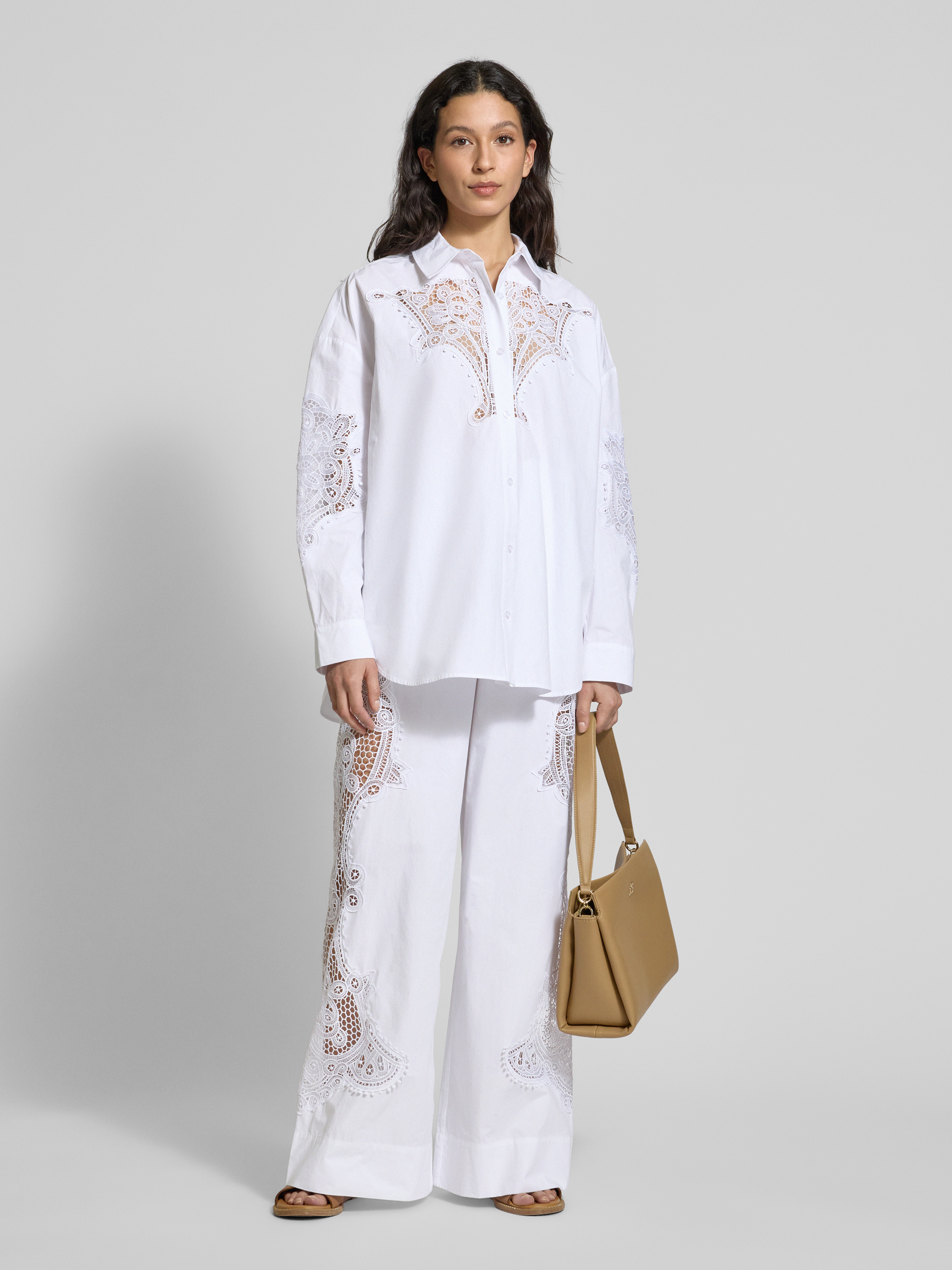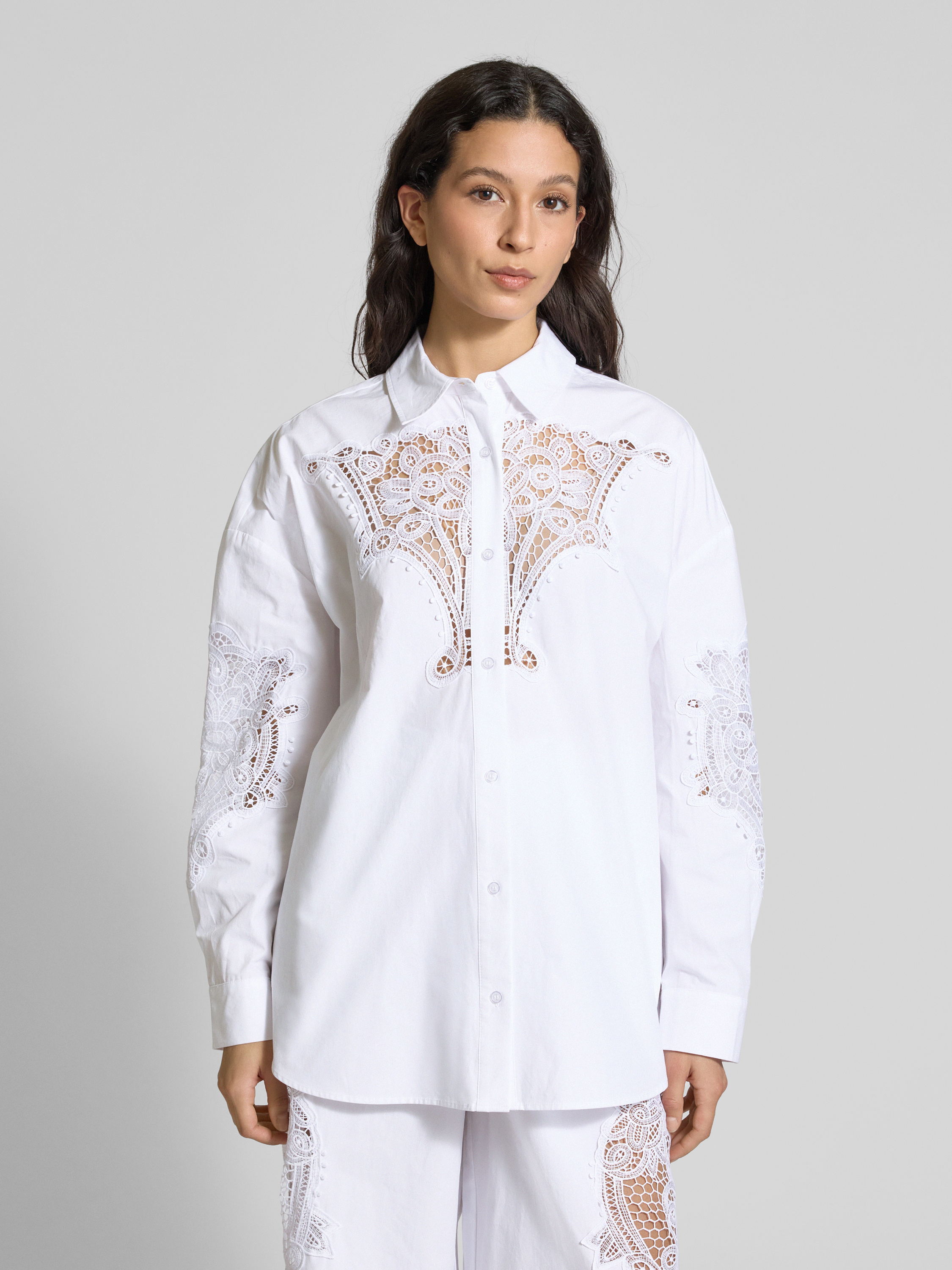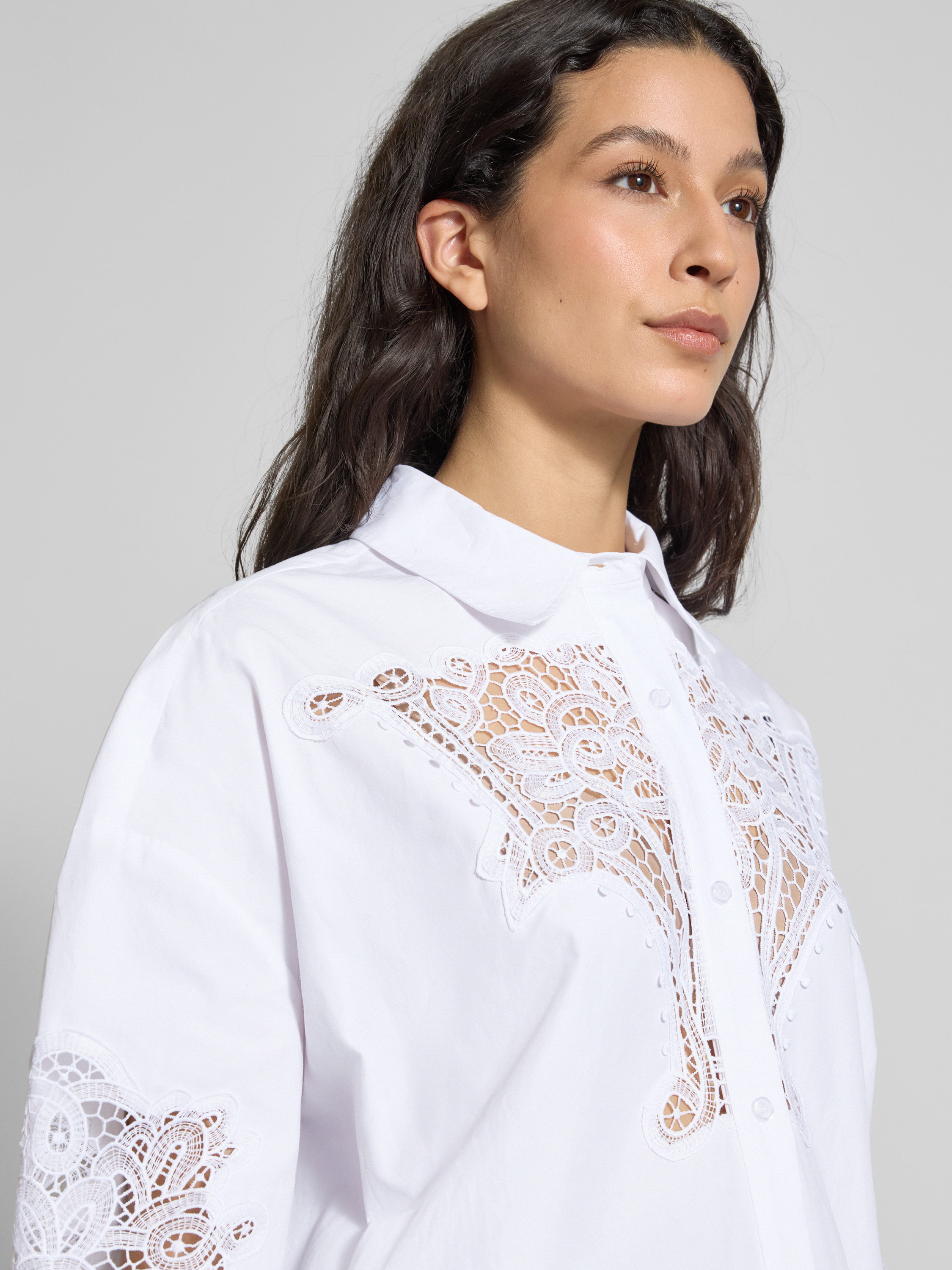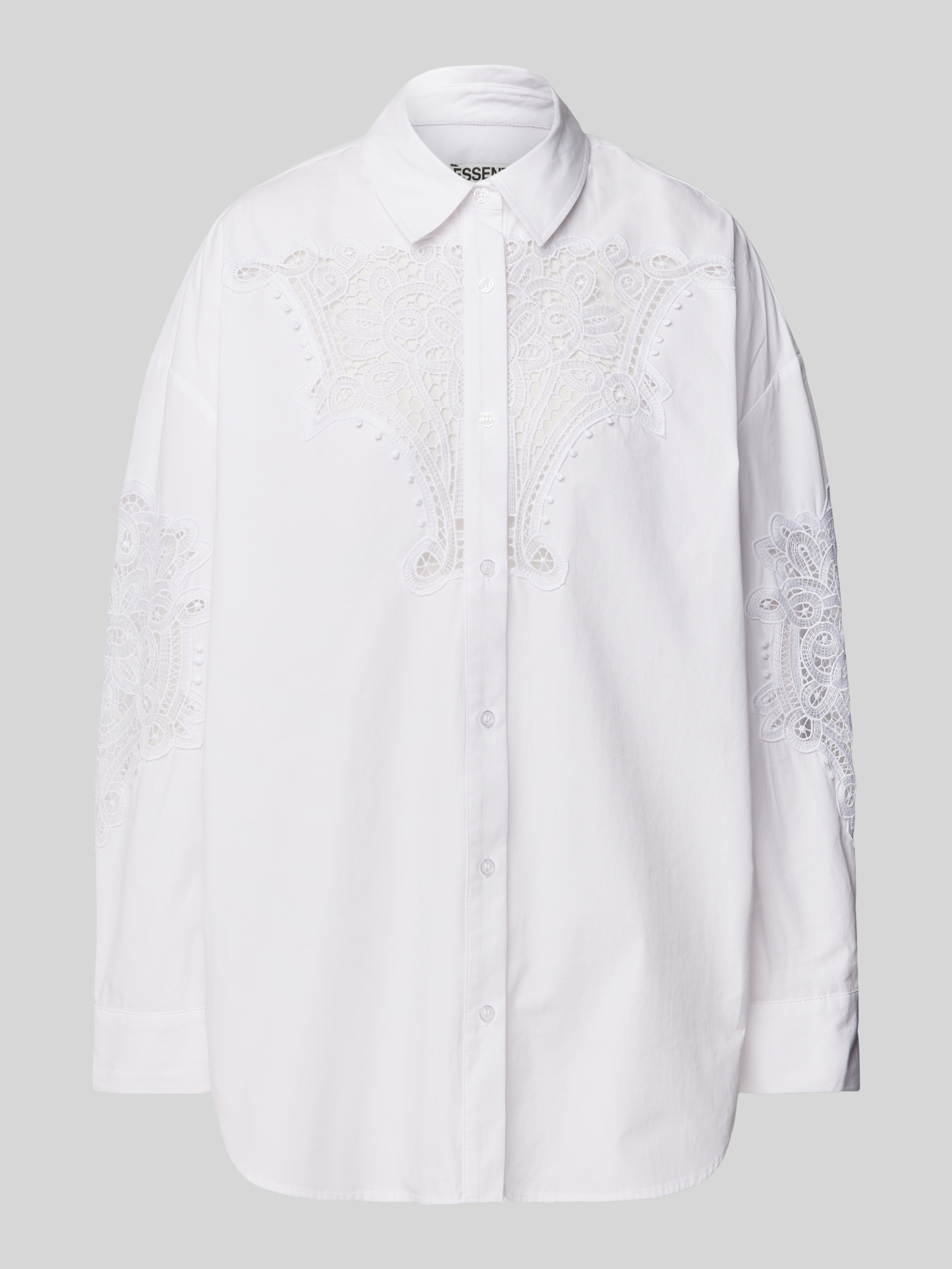 Essentiel AntwerpOversized Hemdbluse mit Spitzenbesatz Modell 'Hoofd' in weiss