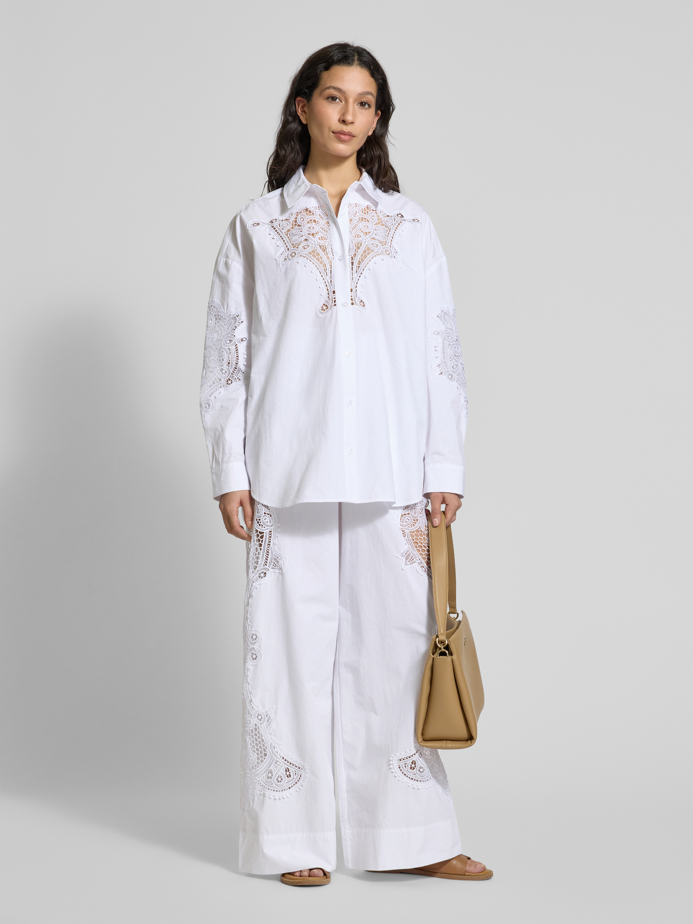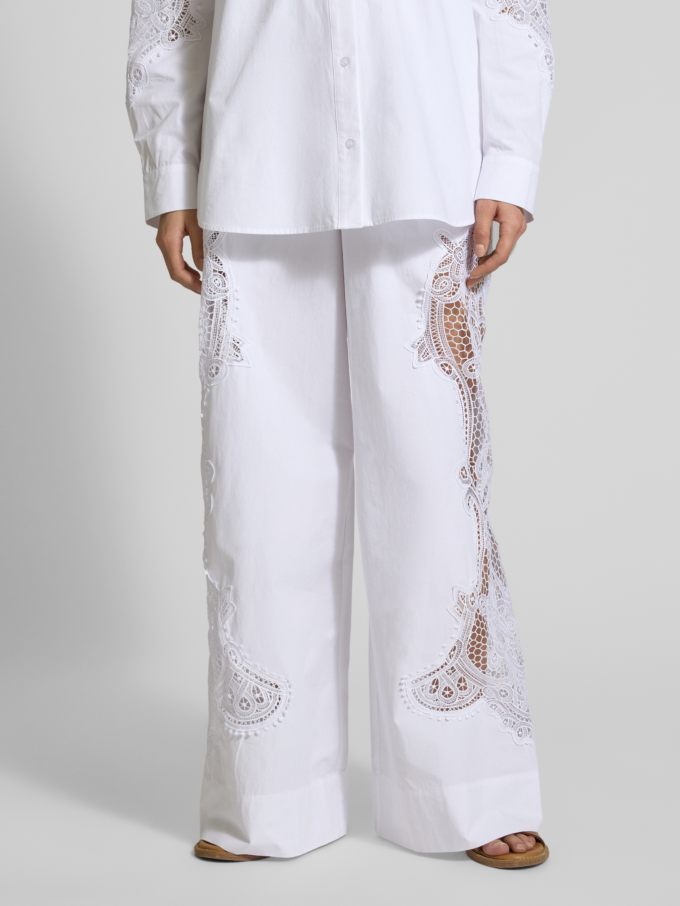 Essentiel AntwerpWide Leg Hose mit Spitzenbesatz Modell 'Hace' in weiss